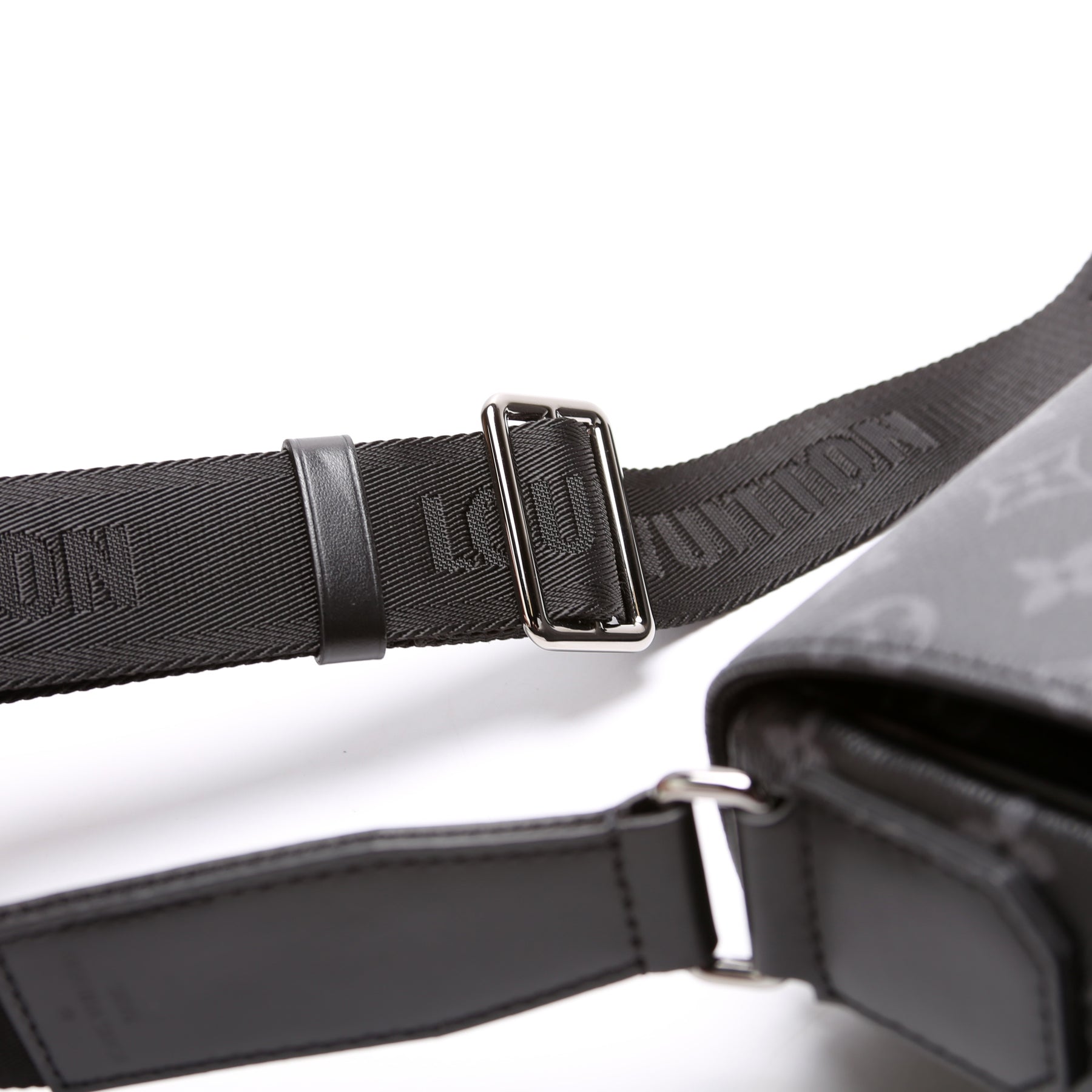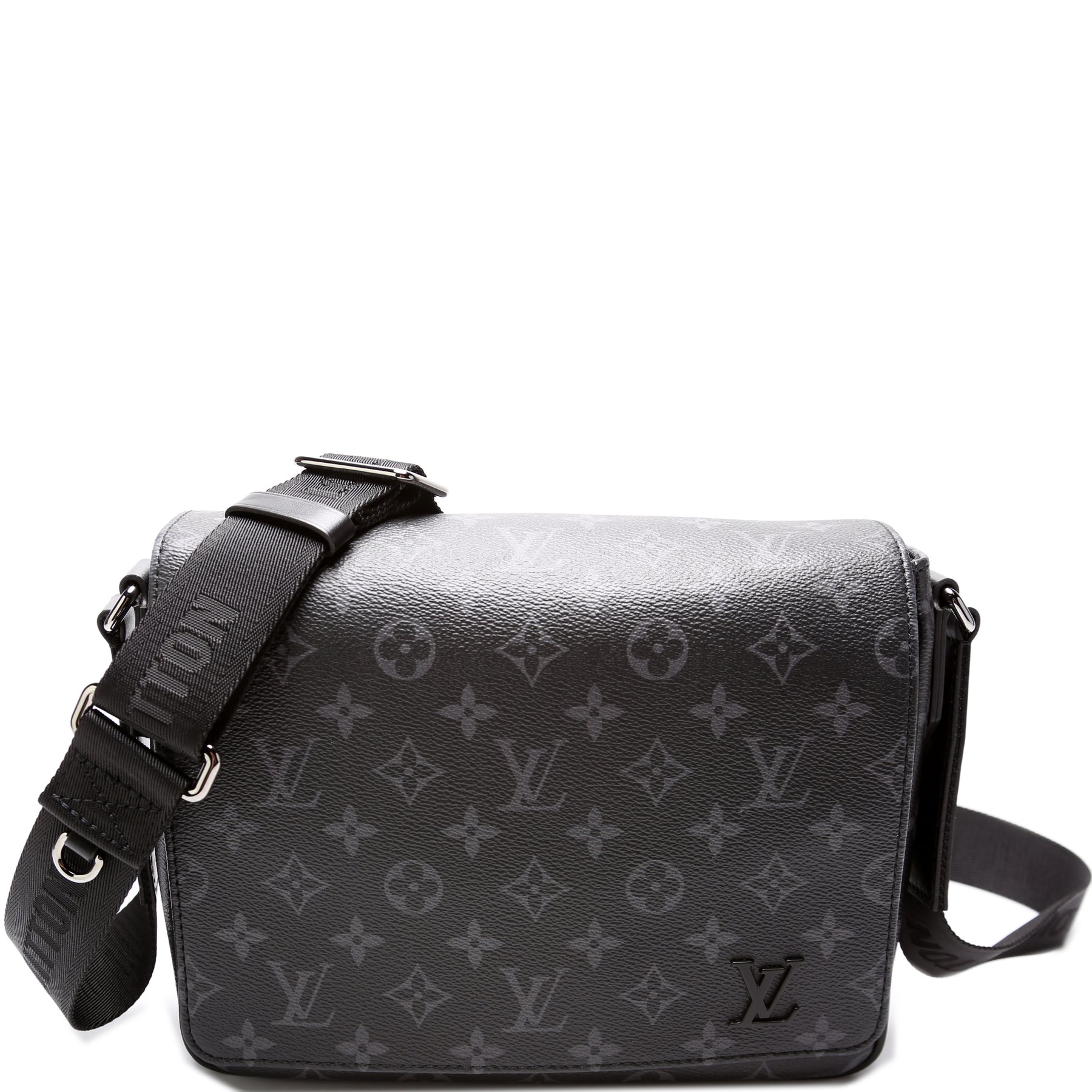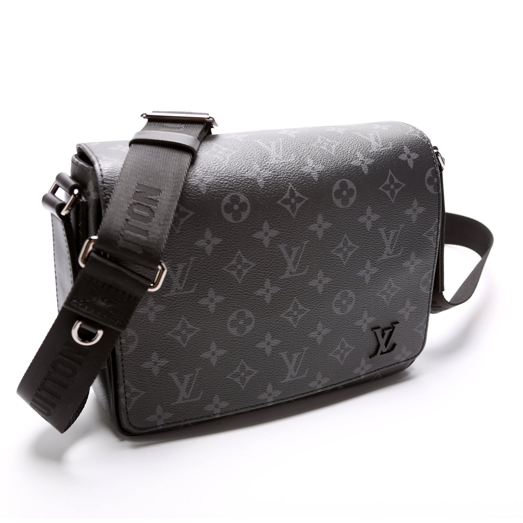 This pre-owned Louis Vuitton District PM NV3 is guaranteed 100% authentic. The exterior is in the classic Louis Vuitton Monogram Eclipse coated canvas.