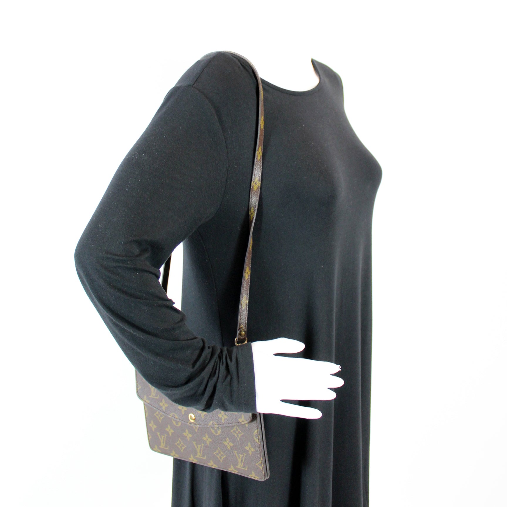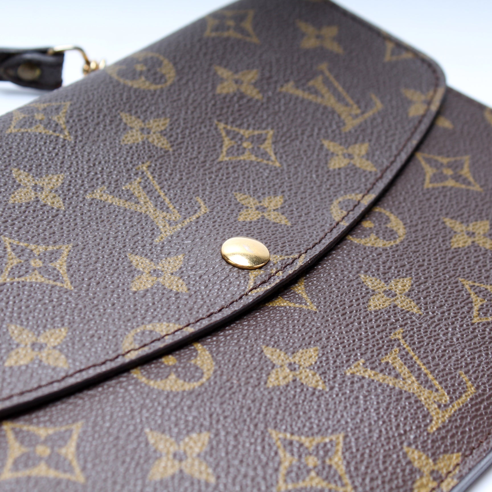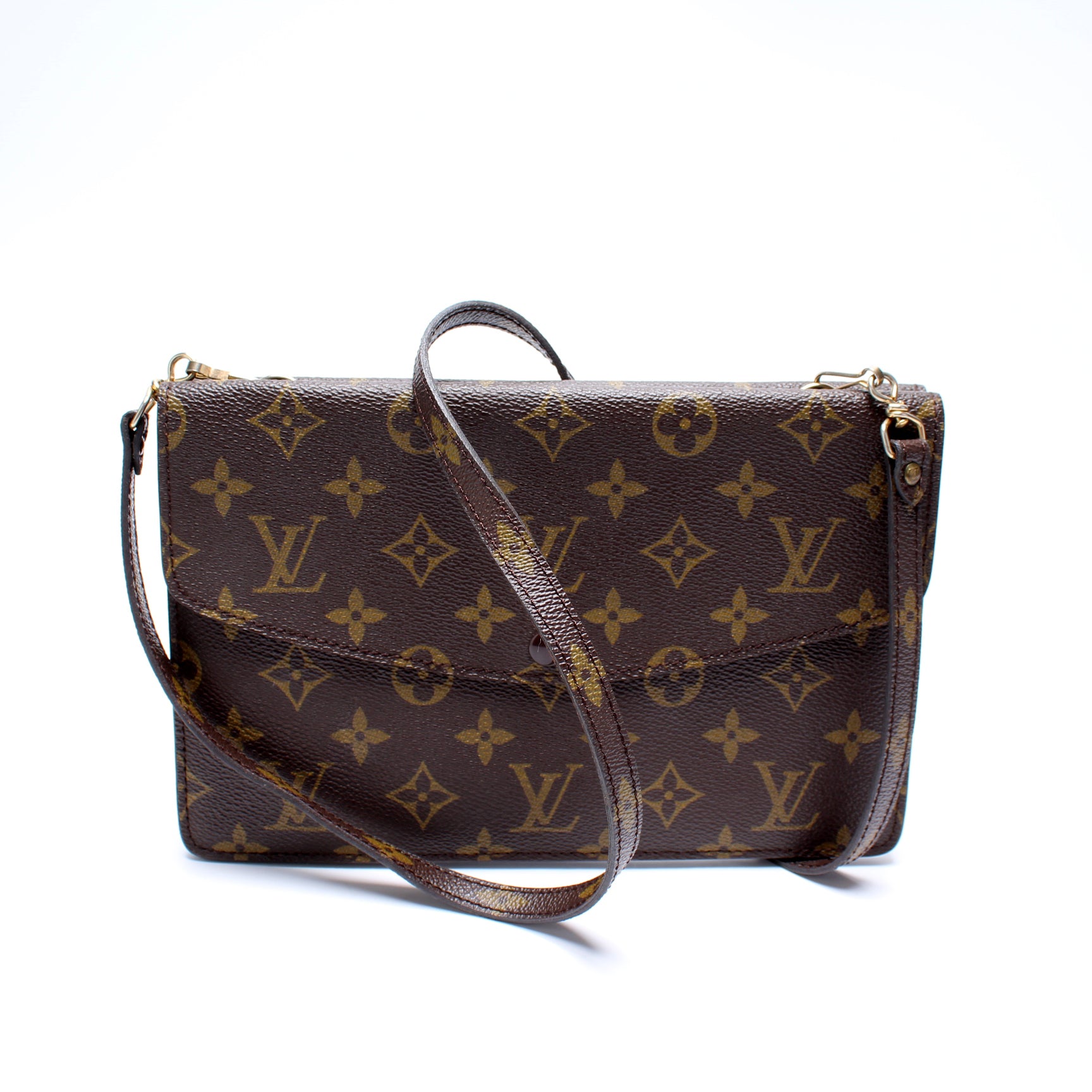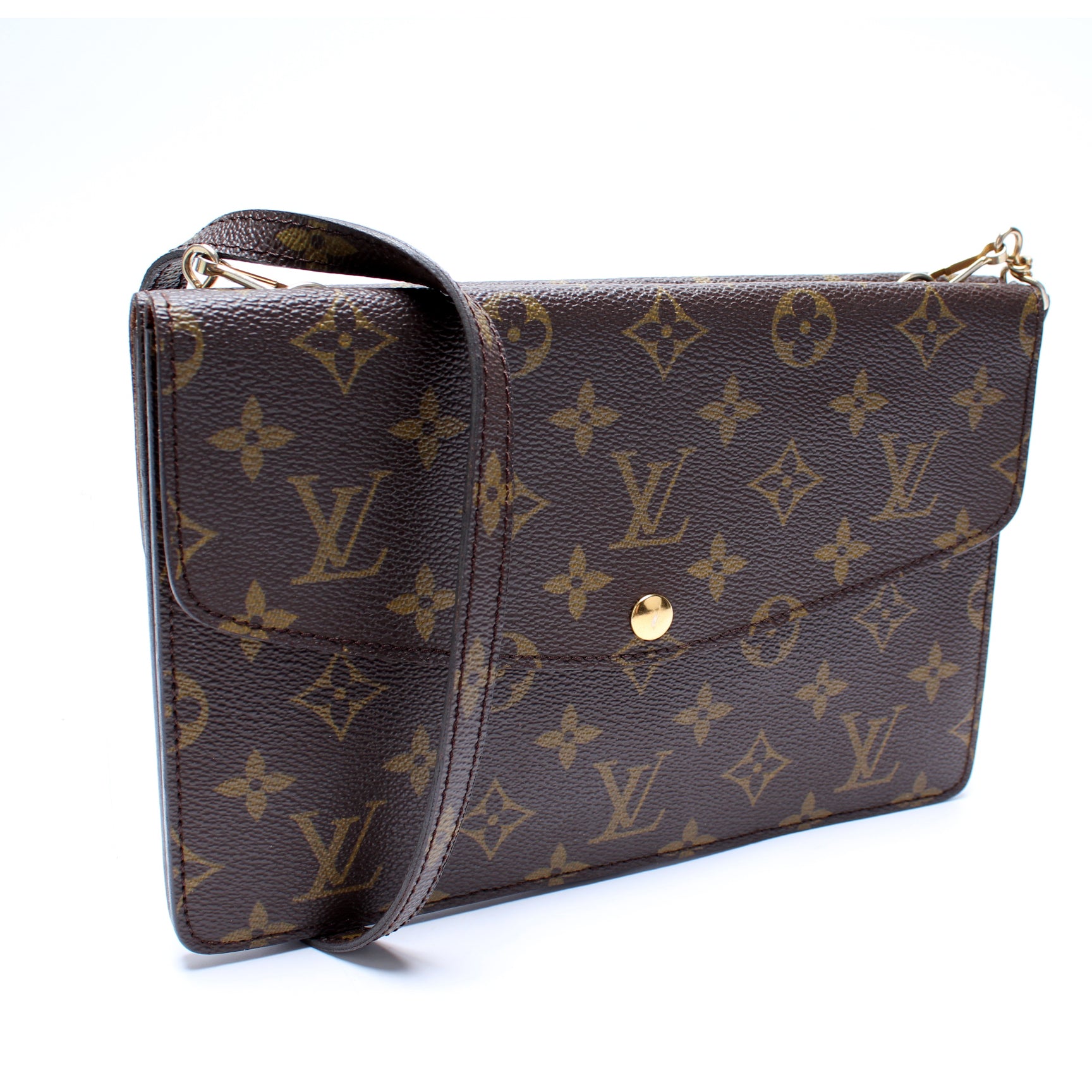 This pre-owned Louis Vuitton Double Flap Rabat Vintage is guaranteed 100% authentic. The exterior is in the classic Louis Vuitton Monogram coated canvas.