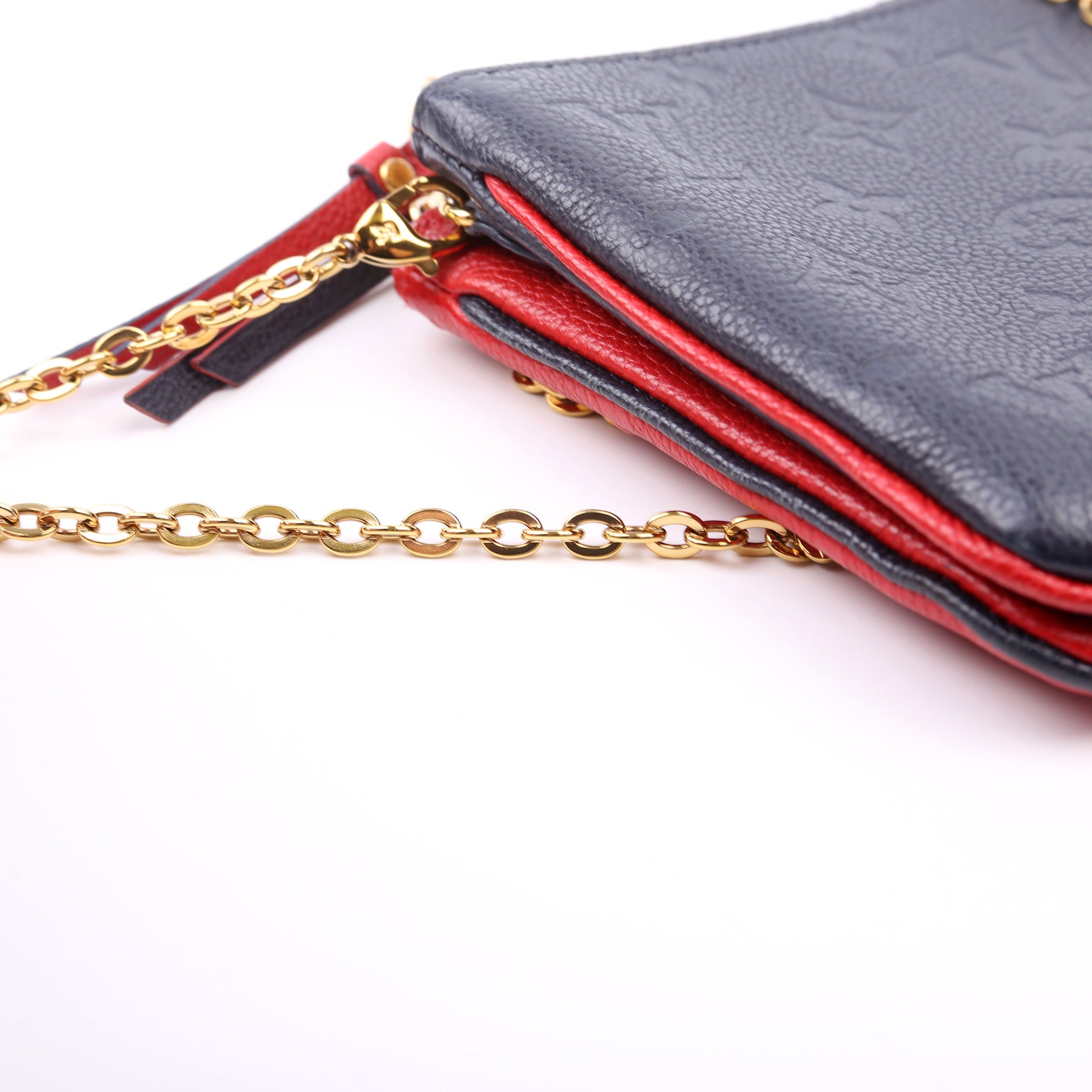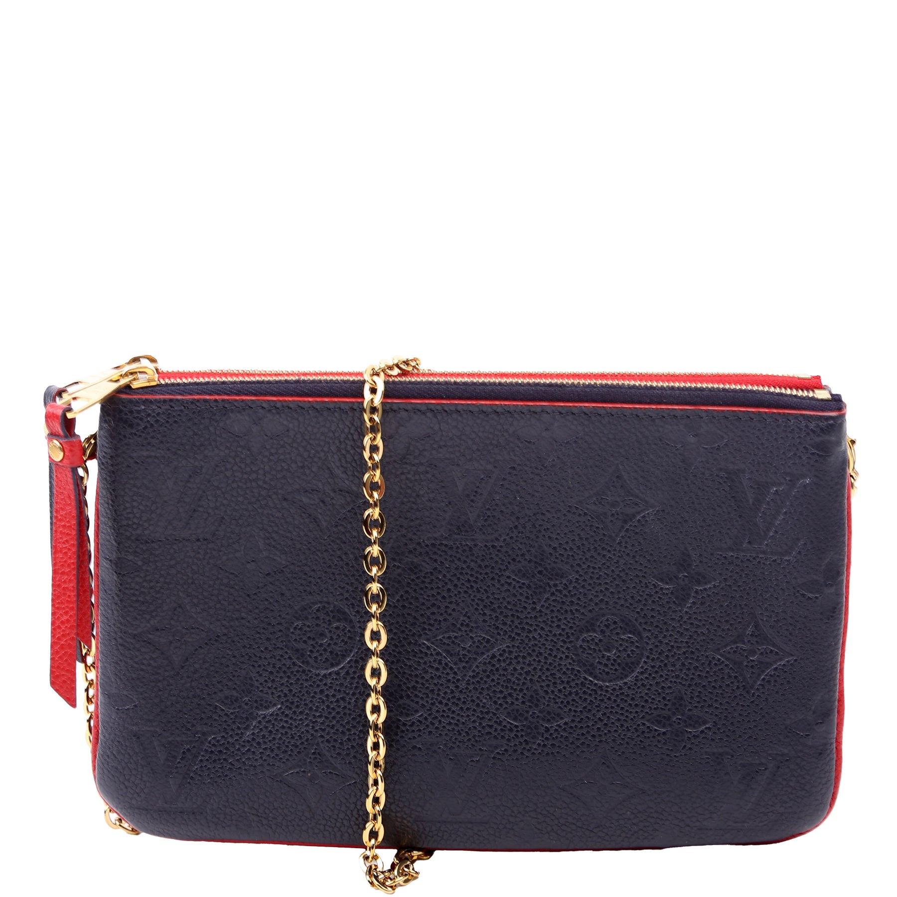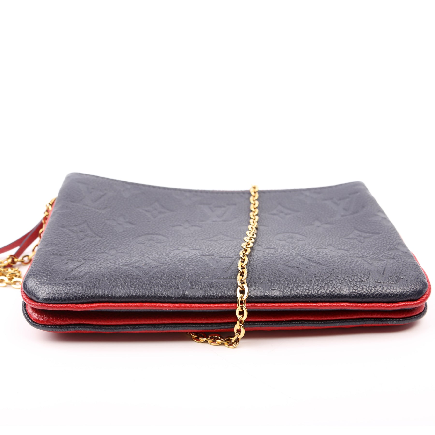 This pre-owned Louis Vuitton Double Zip Pochette is guaranteed 100% authentic. The exterior is in the classic Louis Vuitton Empreinte leather.