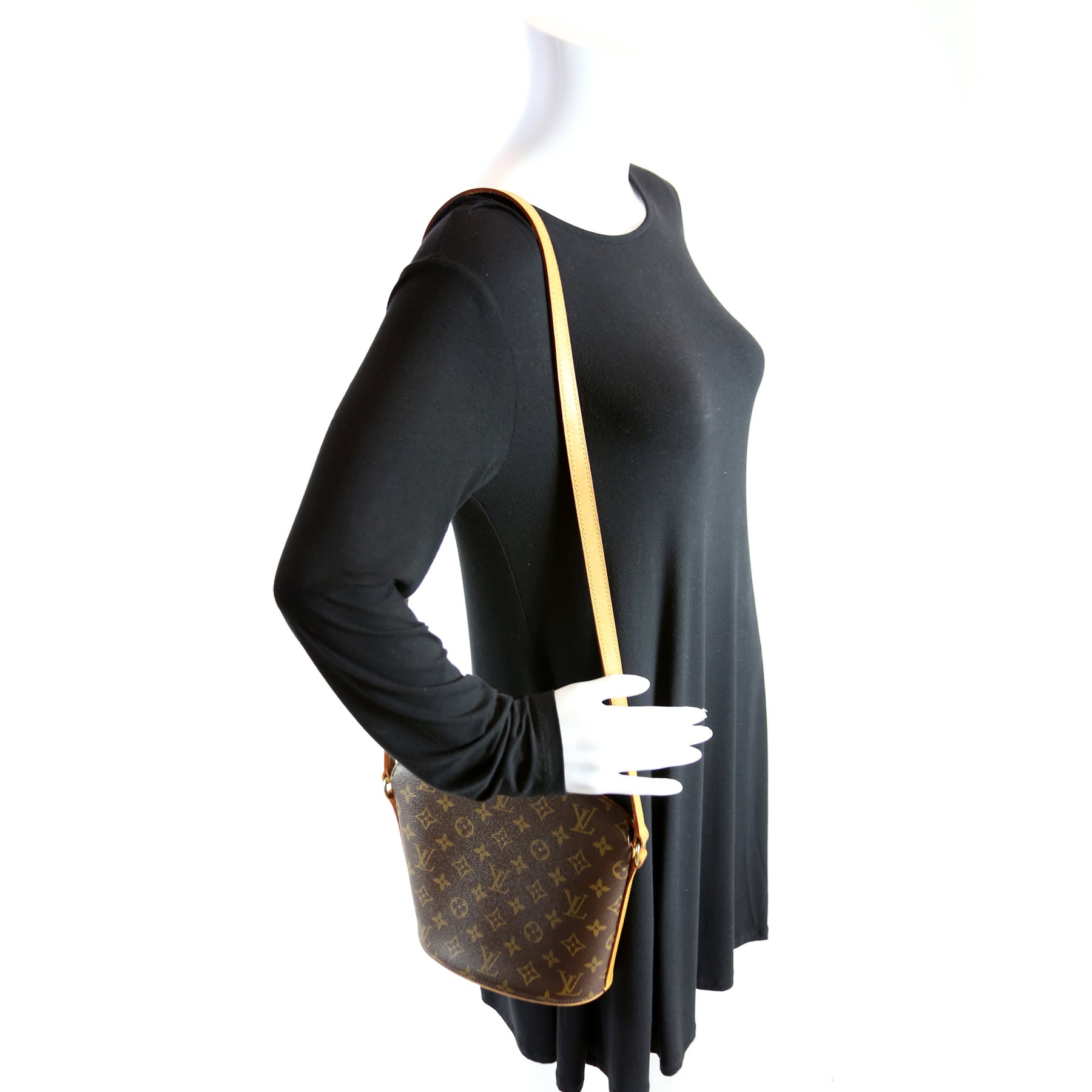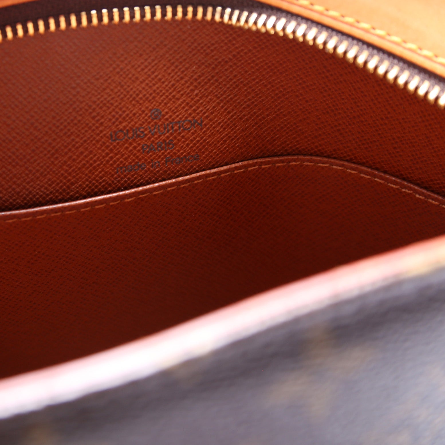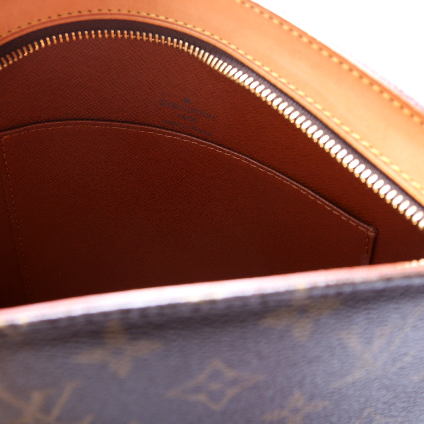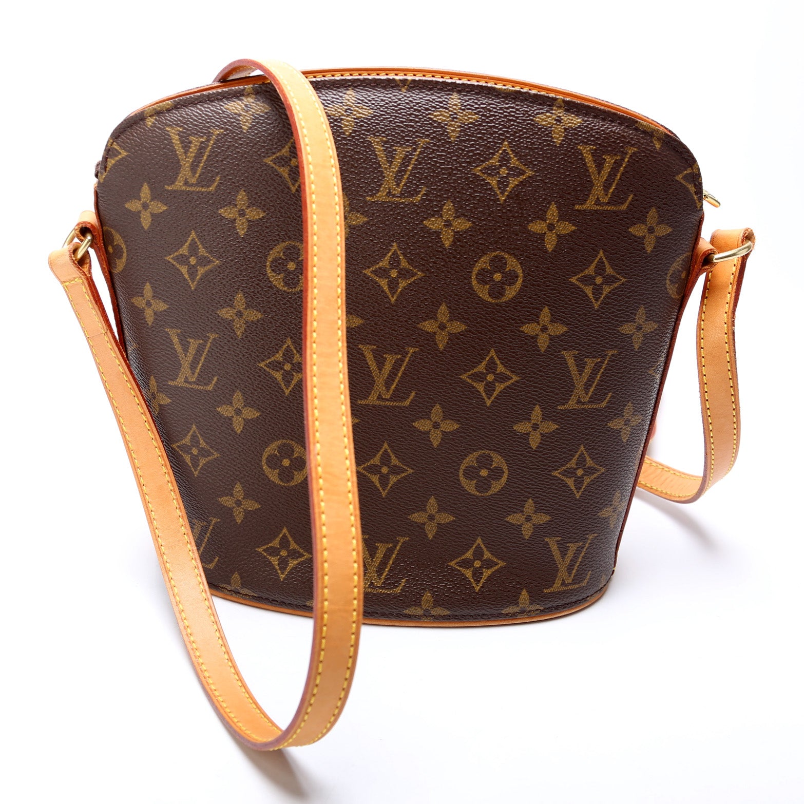 This pre-owned Louis Vuitton Drouot is guaranteed 100% authentic. The exterior is in the classic Louis Vuitton Monogram coated canvas.
