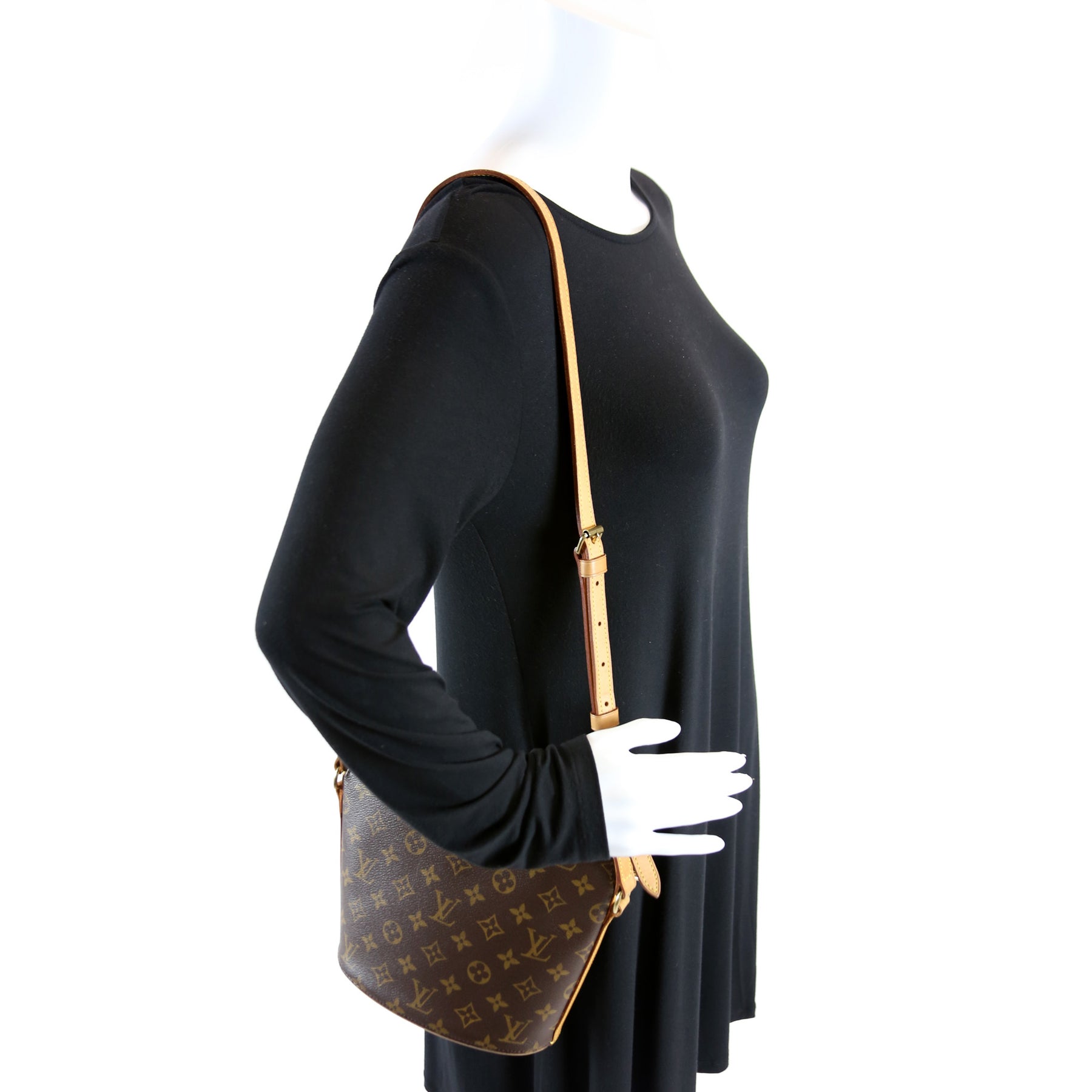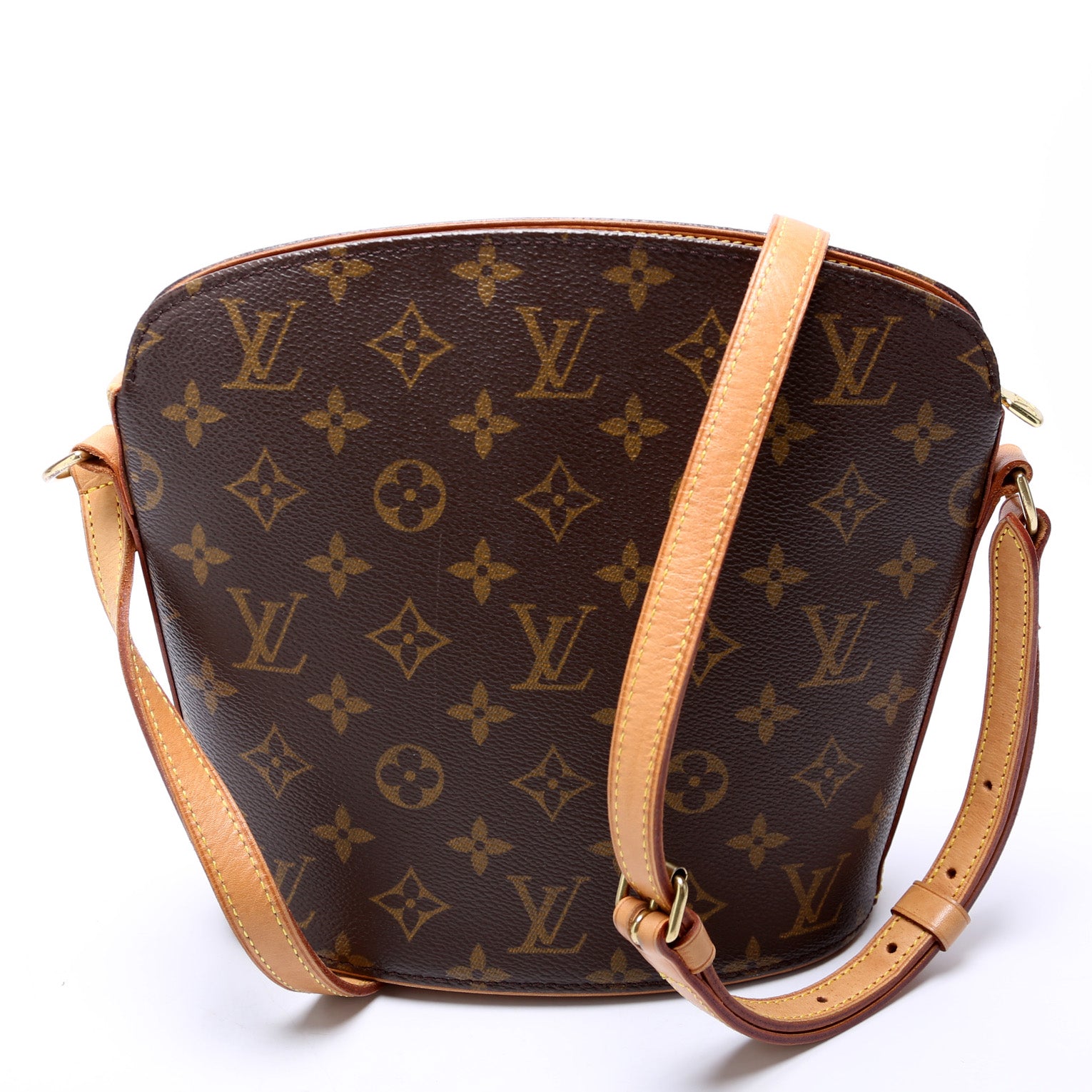 This pre-owned Louis Vuitton Drouot is guaranteed 100% authentic. The exterior is in the classic Louis Vuitton Monogram coated canvas.