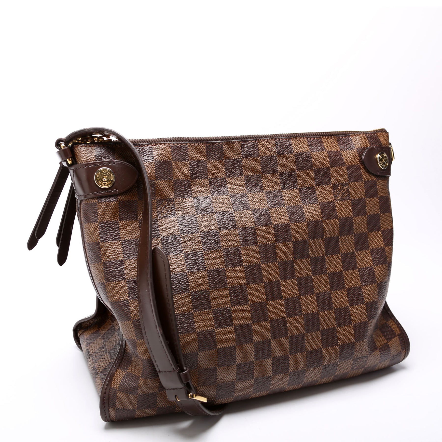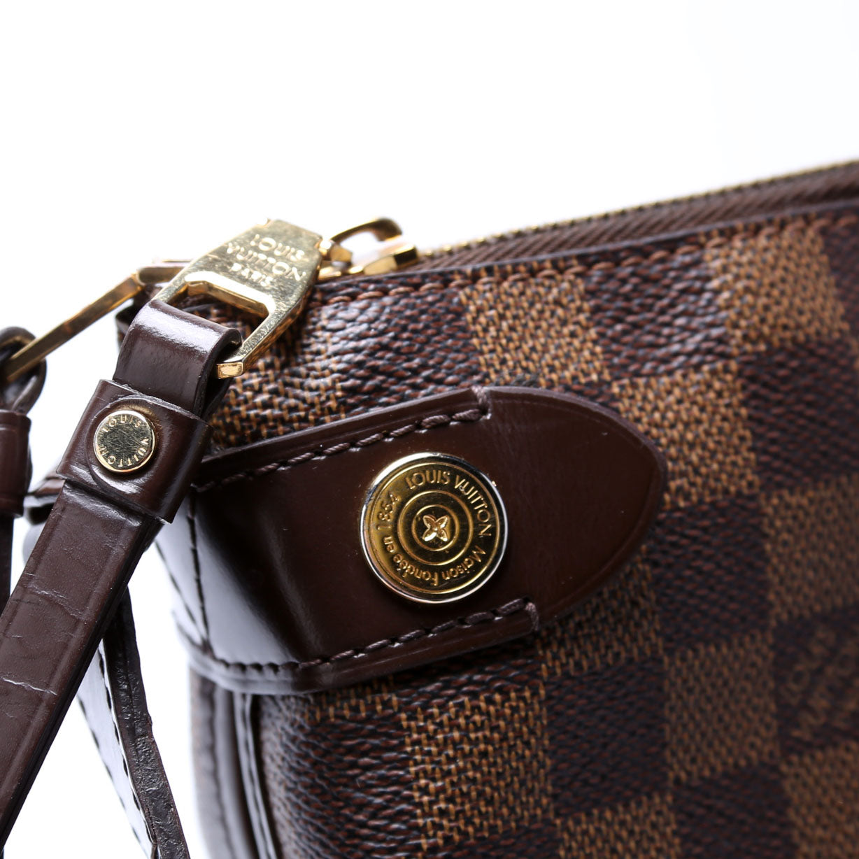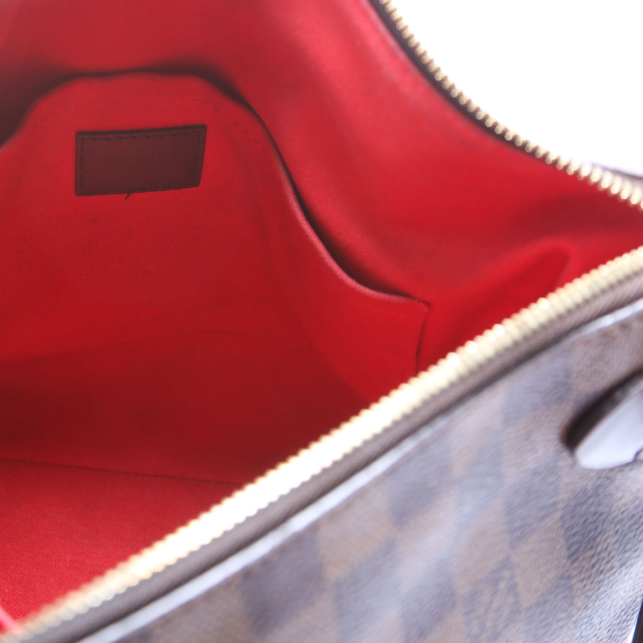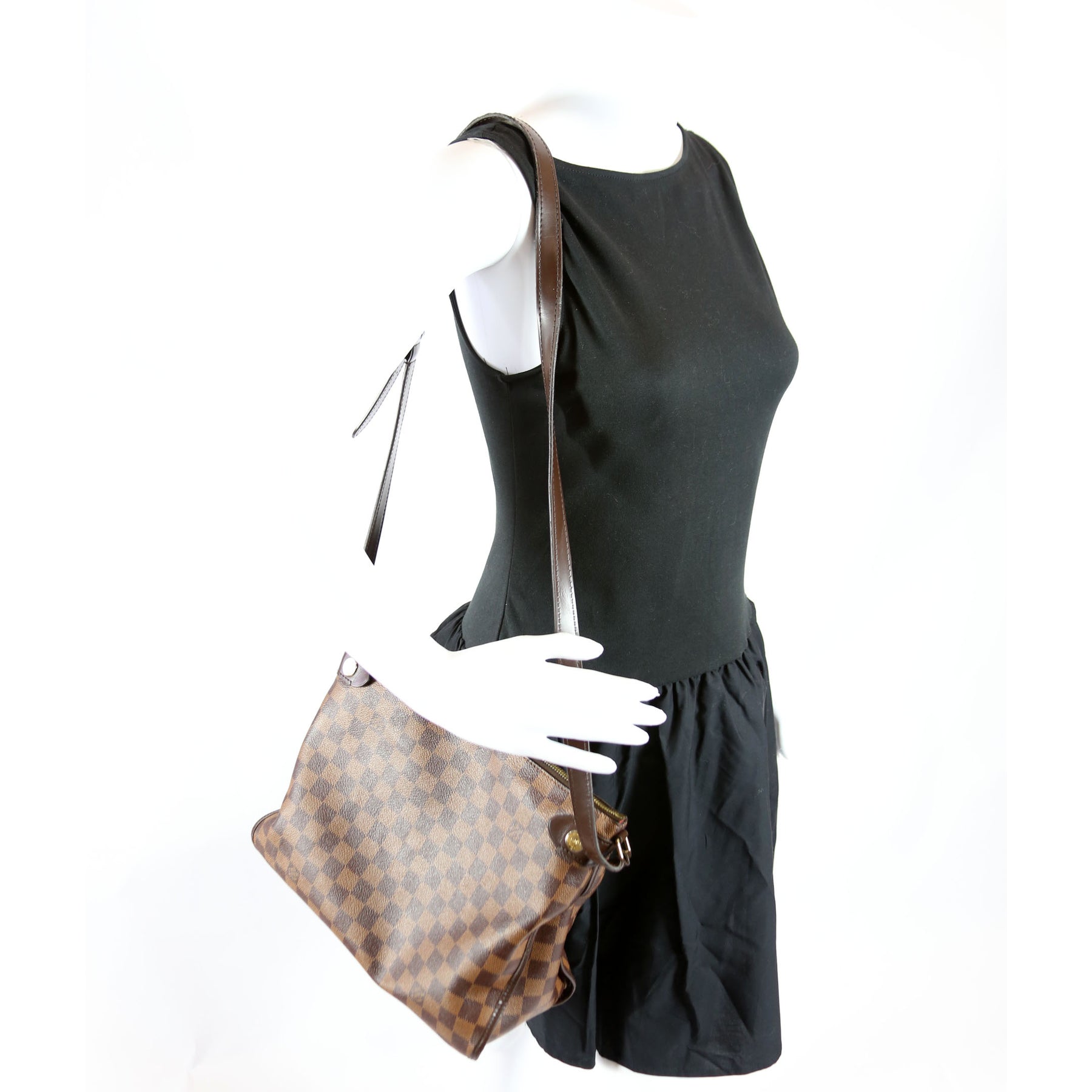 This pre-owned Louis Vuitton Duomo Messenger is guaranteed 100% authentic. The exterior is in the classic Louis Vuitton Damier Ebene coated canvas.