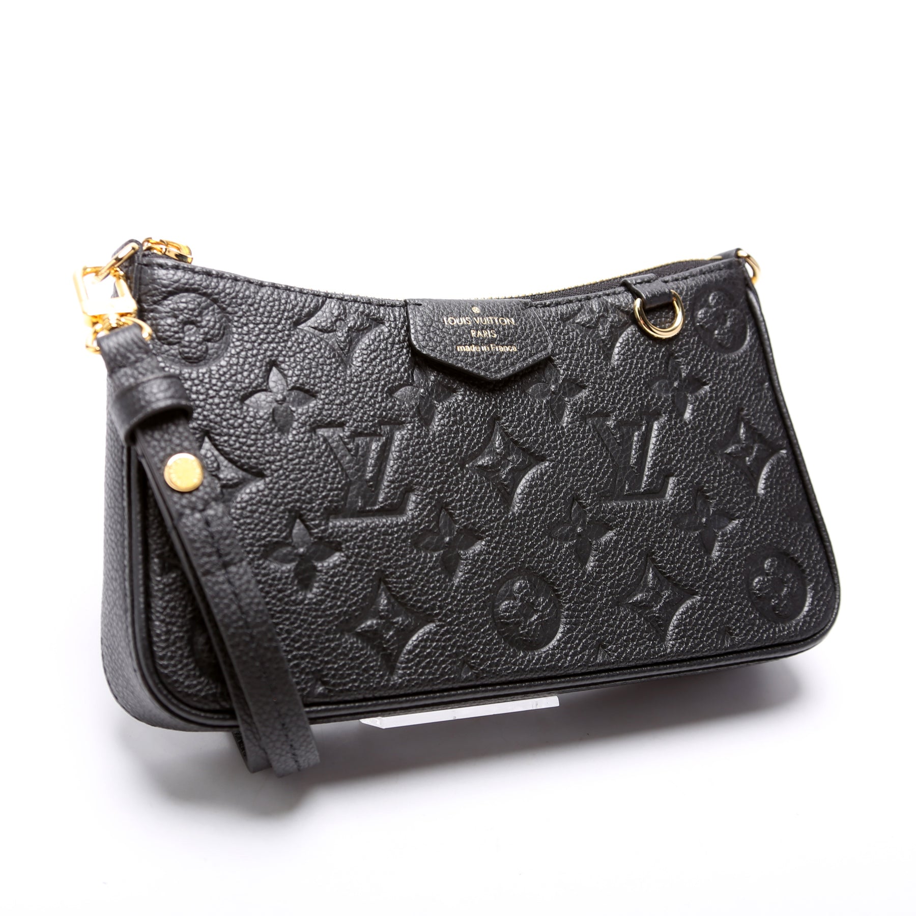 This pre-owned Louis Vuitton Easy Pouch on Strap is guaranteed 100% authentic. The exterior is in the classic Louis Vuitton Empreinte leather.