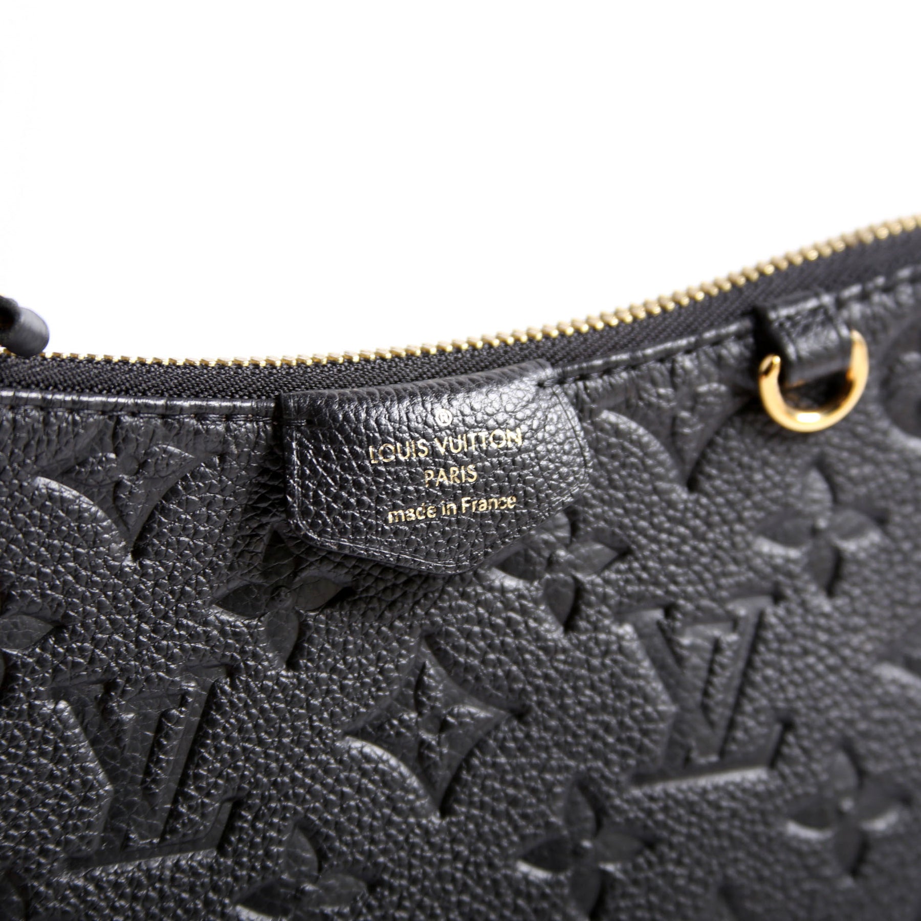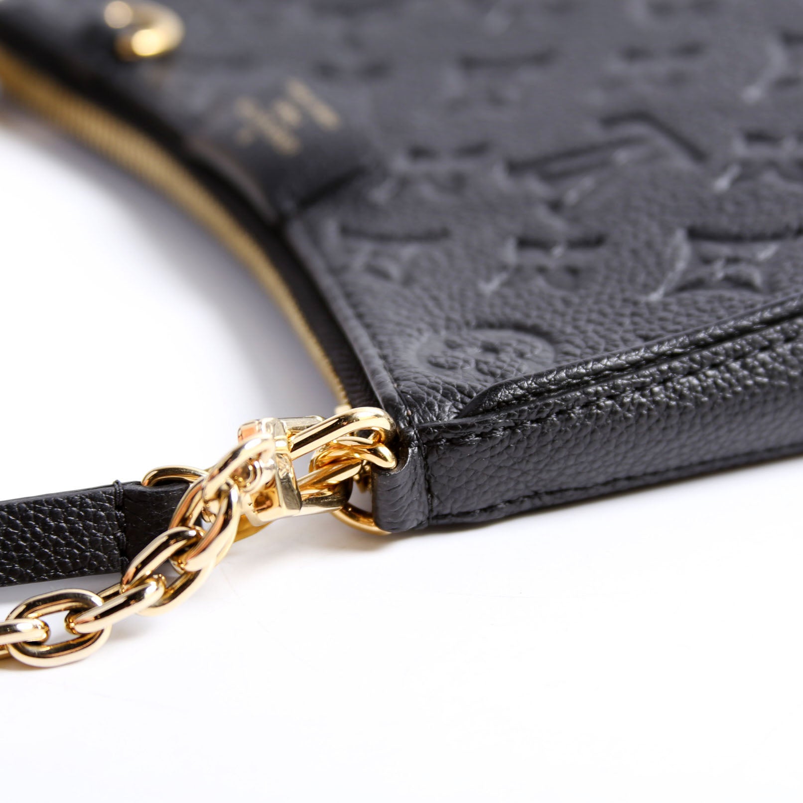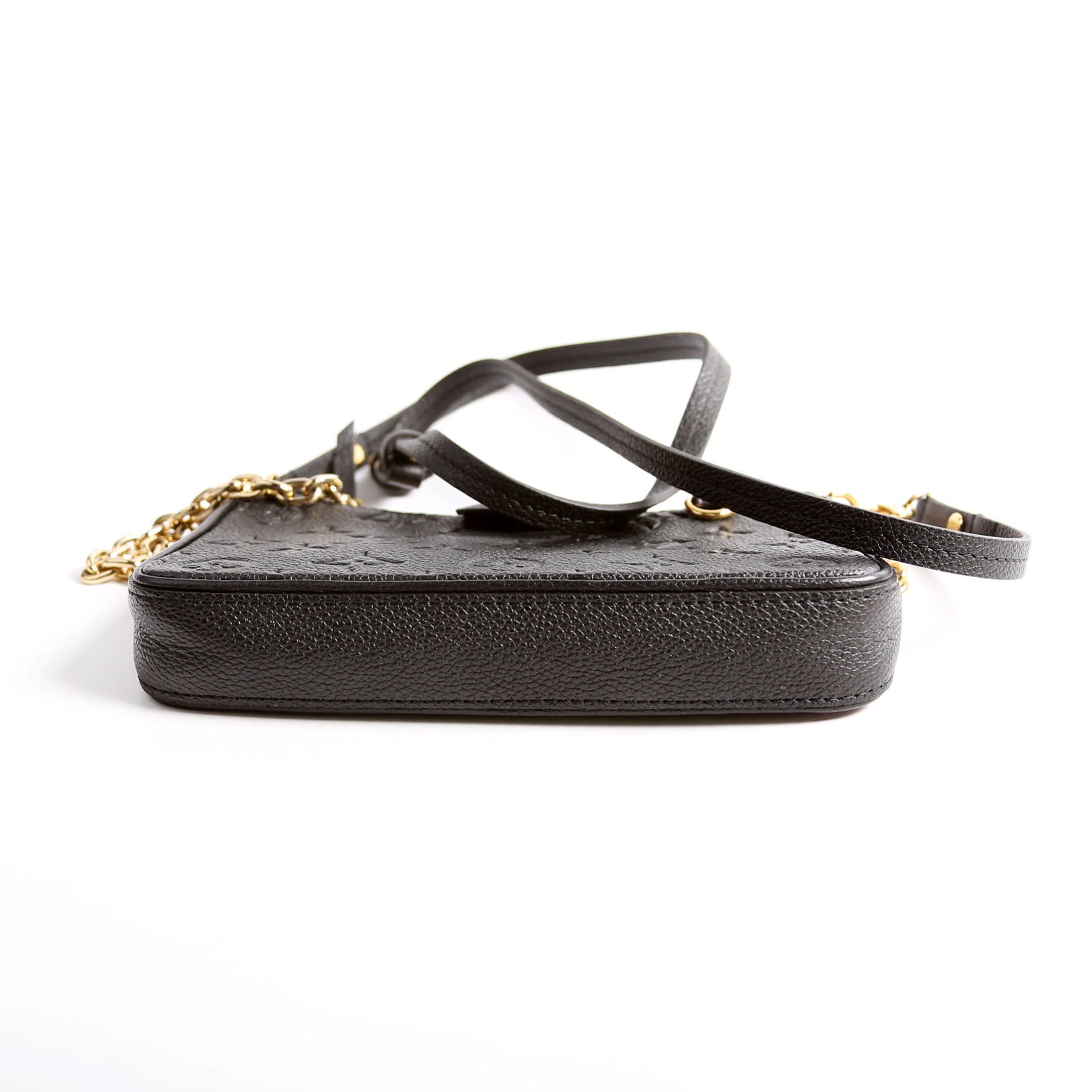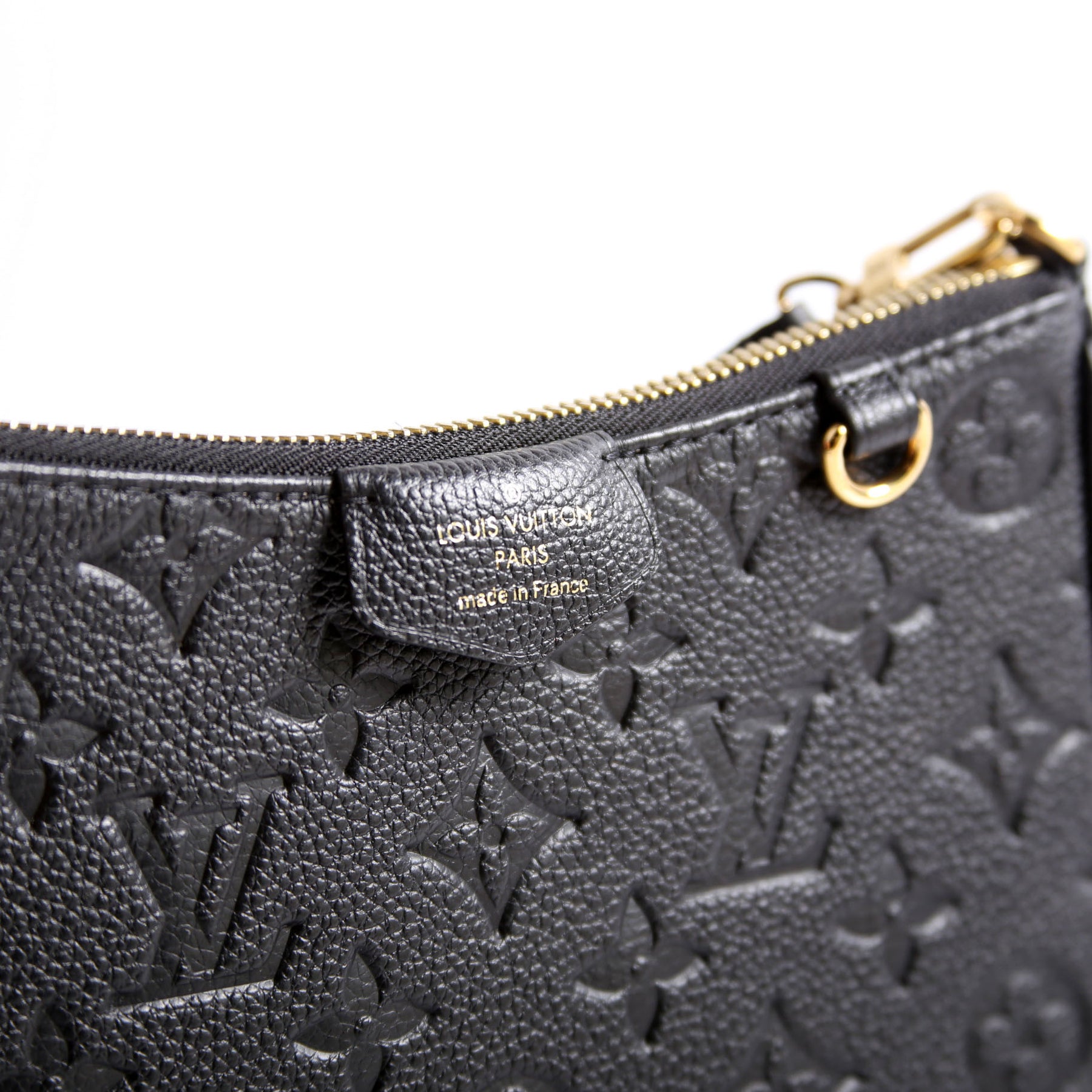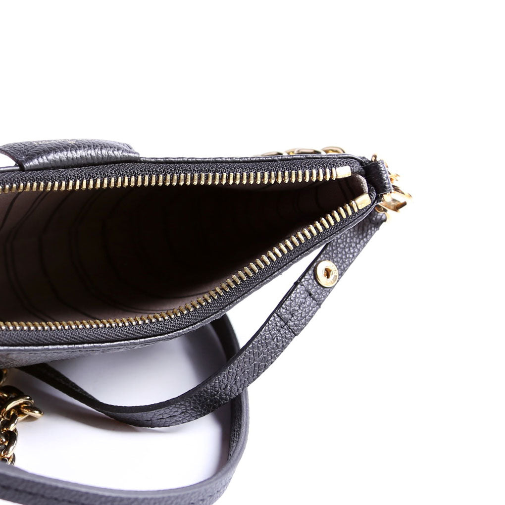 This pre-owned Louis Vuitton Easy Pouch On Strap is guaranteed 100% authentic. The exterior is in the classic Louis Vuitton Empreinte Leather.
