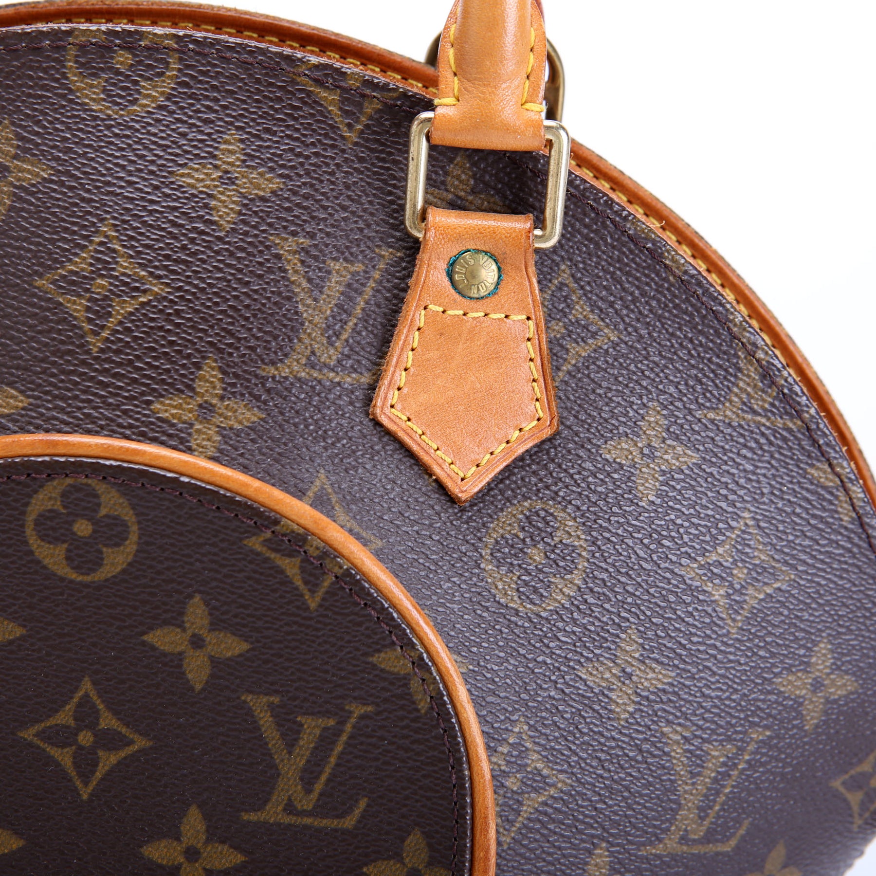 This pre-owned Louis Vuitton Ellipse PM is guaranteed 100% authentic. The exterior is in the classic Louis Vuitton Monogram coated canvas.