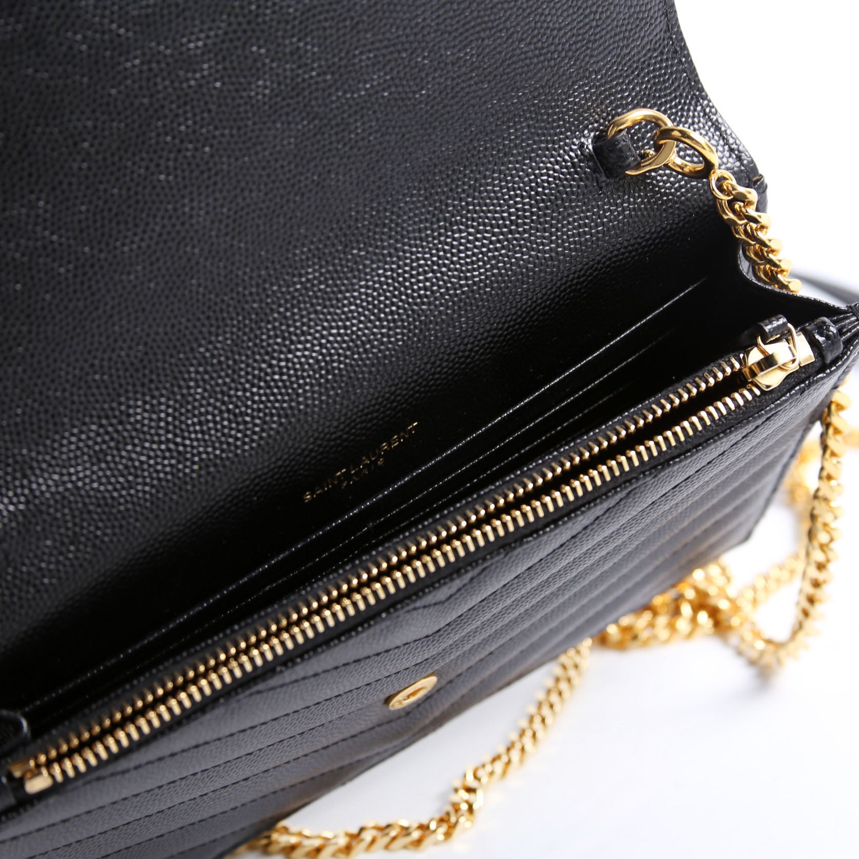 This pre-owned Saint Laurent Envelope Chain Wallet is guaranteed 100% authentic.
