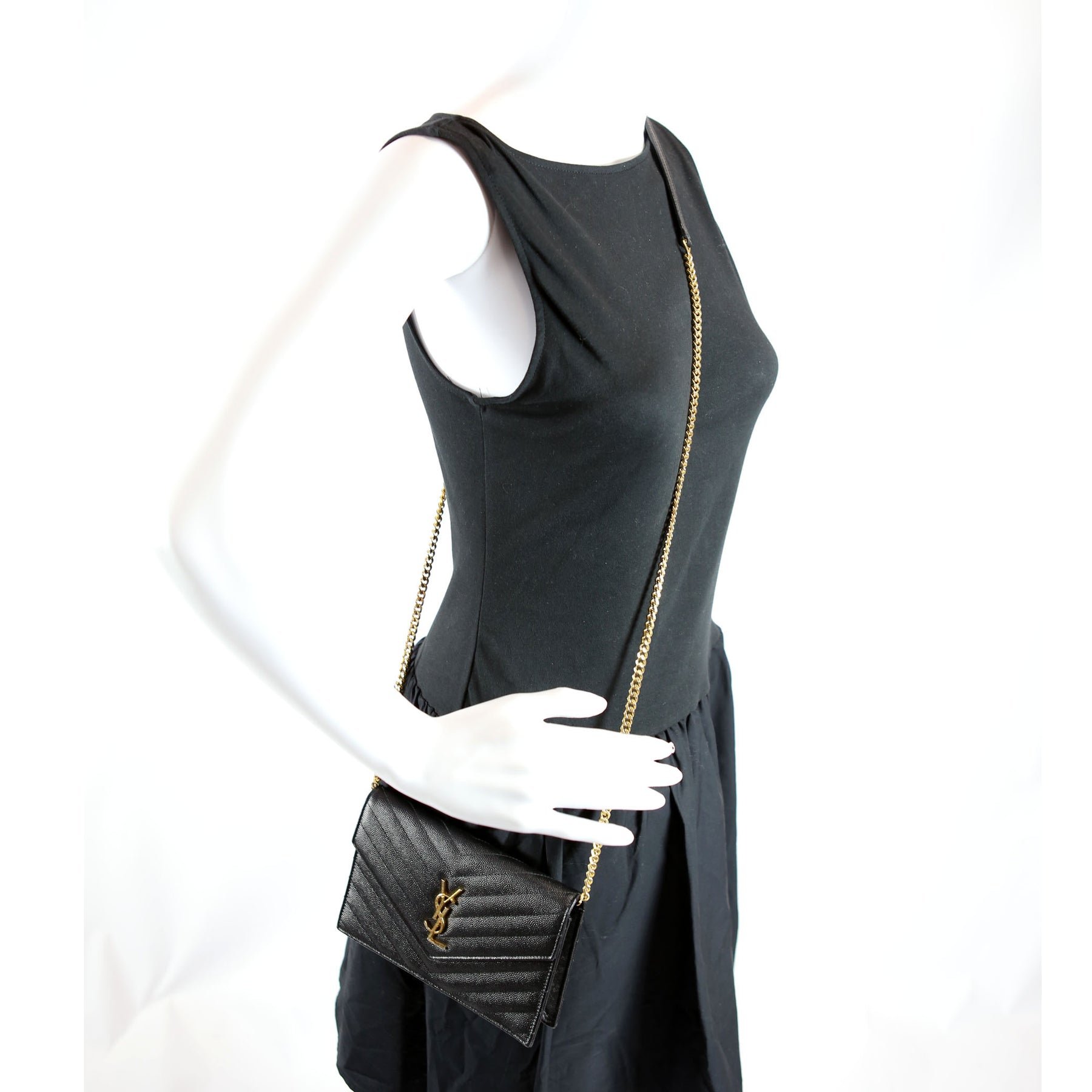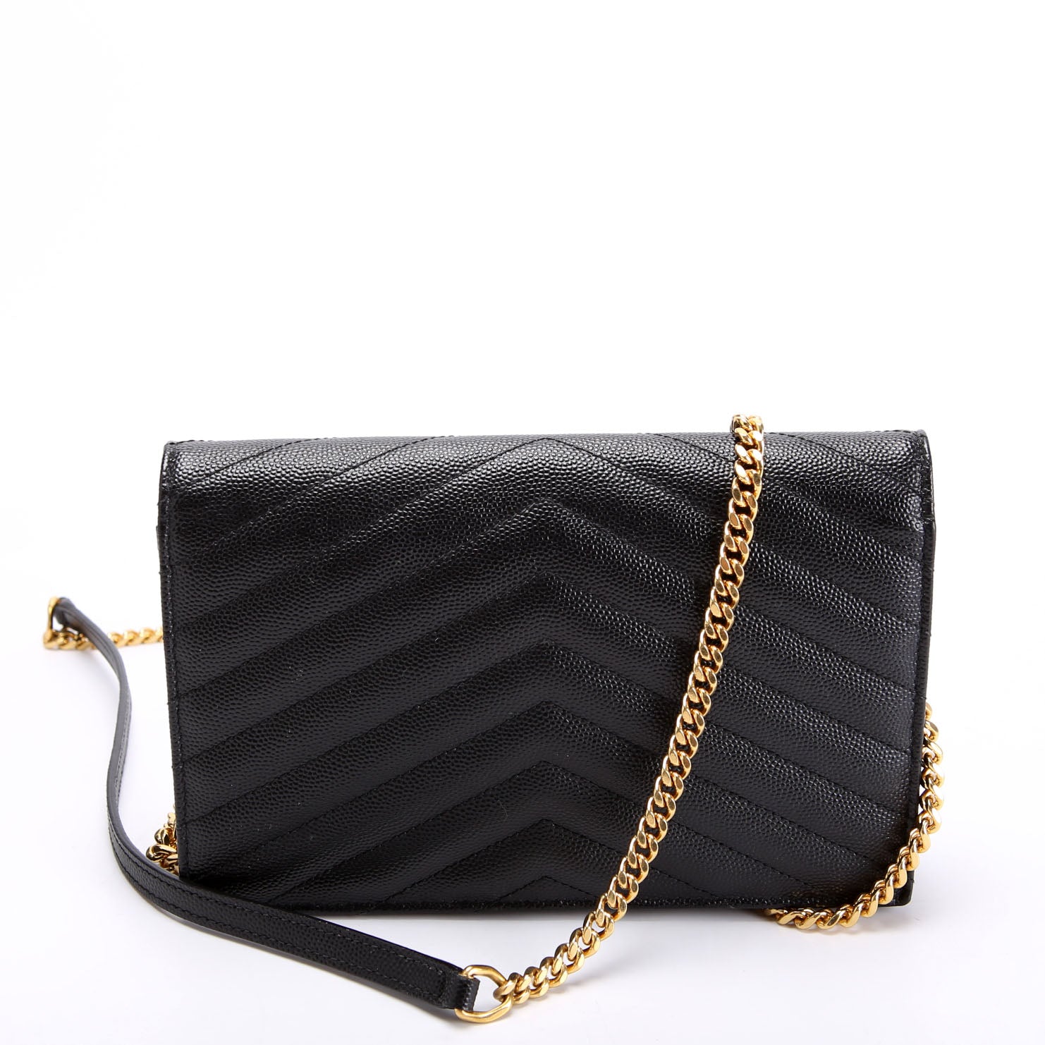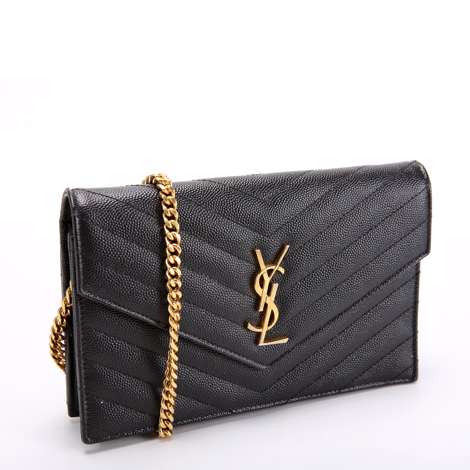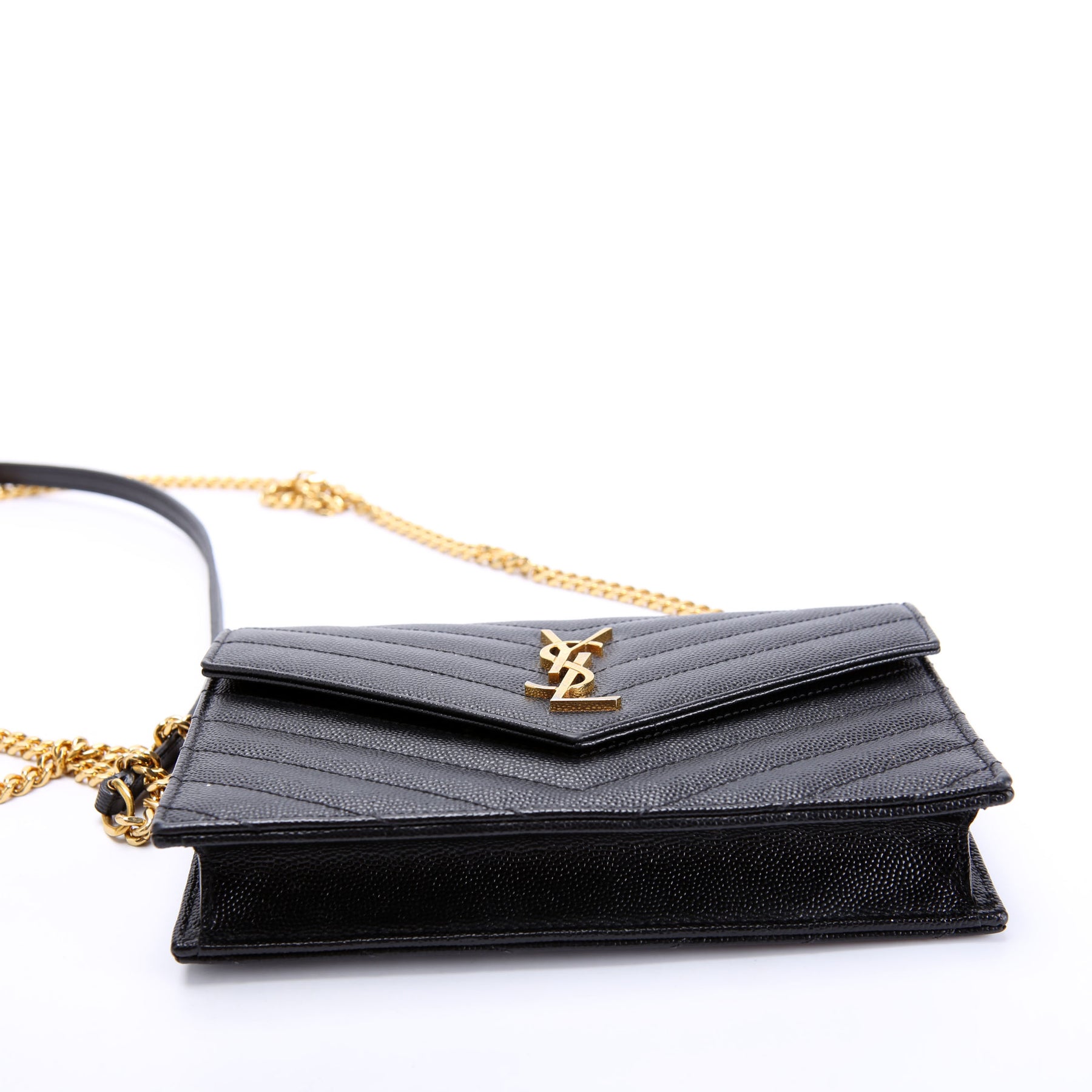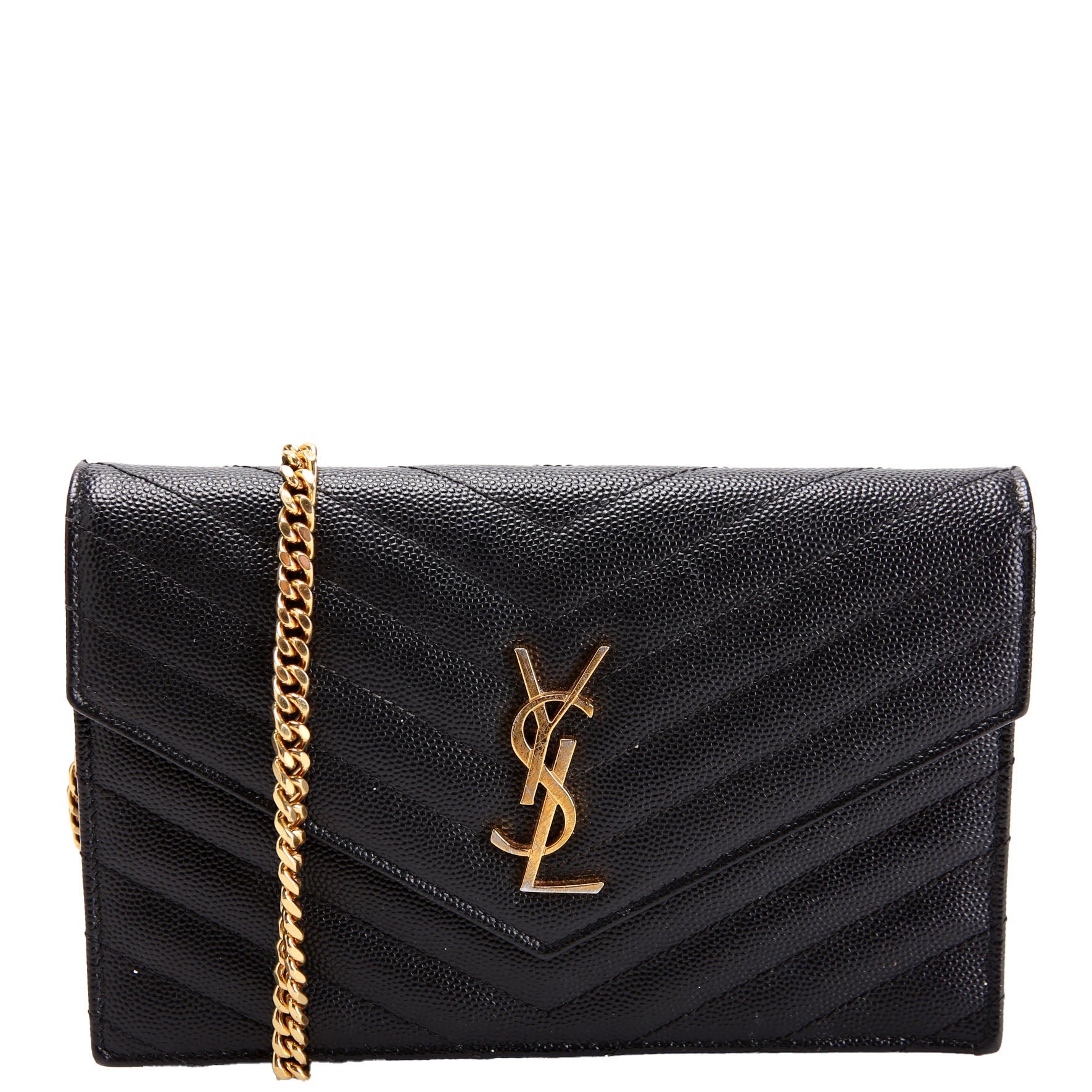 This pre-owned Saint Laurent Envelope Chain Wallet is guaranteed 100% authentic.