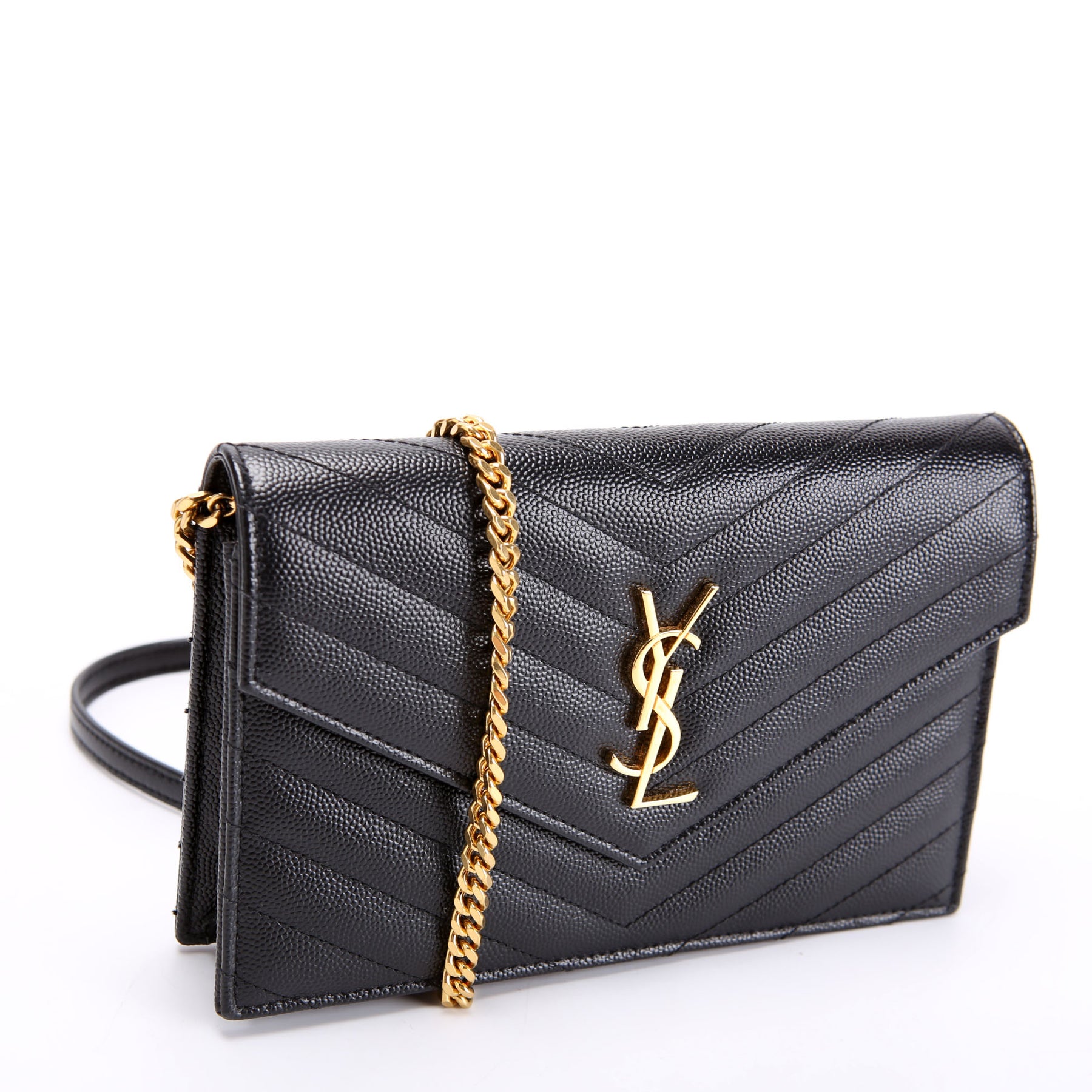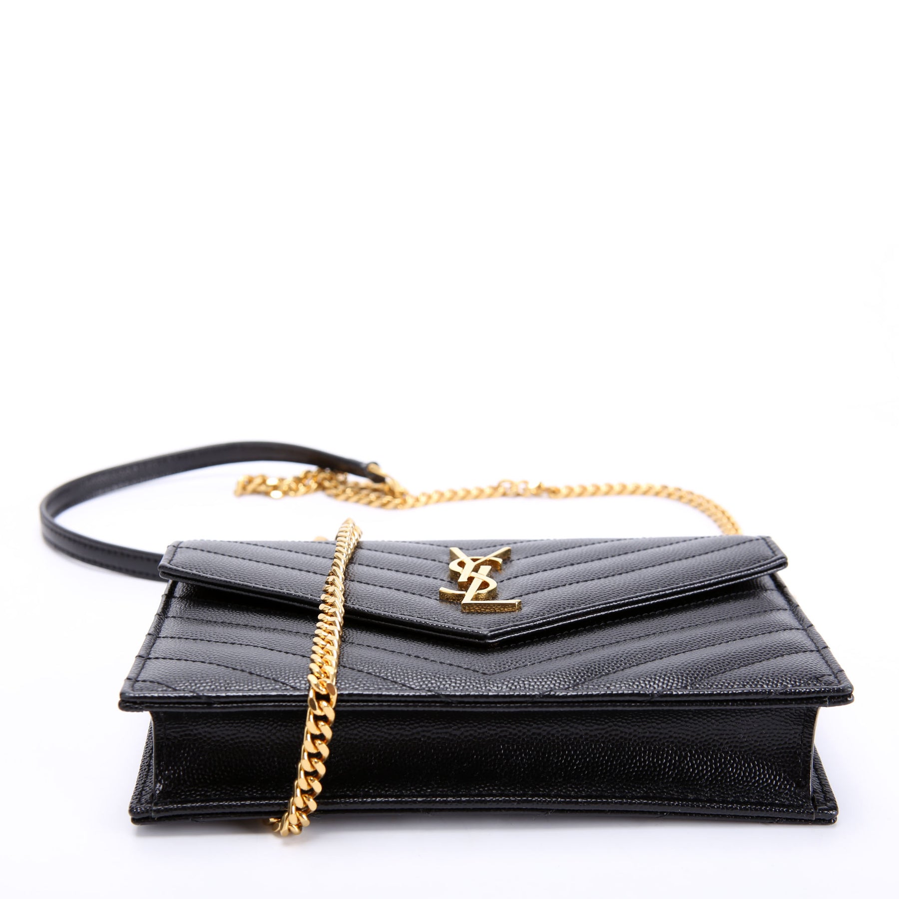 This pre-owned Saint Laurent Envelope Chain Wallet is guaranteed 100% authentic.