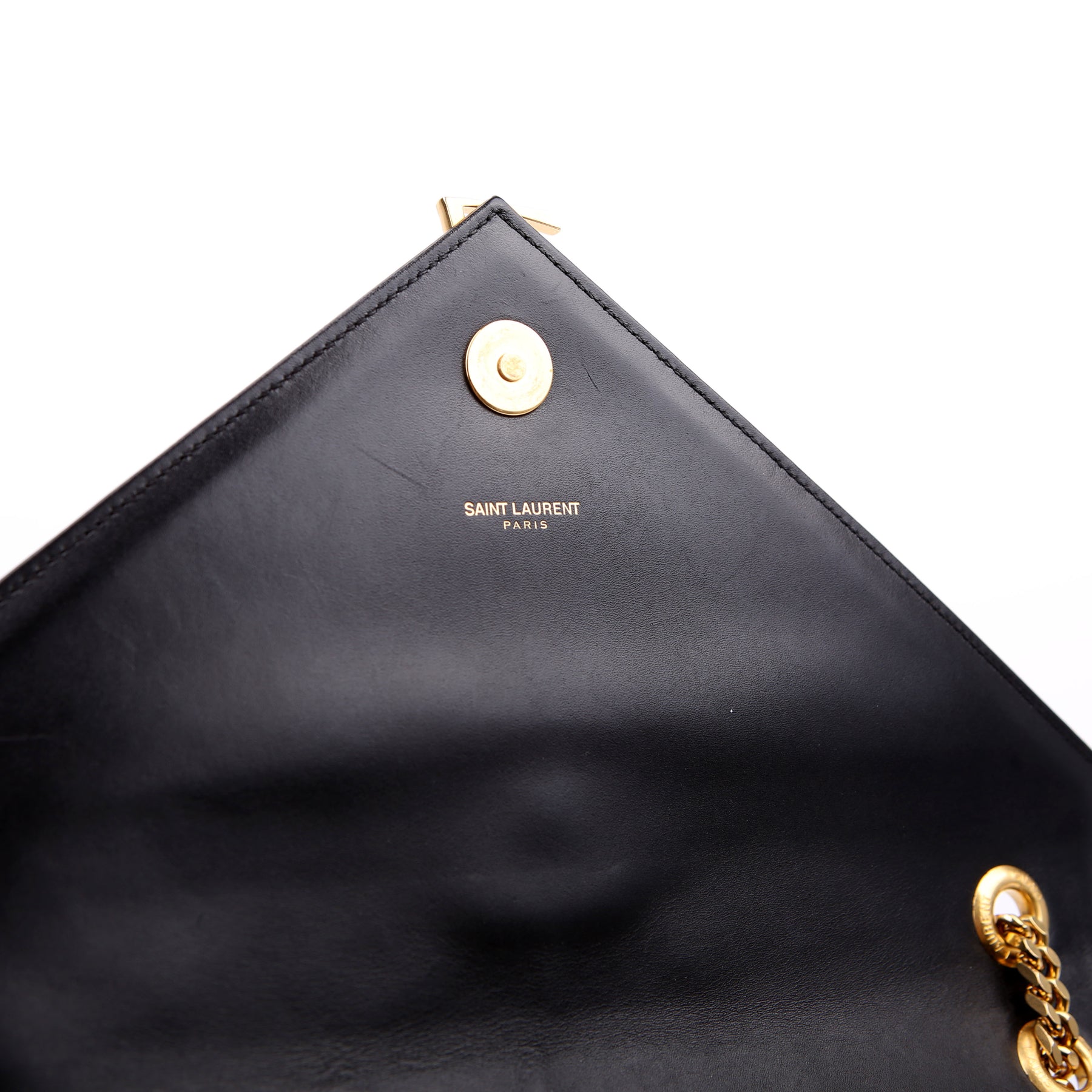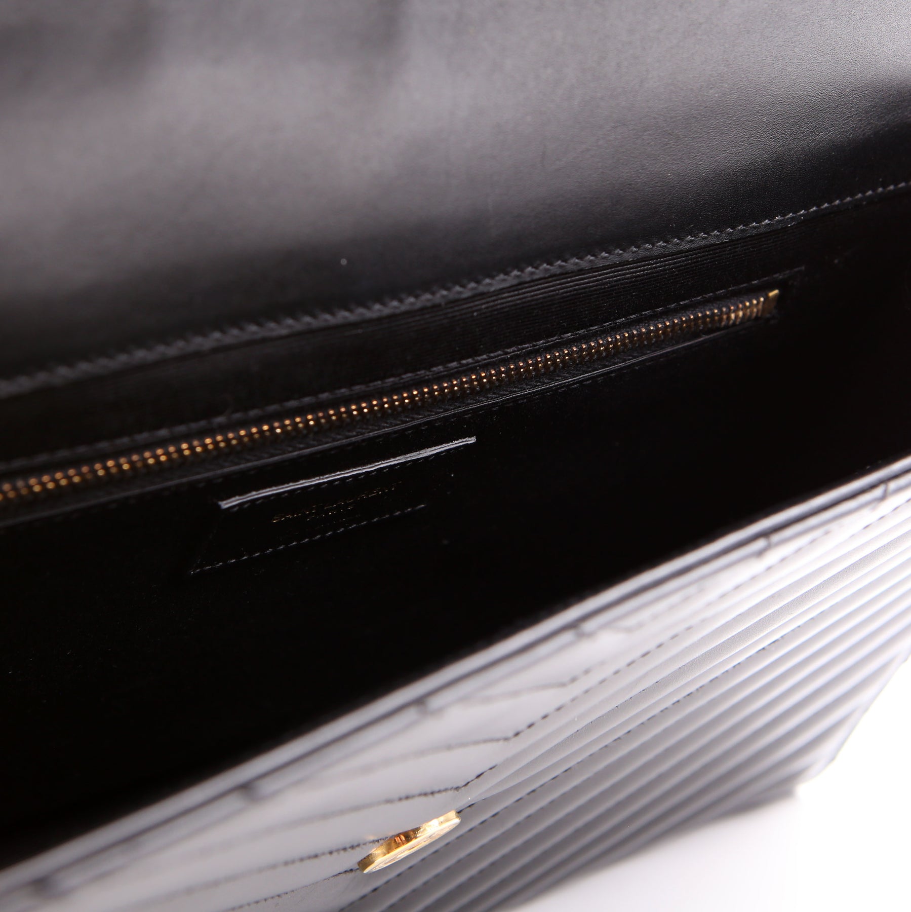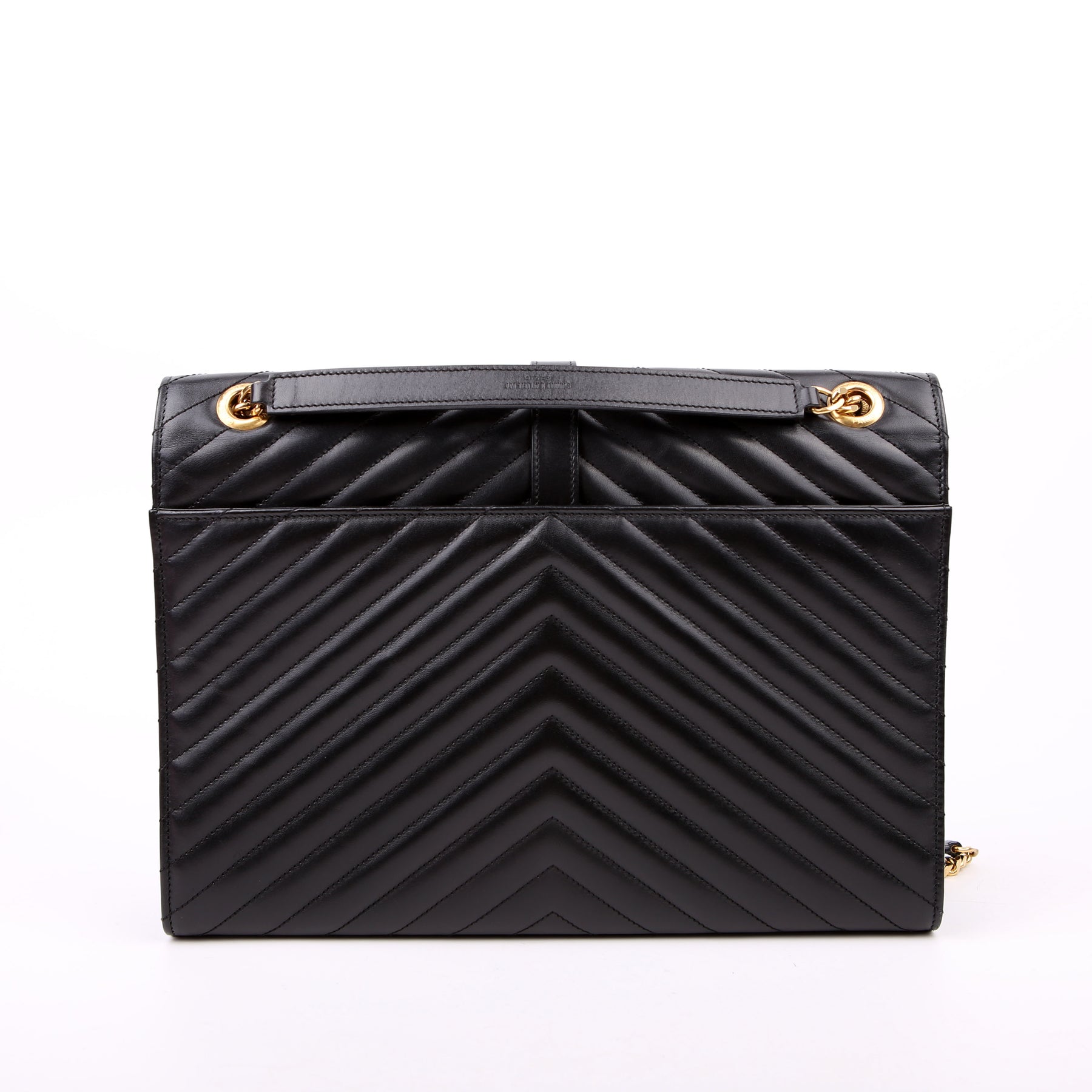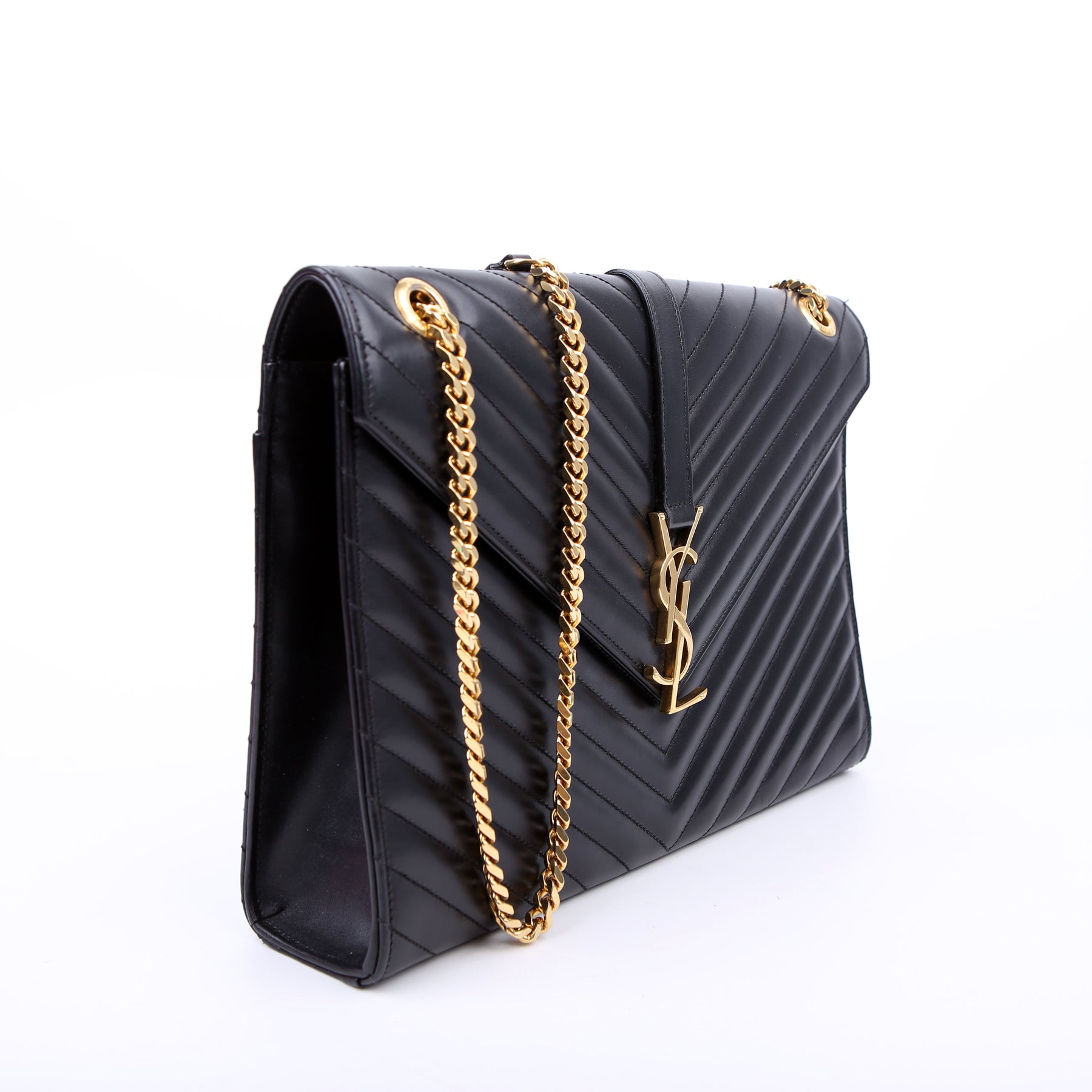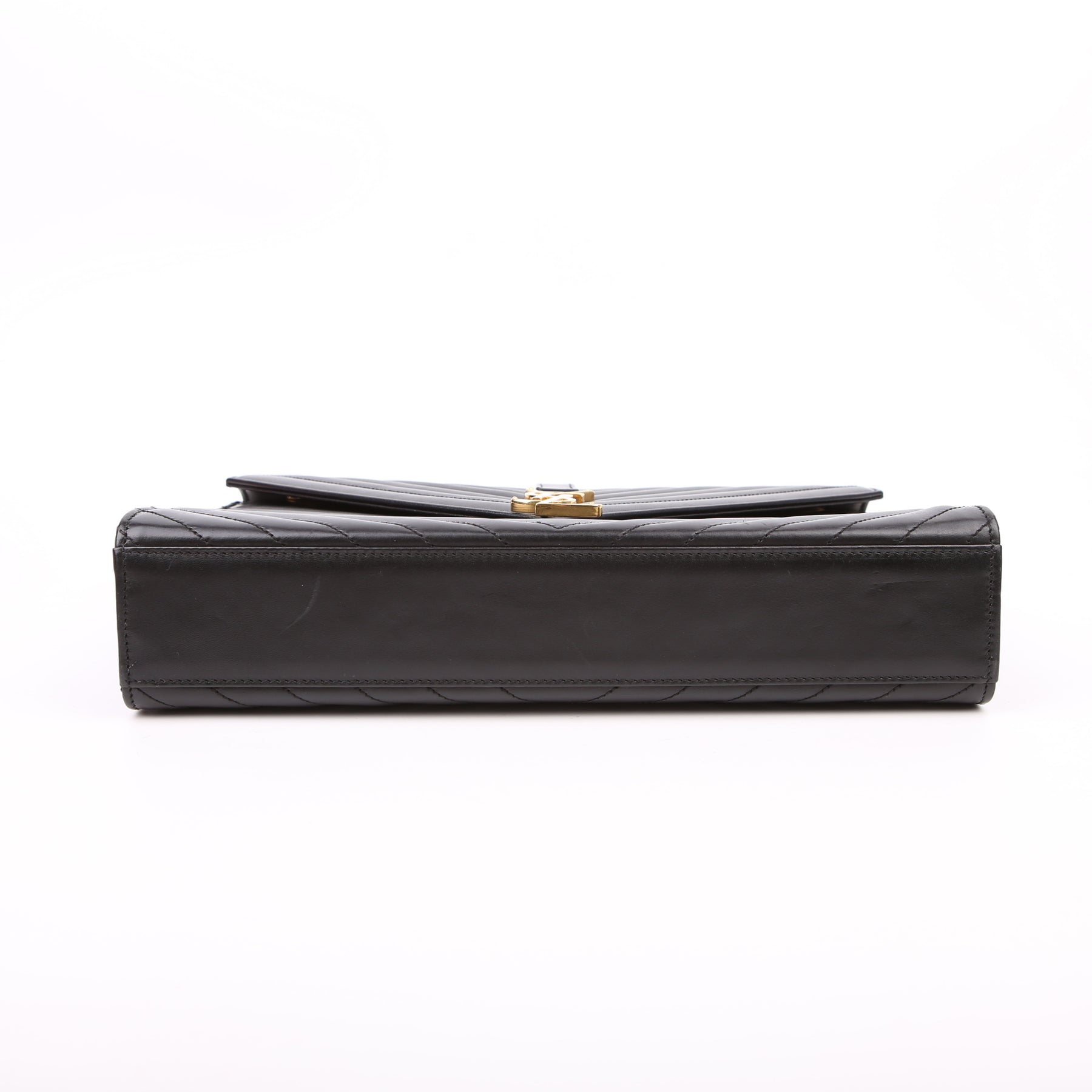 This pre-owned Saint Laurent Envelope Large Chevron is guaranteed 100% authentic. The exterior is in the classic lambskin leather.