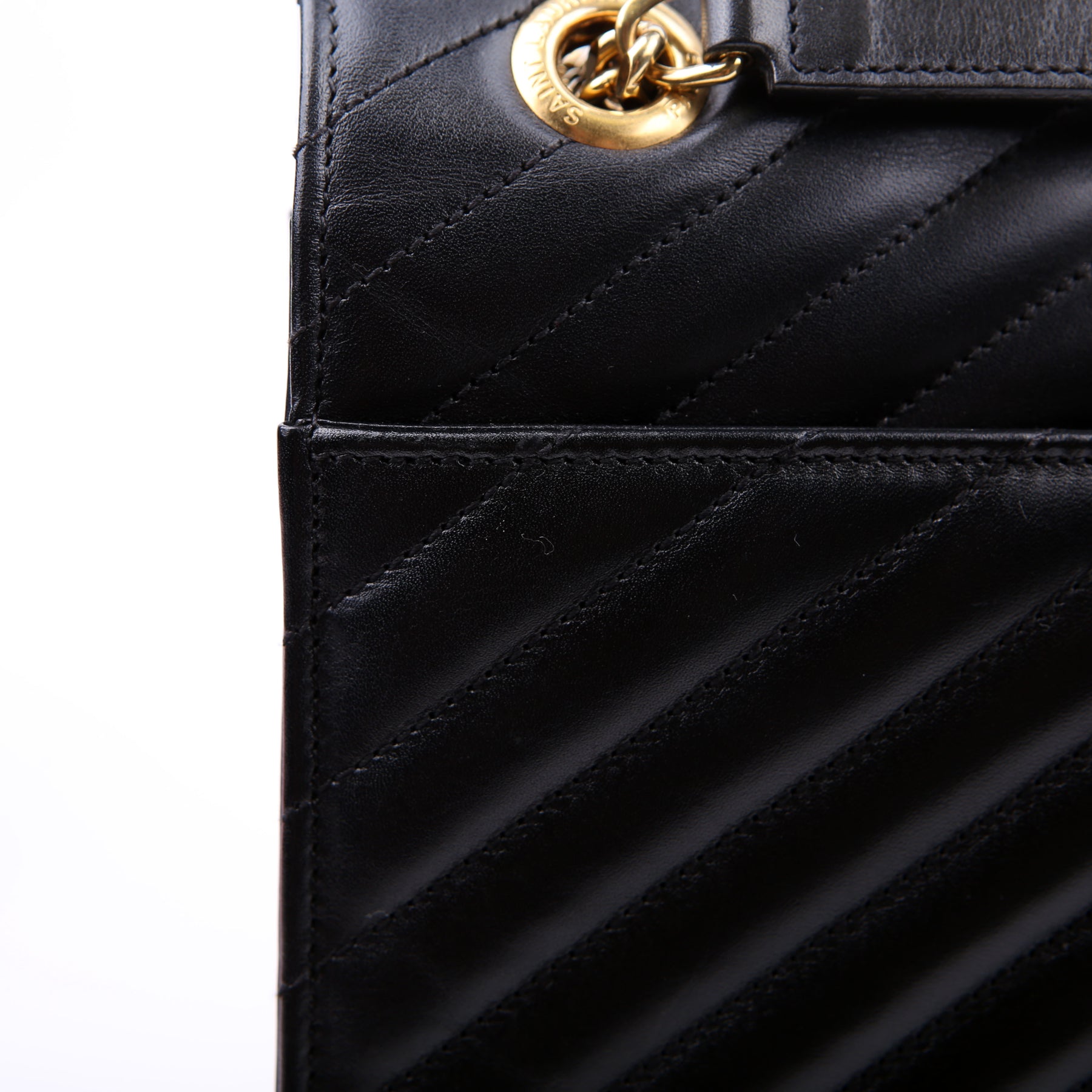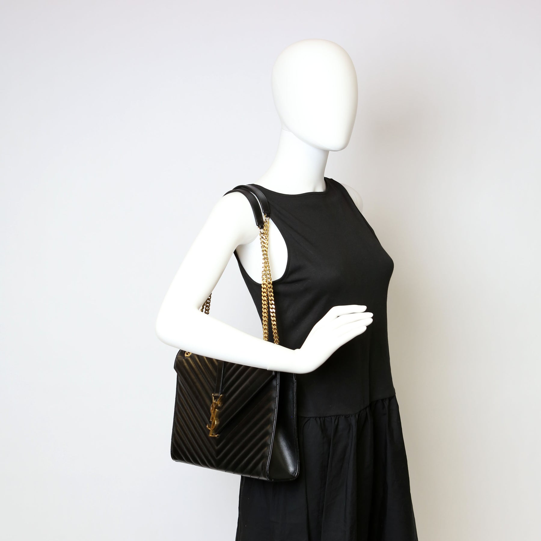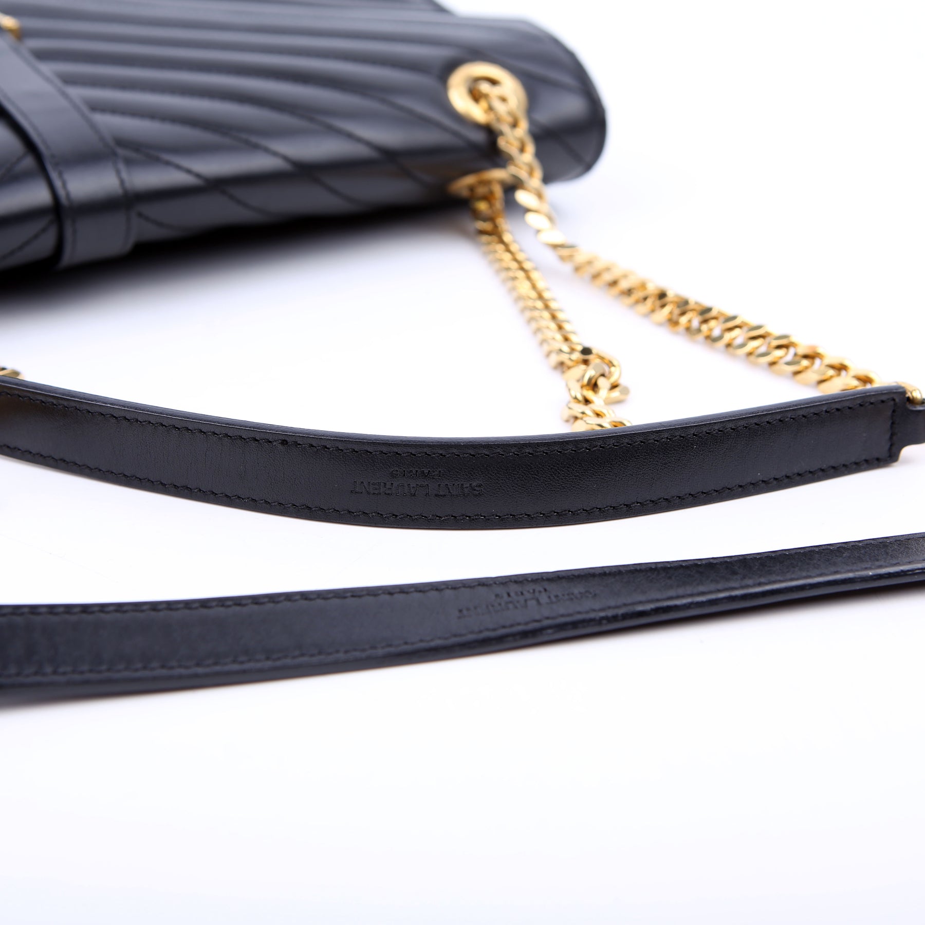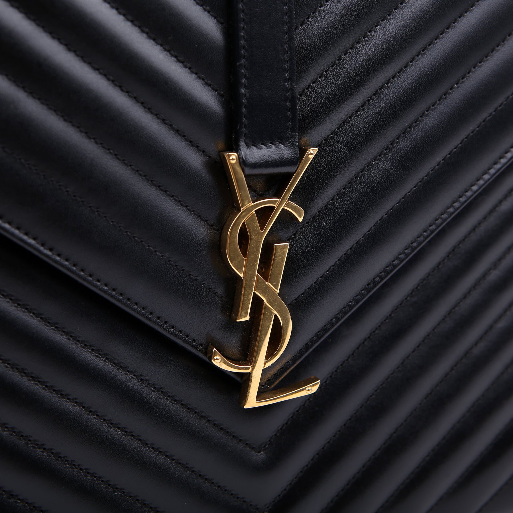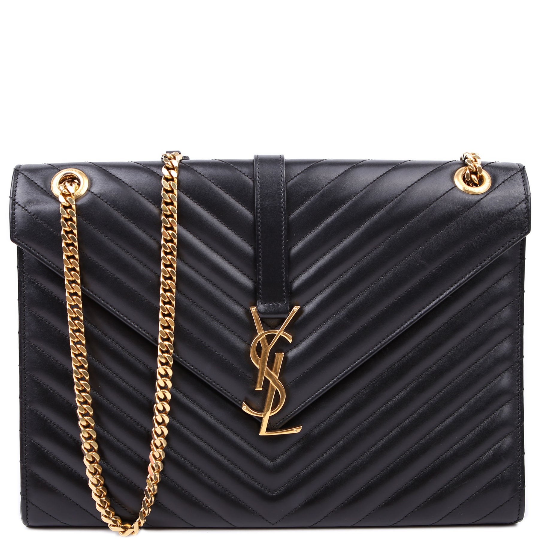 This pre-owned Saint Laurent Envelope Large Chevron is guaranteed 100% authentic. The exterior is in the classic lambskin leather.