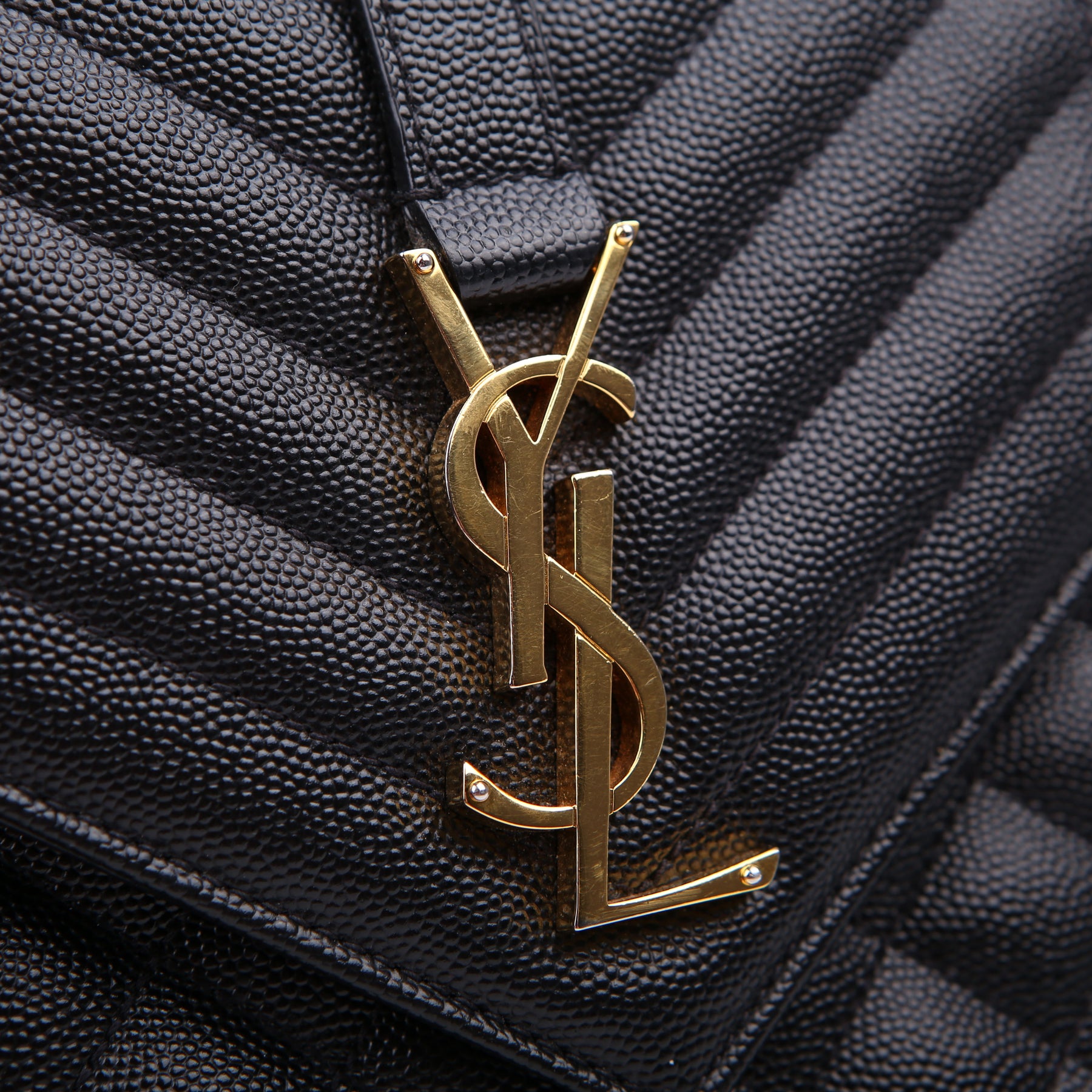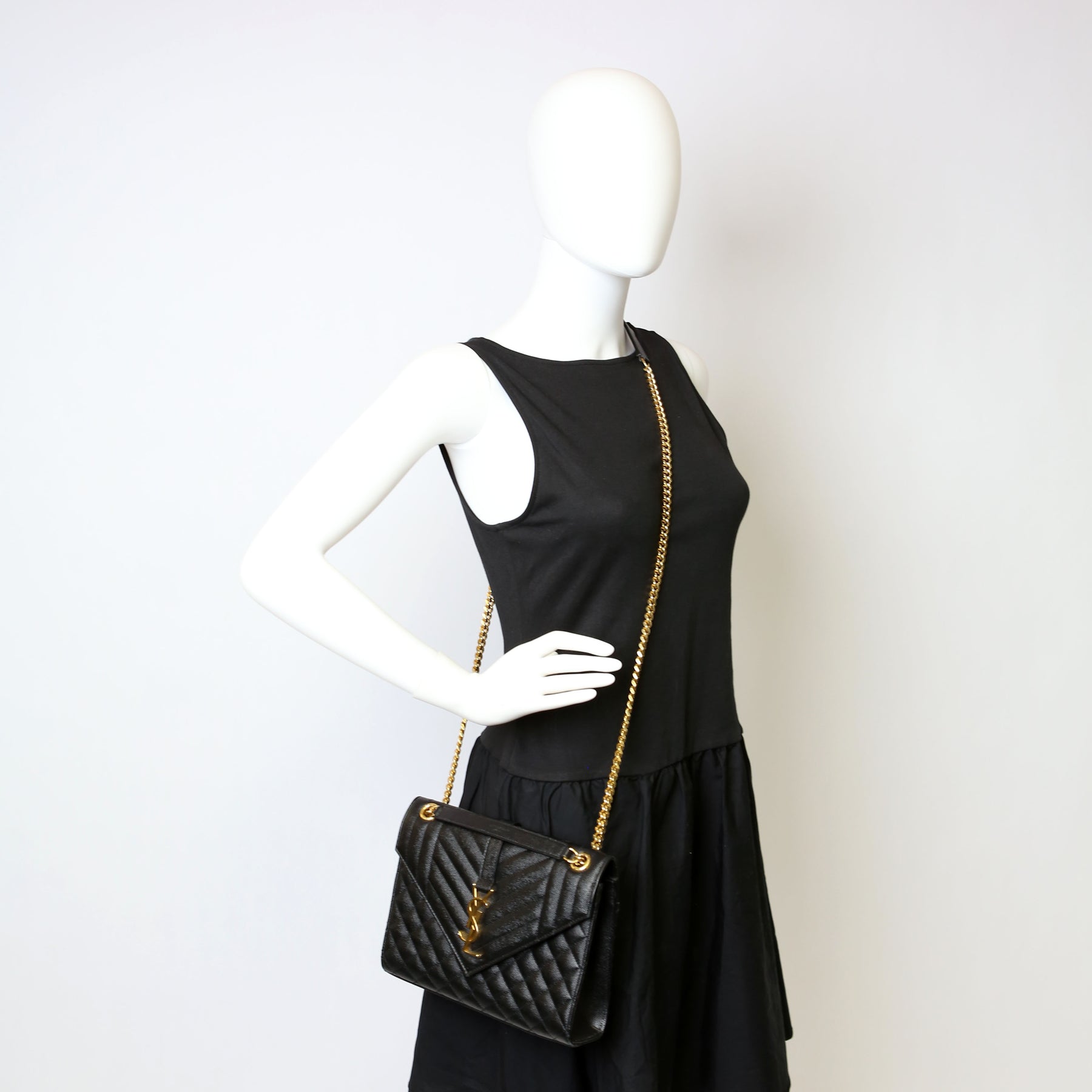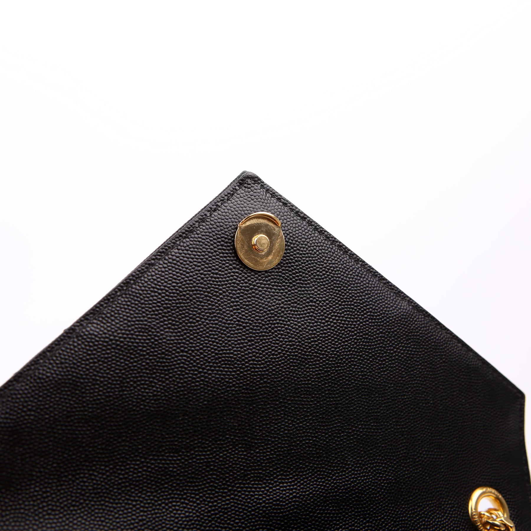 This pre-owned Saint Laurent Envelope Medium Tri-Quilted Bag is guaranteed 100% authentic. The exterior is in the classic Saint Laurent Quilted Leather.