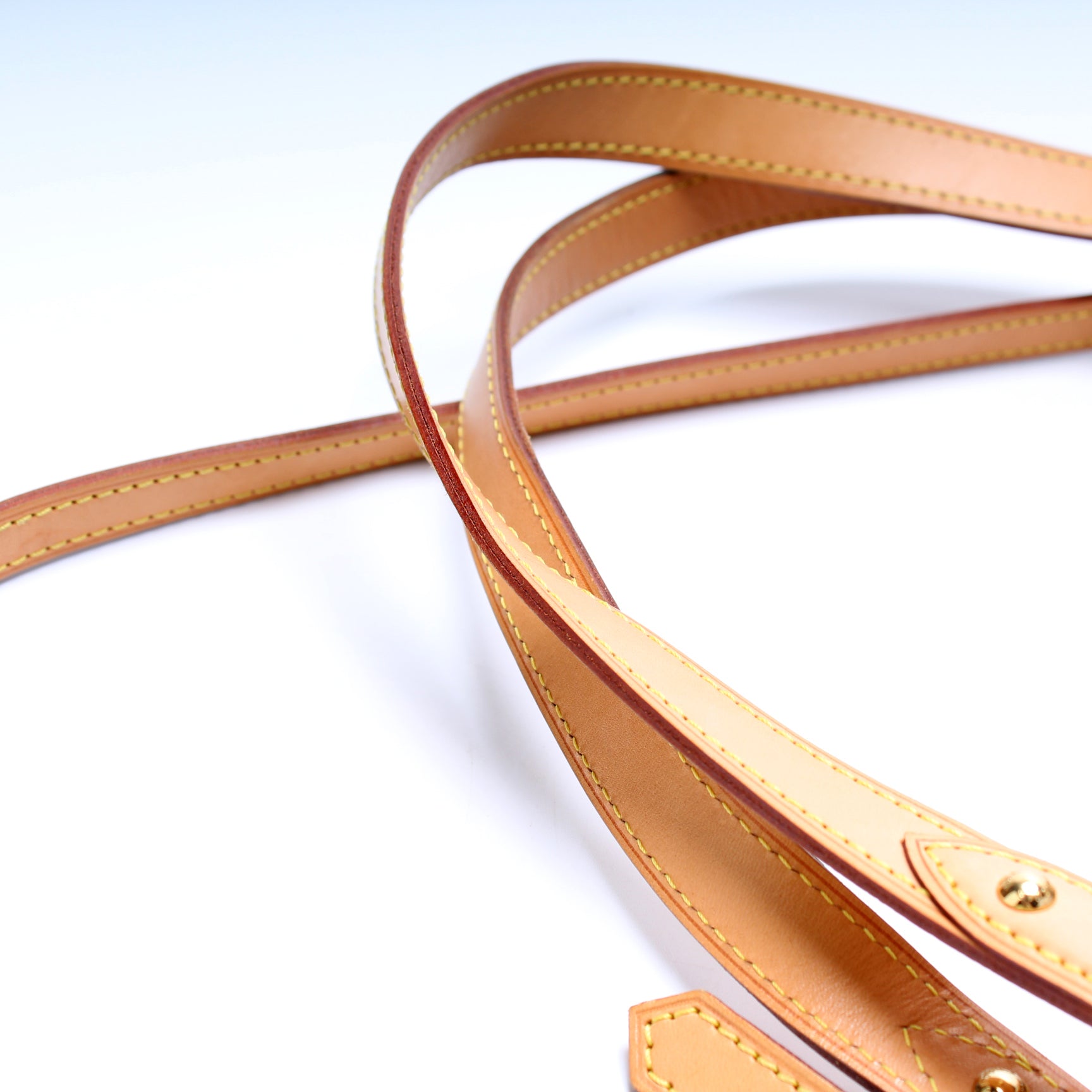 Exterior: The exterior coated canvas shows minimal scuffing throughout. The corners show minor signs of wear. The leather trim shows minor discoloration and wear throughout.