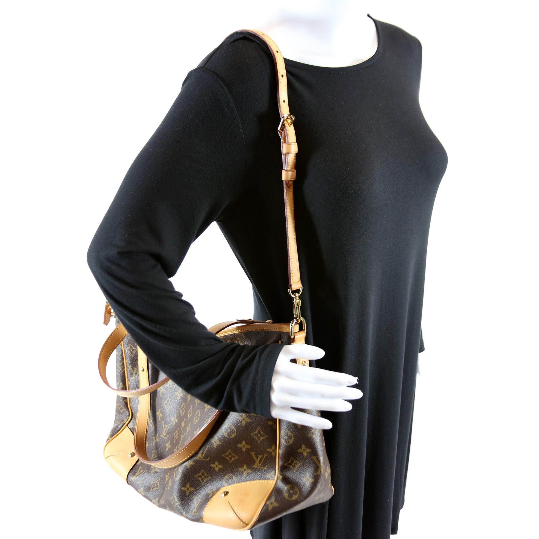 This pre-owned Louis Vuitton Estrela MM is guaranteed 100% authentic. The exterior is in the classic Louis Vuitton Monogram coated canvas.