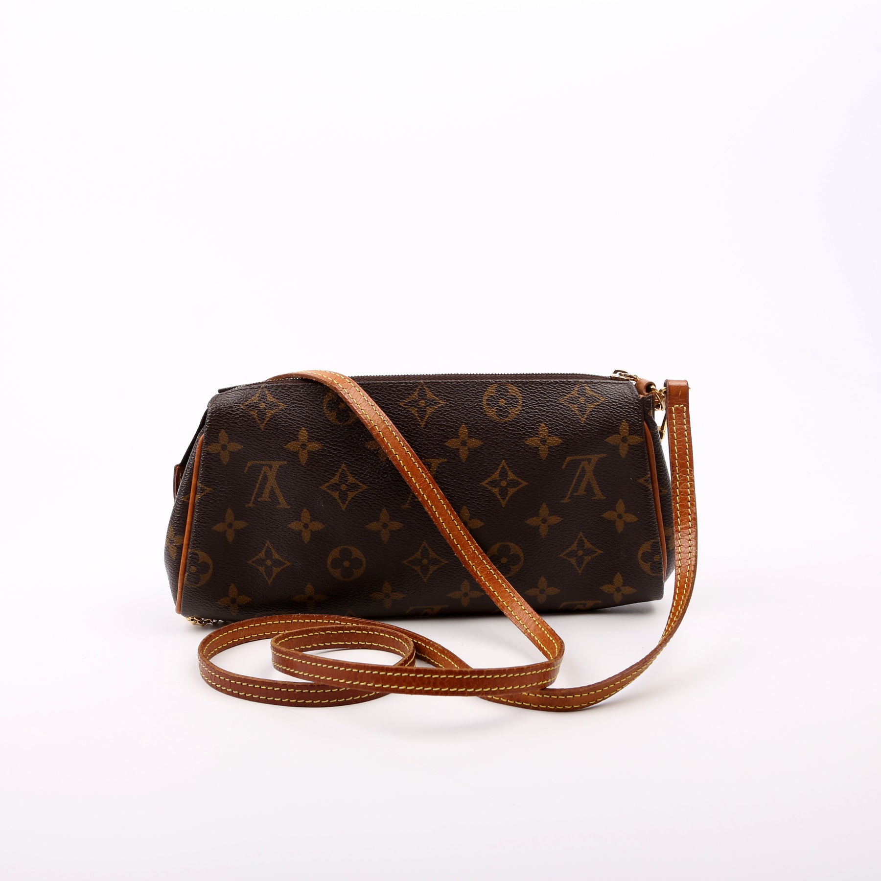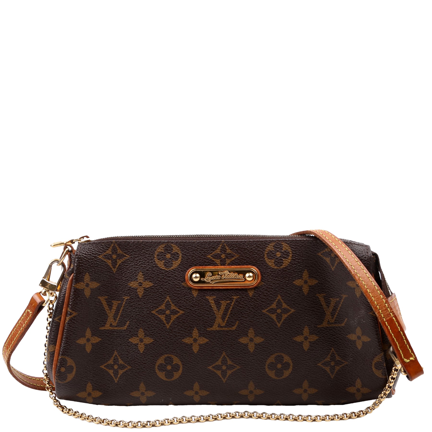 This pre-owned Louis Vuitton Eva Clutch is guaranteed 100% authentic. The exterior is in the classic Monogram coated canvas.