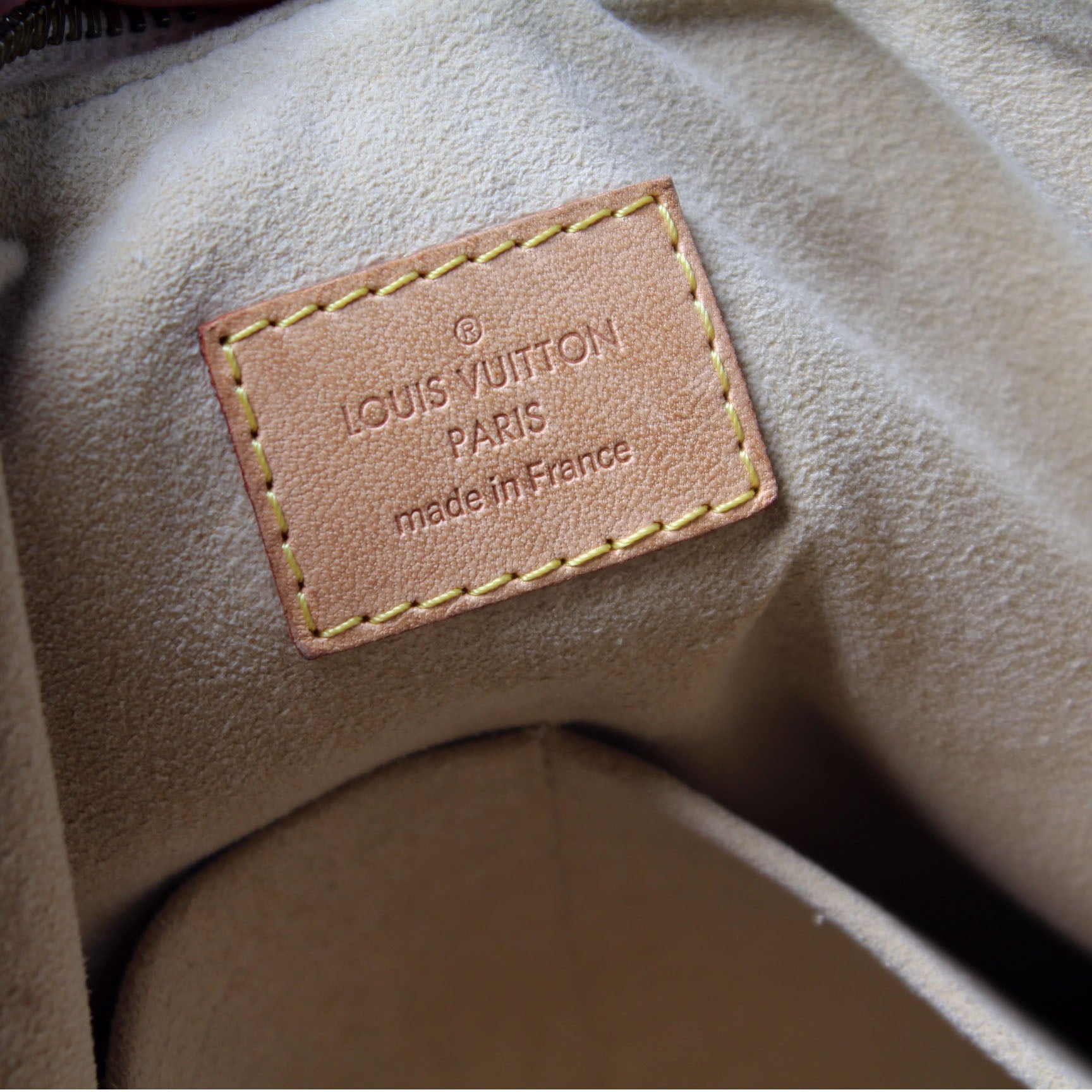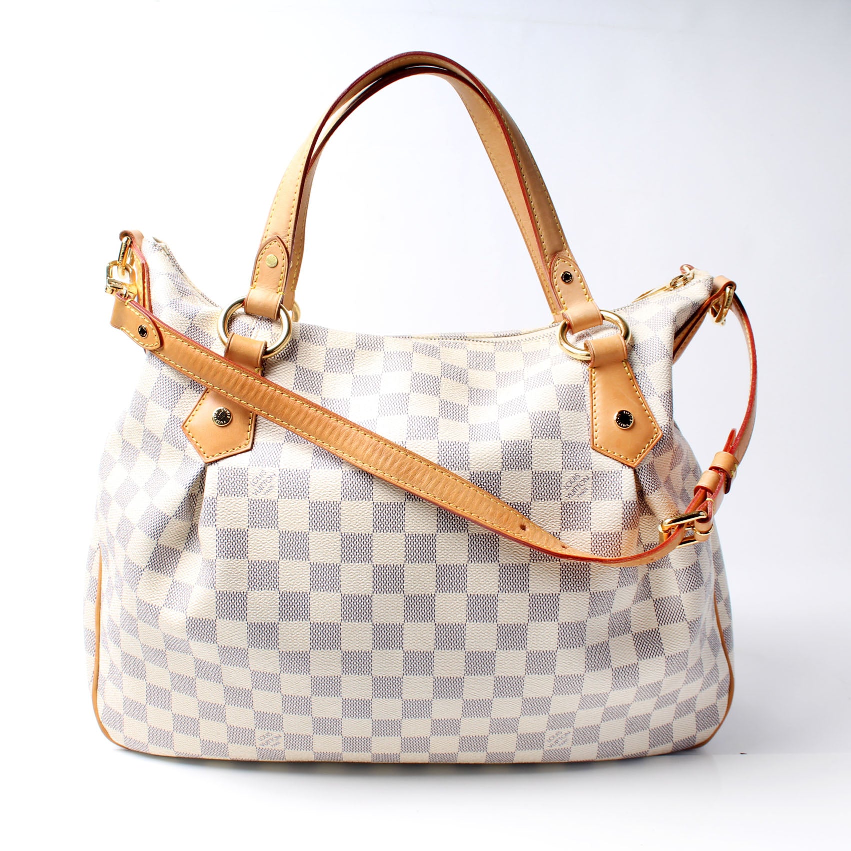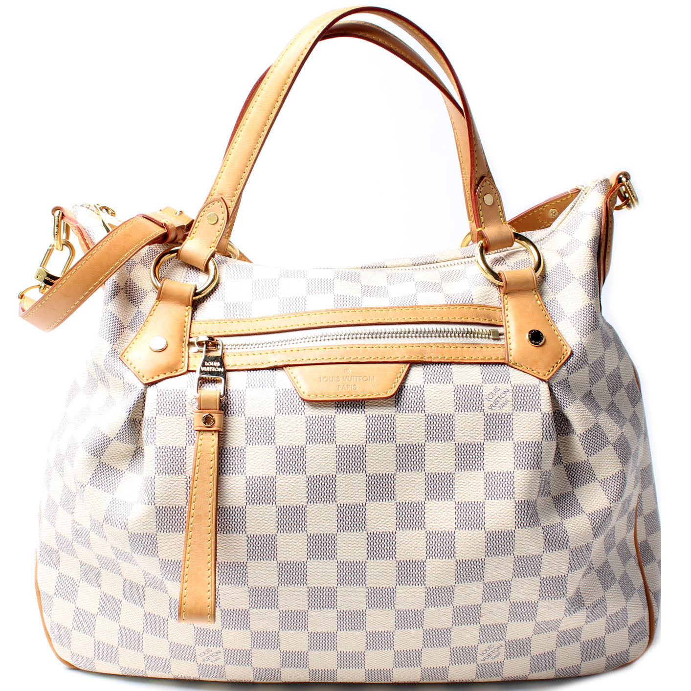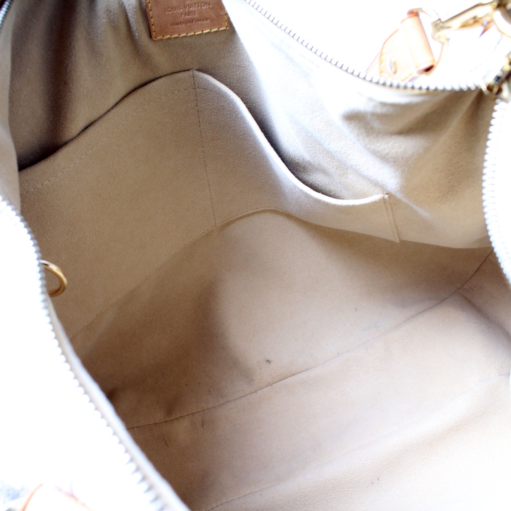 This pre-owned Louis Vuitton Evora MM is guaranteed 100% authentic. The exterior is in the classic Louis Vuitton Damier Azur coated canvas.