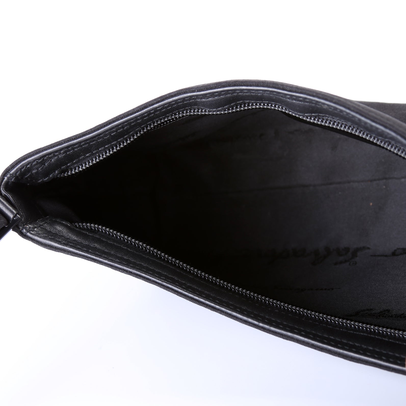 Interior: The interior is clean and free of rips or tears. The interior features one zipper pocket.