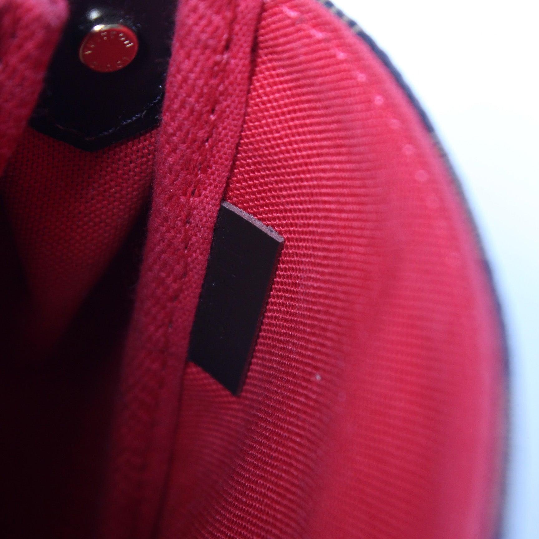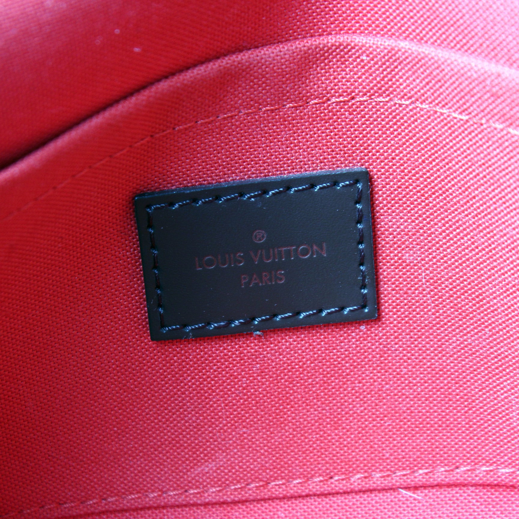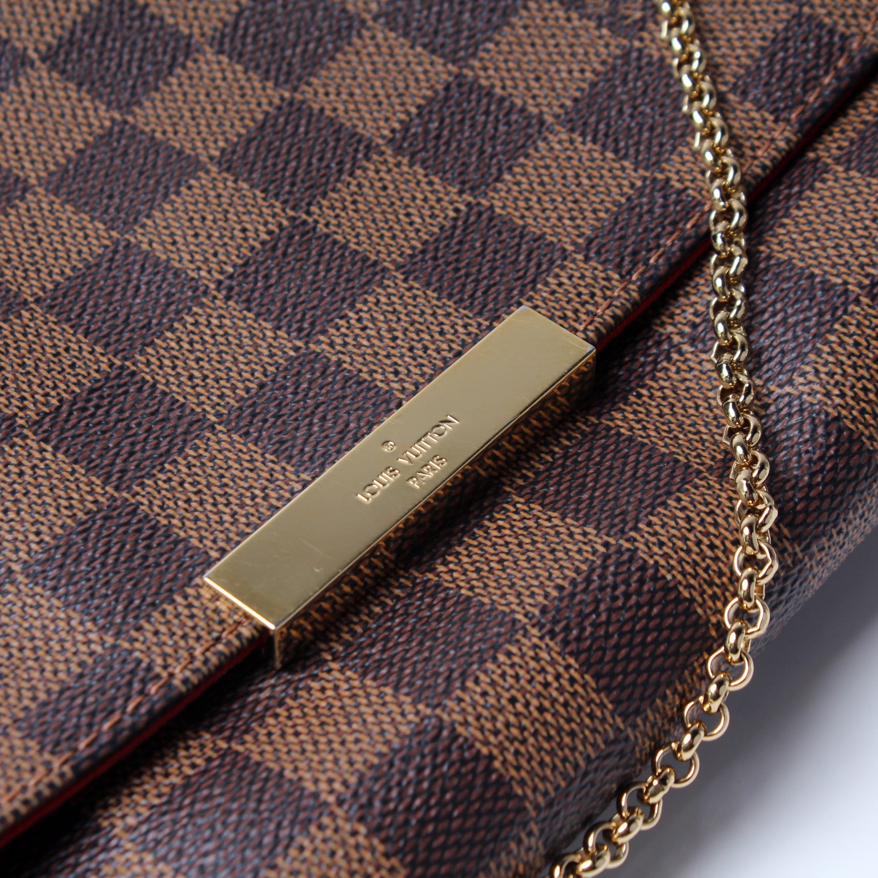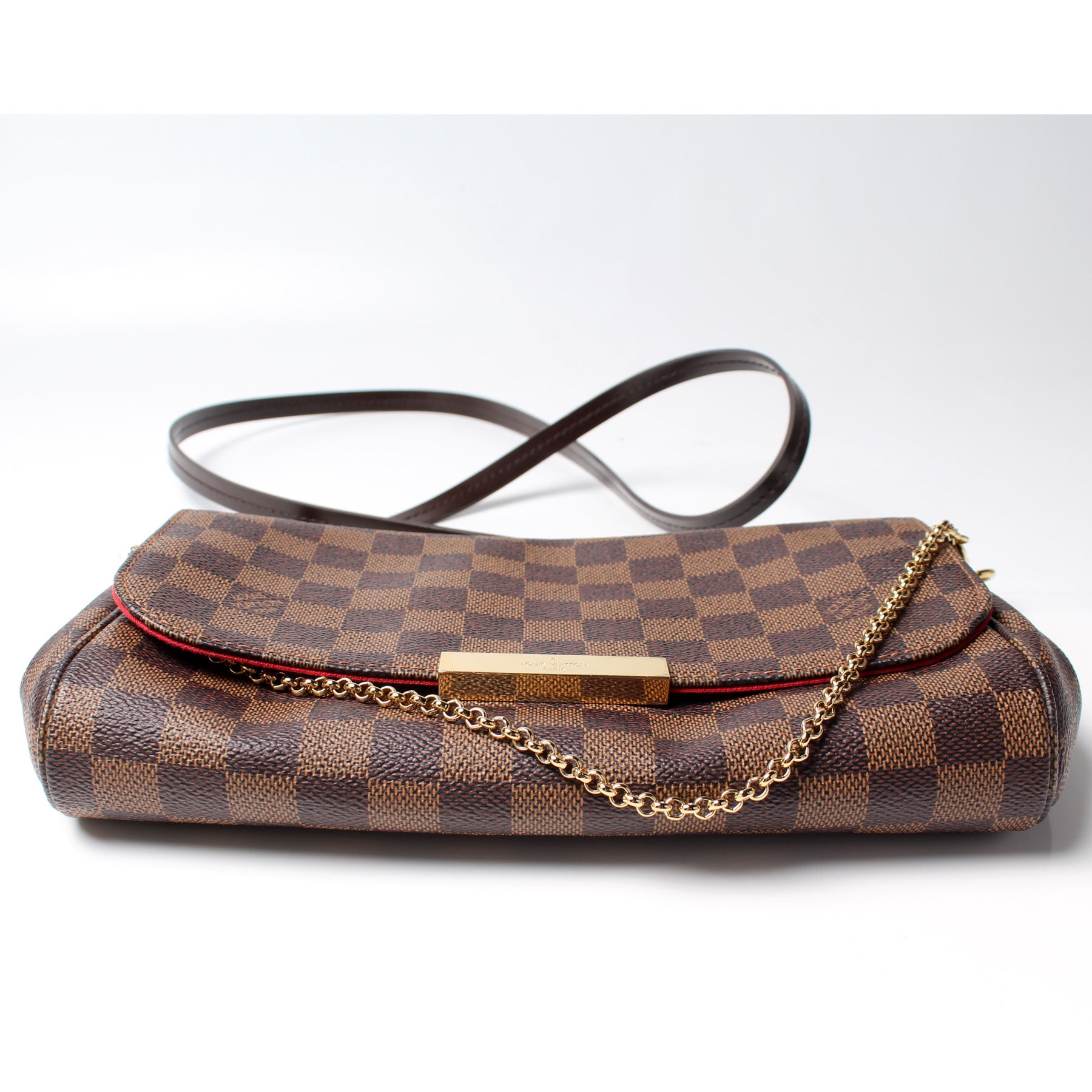 This pre-owned Louis Vuitton Favorite MM is guaranteed 100% authentic. The exterior is in the classic Damier Ebene coated canvas.