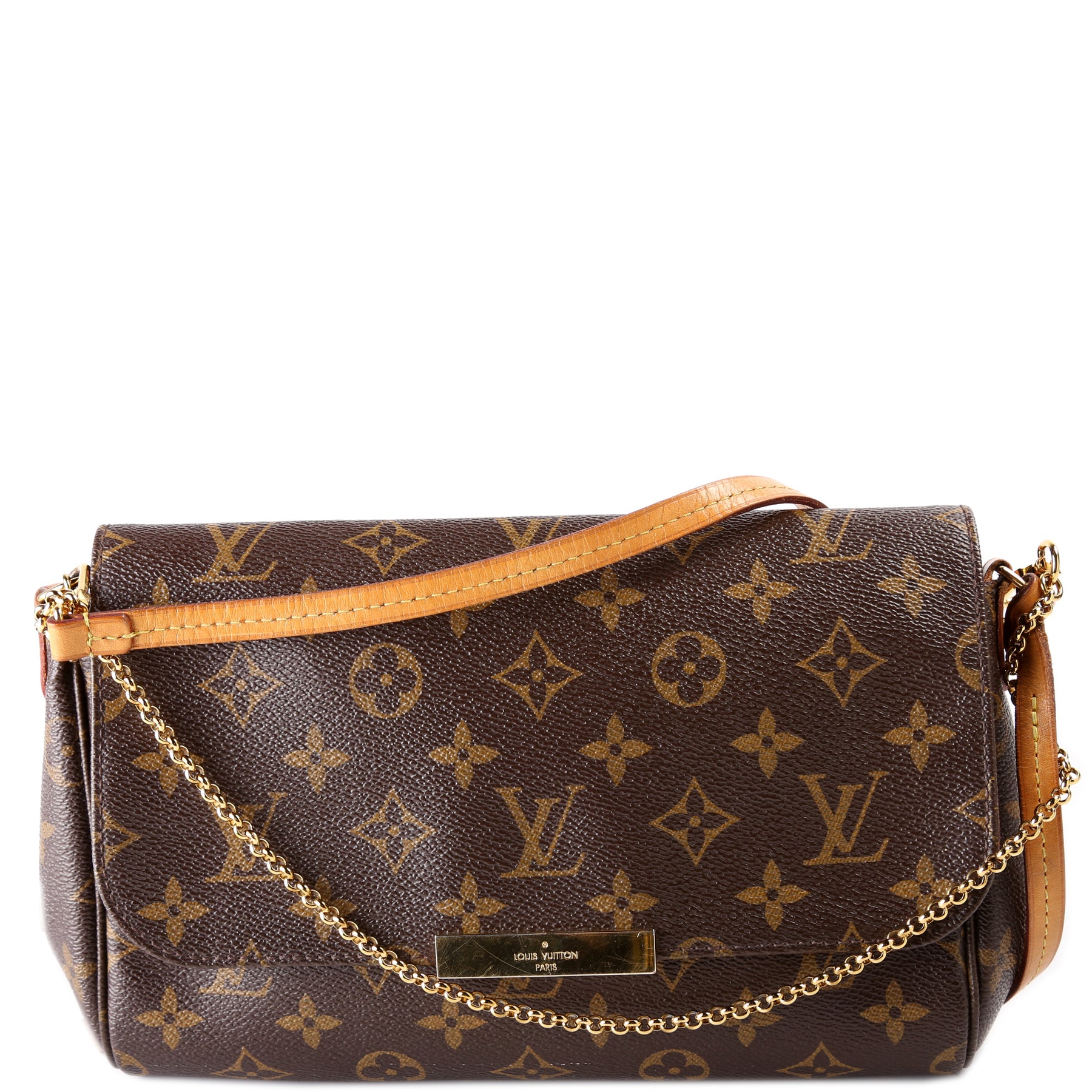 This pre-owned Louis Vuitton Favorite MM is guaranteed 100% authentic. The exterior is in the classic Louis Vuitton Monogram coated canvas.