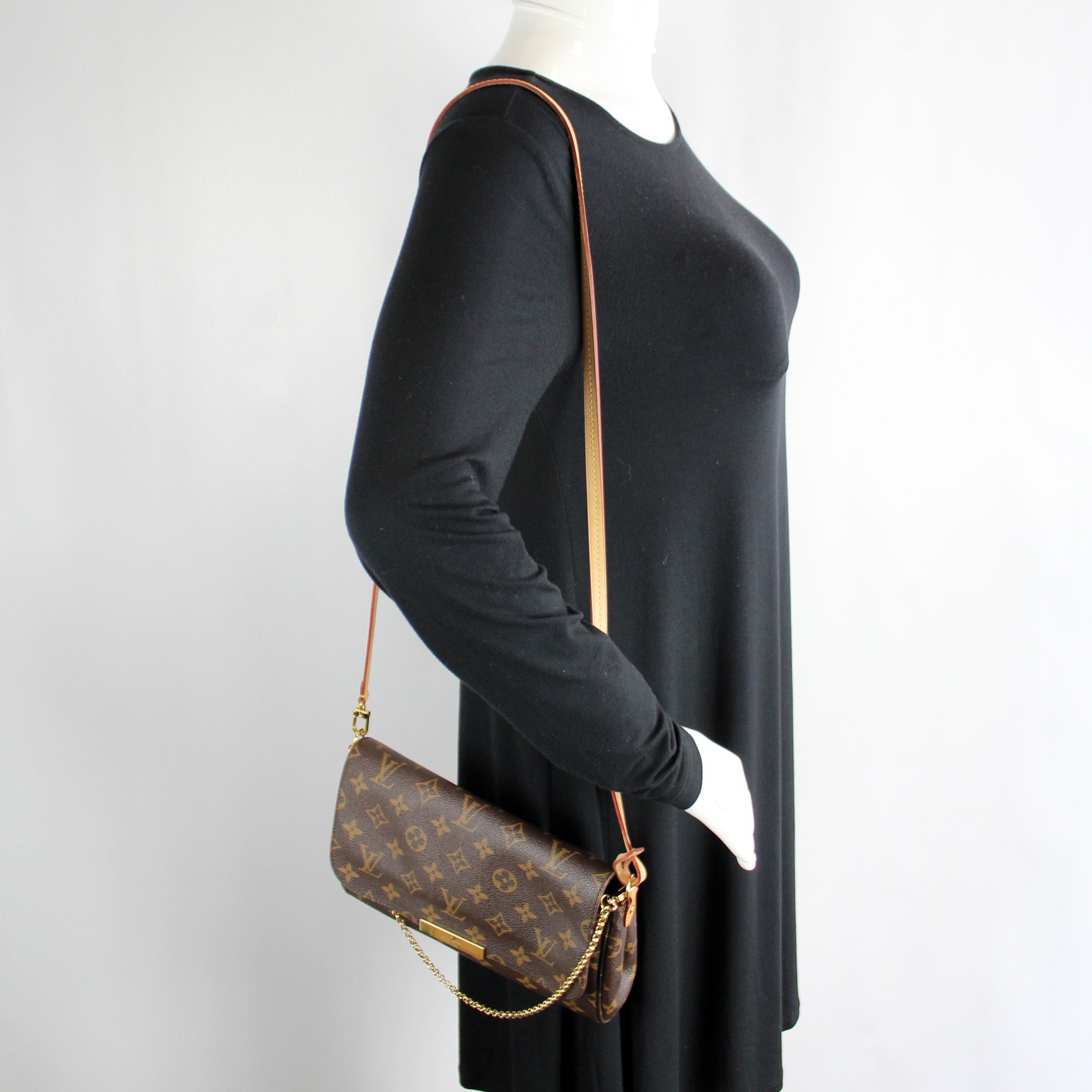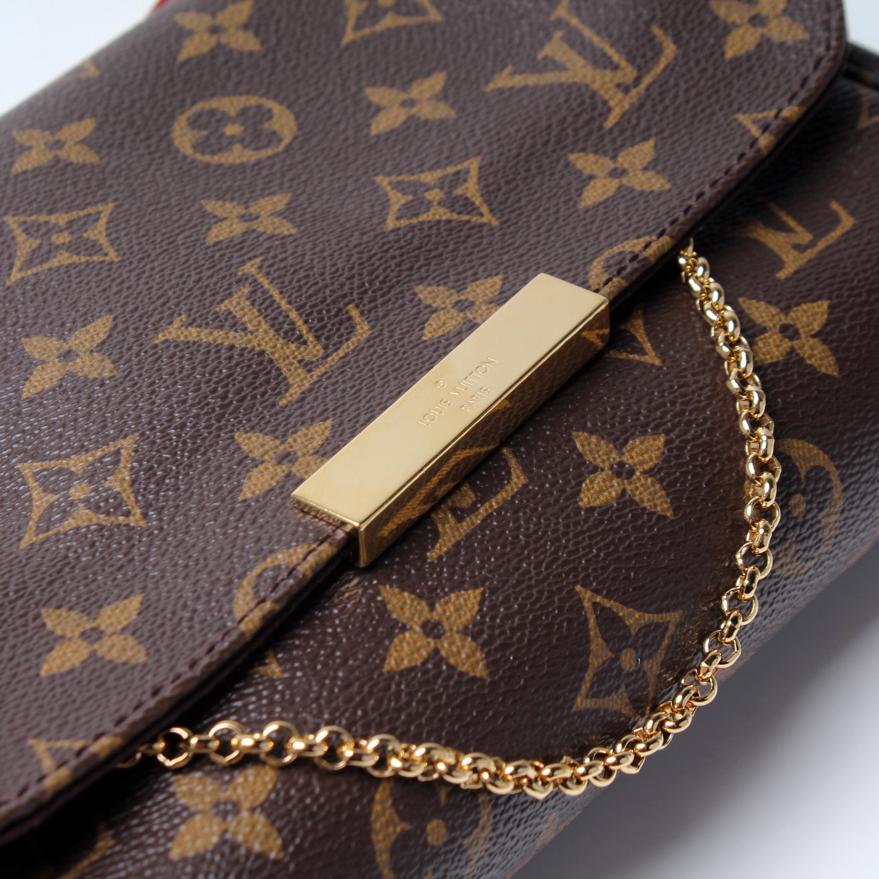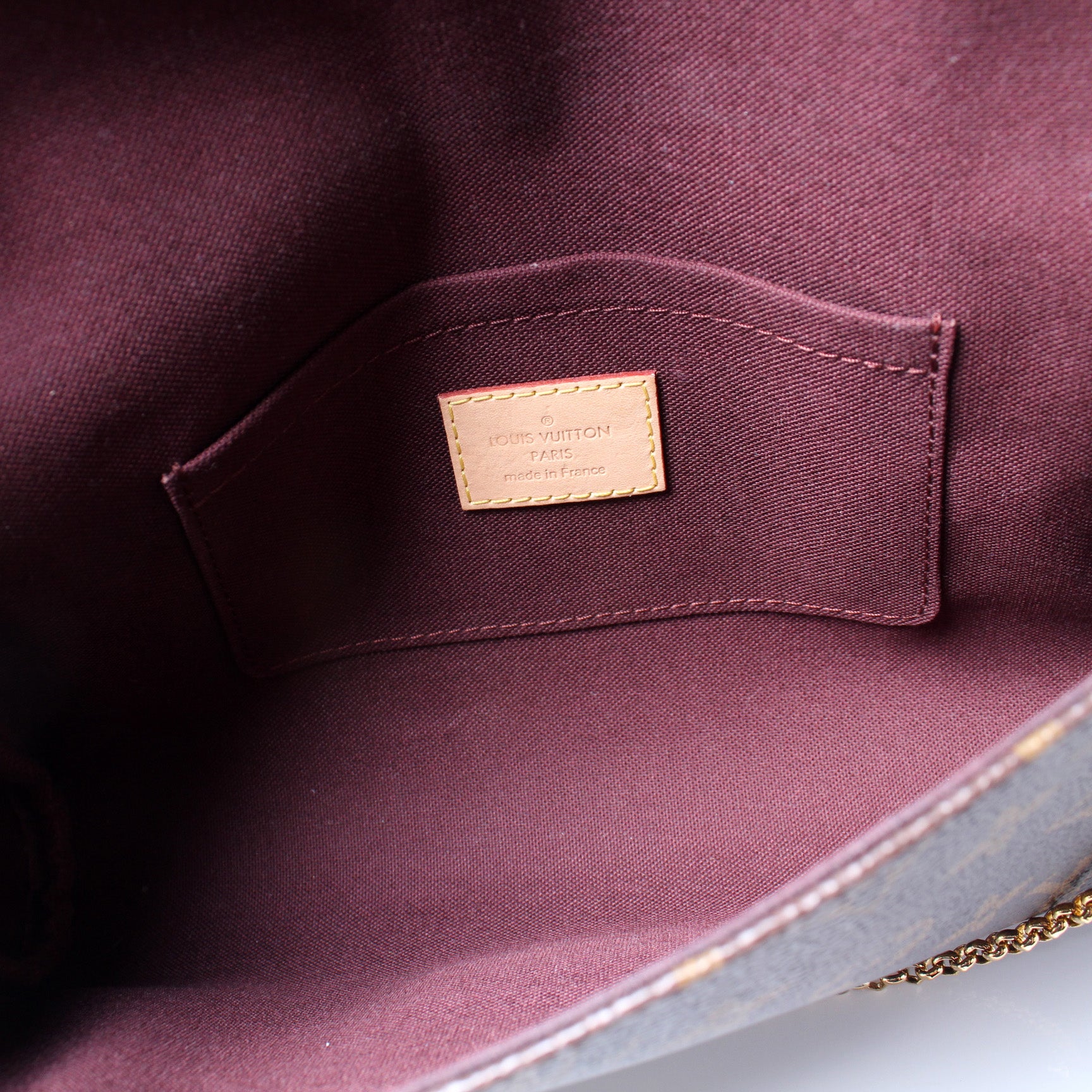 This pre-owned Louis Vuitton Favorite MM is guaranteed 100% authentic. The exterior is in the classic Monogram coated canvas.