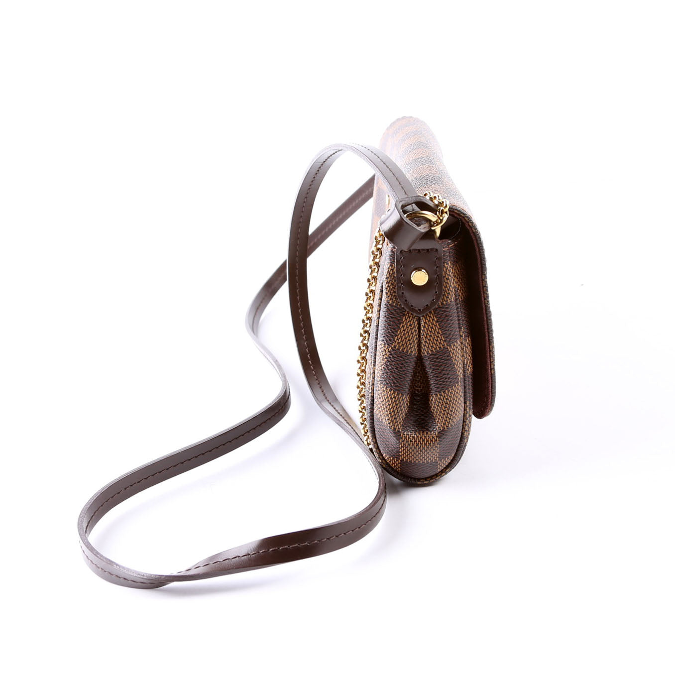 This pre-owned Louis Vuitton Favorite PM is guaranteed 100% authentic. The exterior is in the classic Damier Ebene coated canvas.