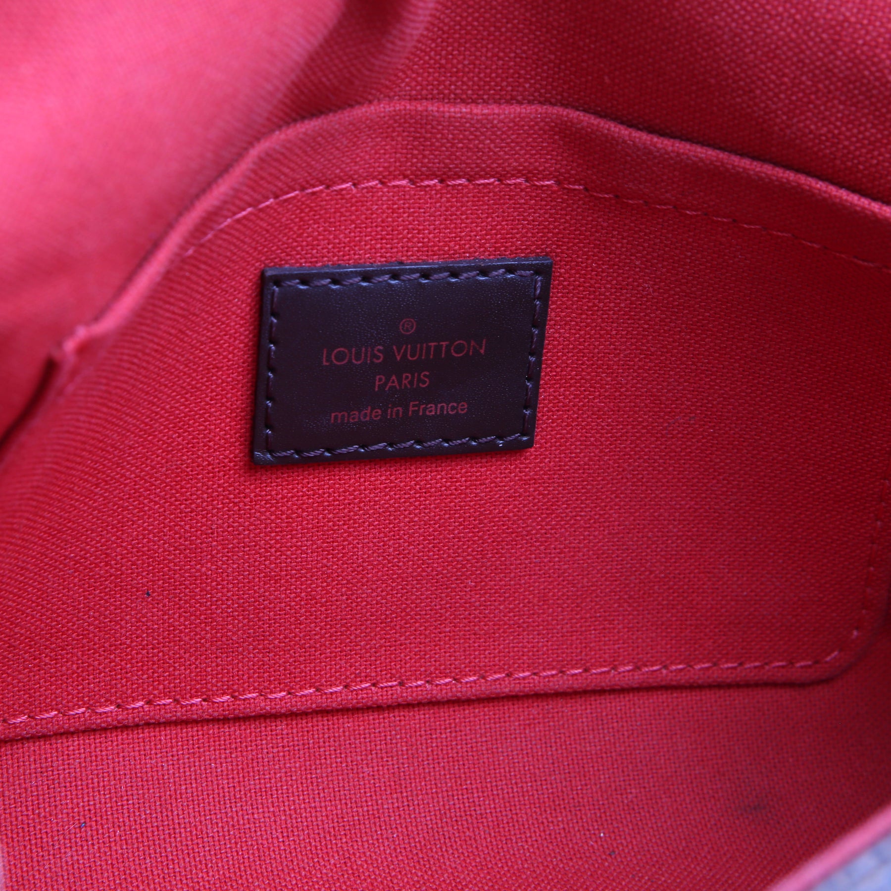 This pre-owned Louis Vuitton Favorite PM is guaranteed 100% authentic. The exterior is in the classic Damier Ebene coated canvas.