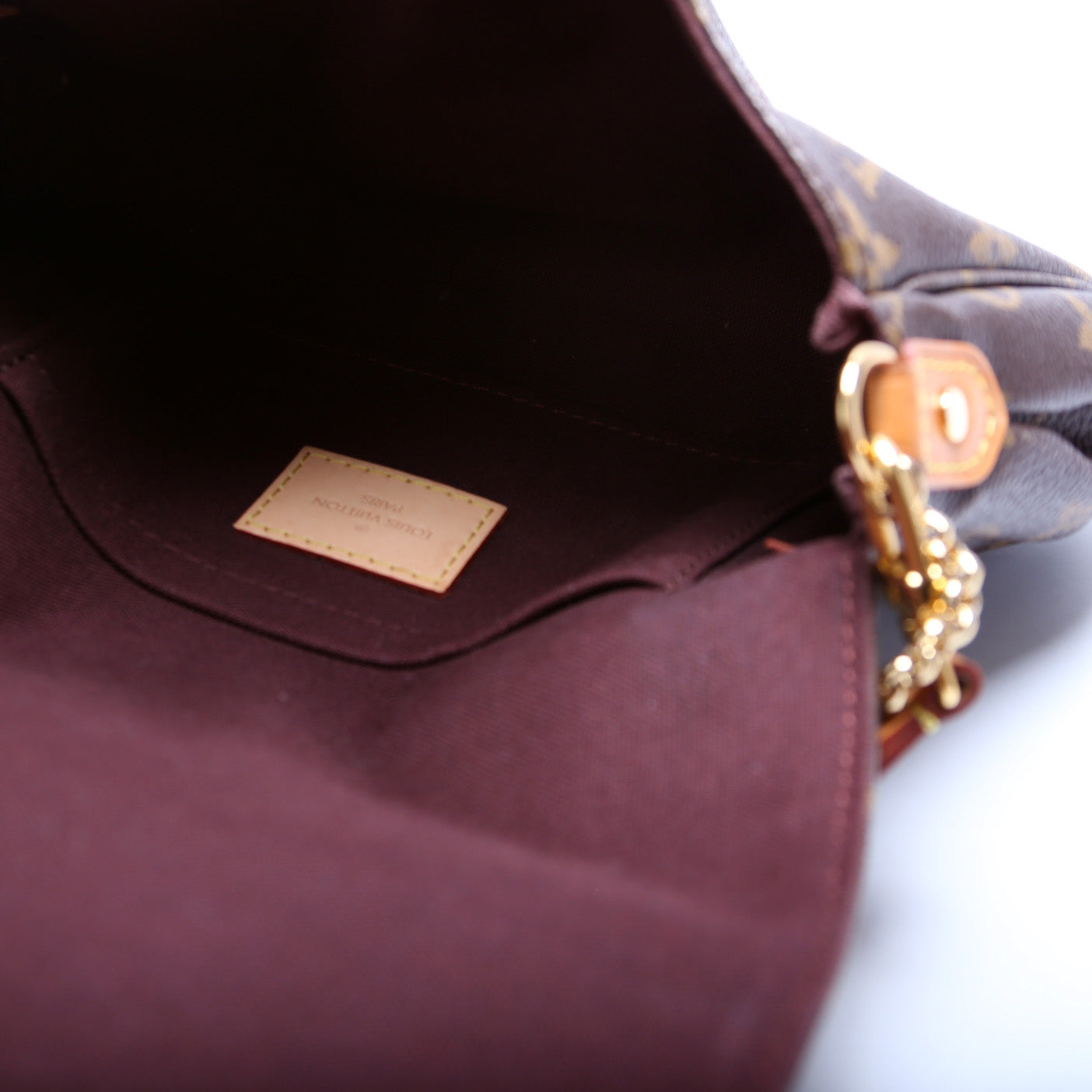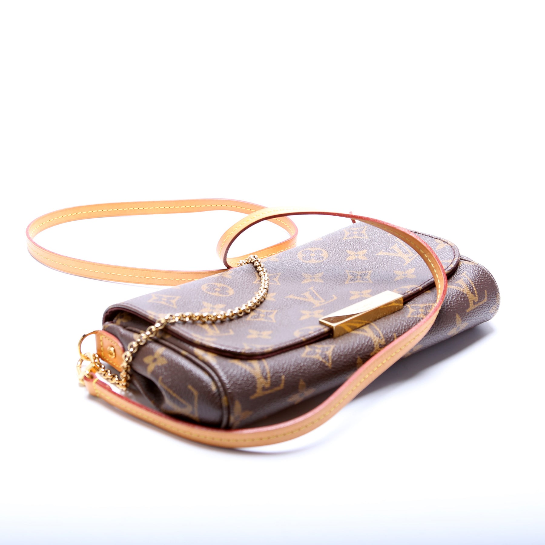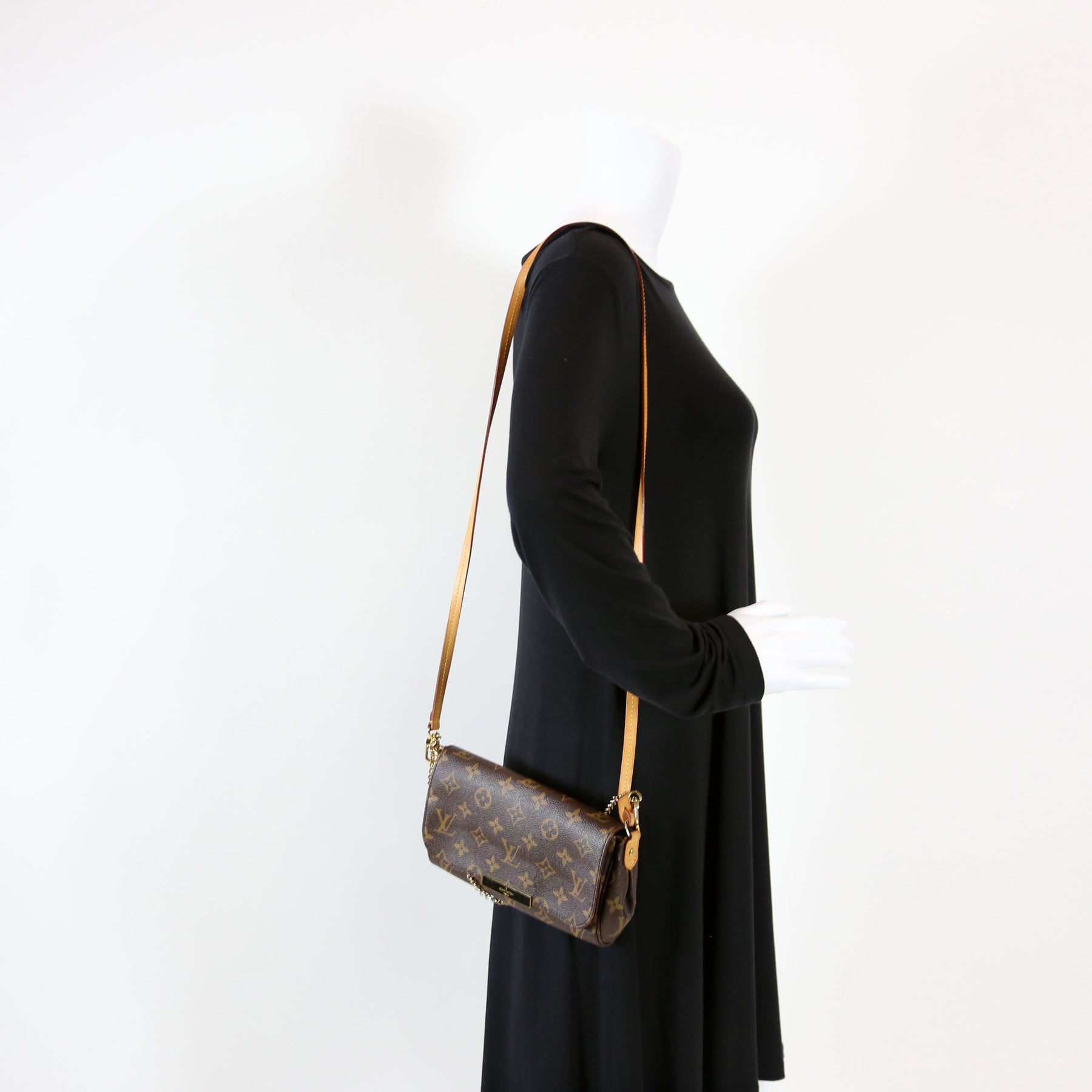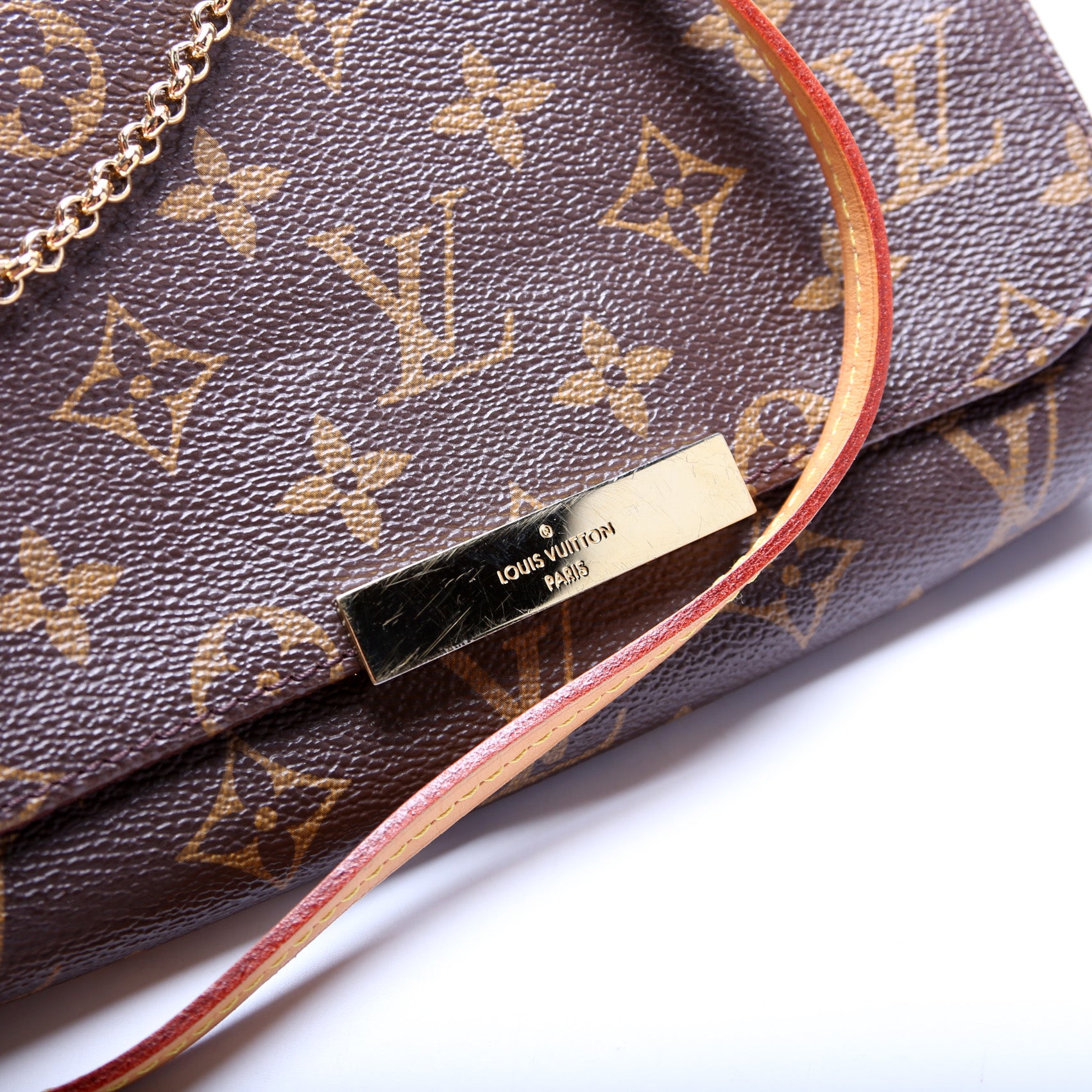 This Louis Vuitton Favorite PM is guaranteed 100% authentic. The exterior is in the classic Monogram coated canvas.
