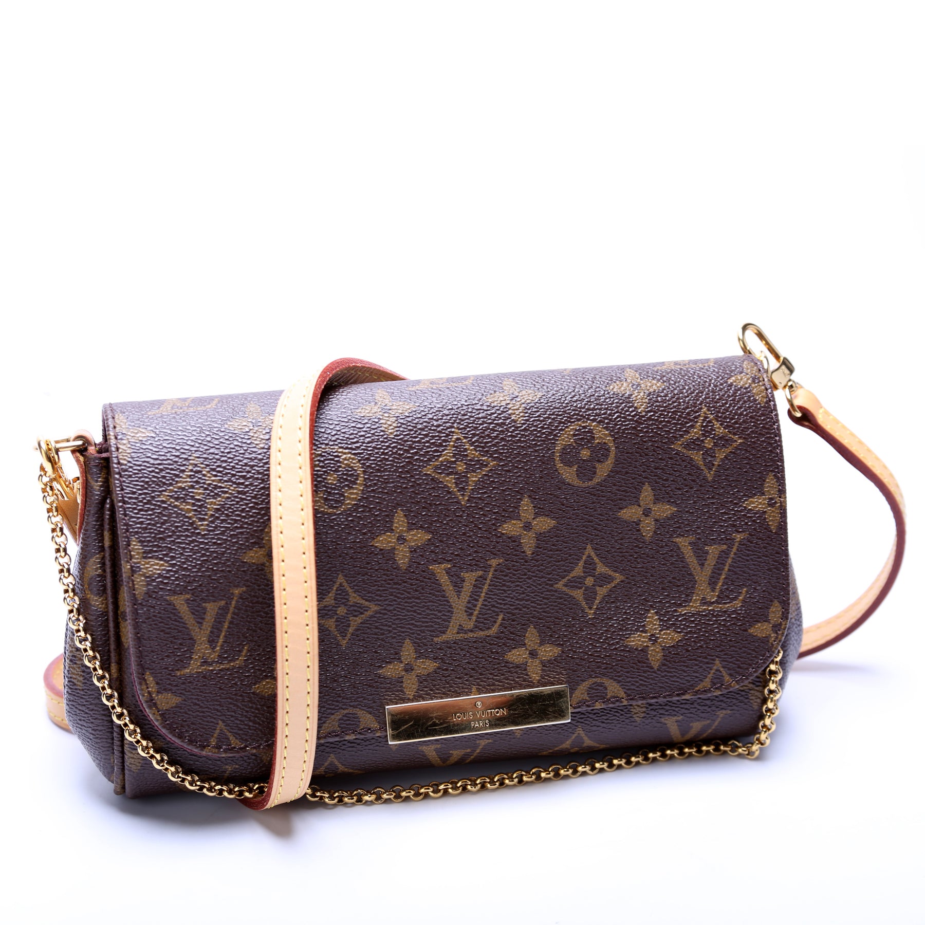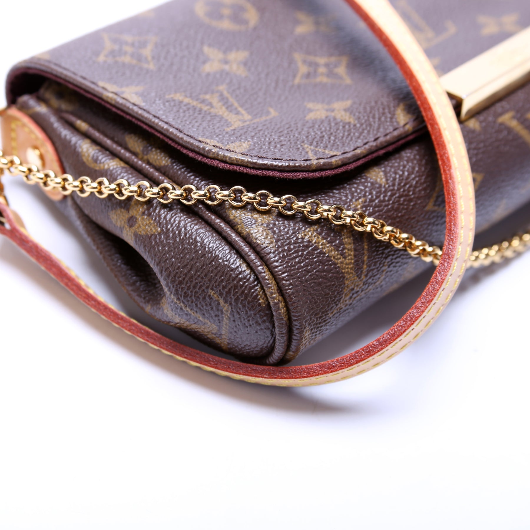 This Louis Vuitton Favorite PM is guaranteed 100% authentic. The exterior is in the classic Monogram coated canvas.
