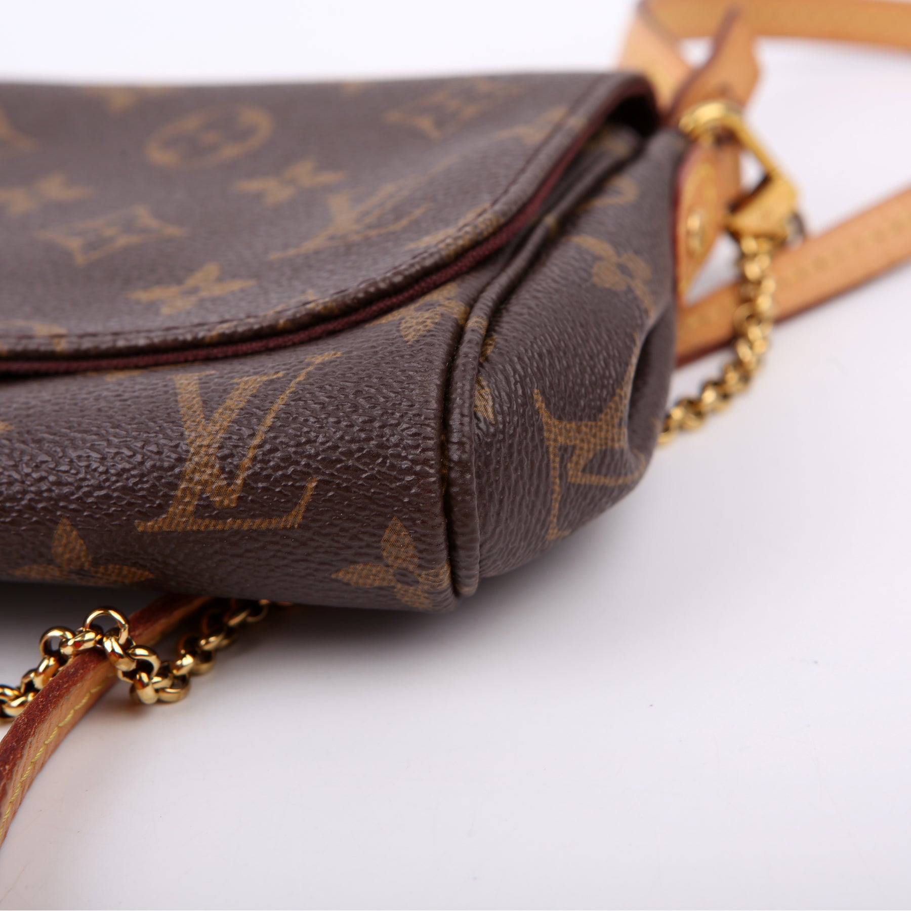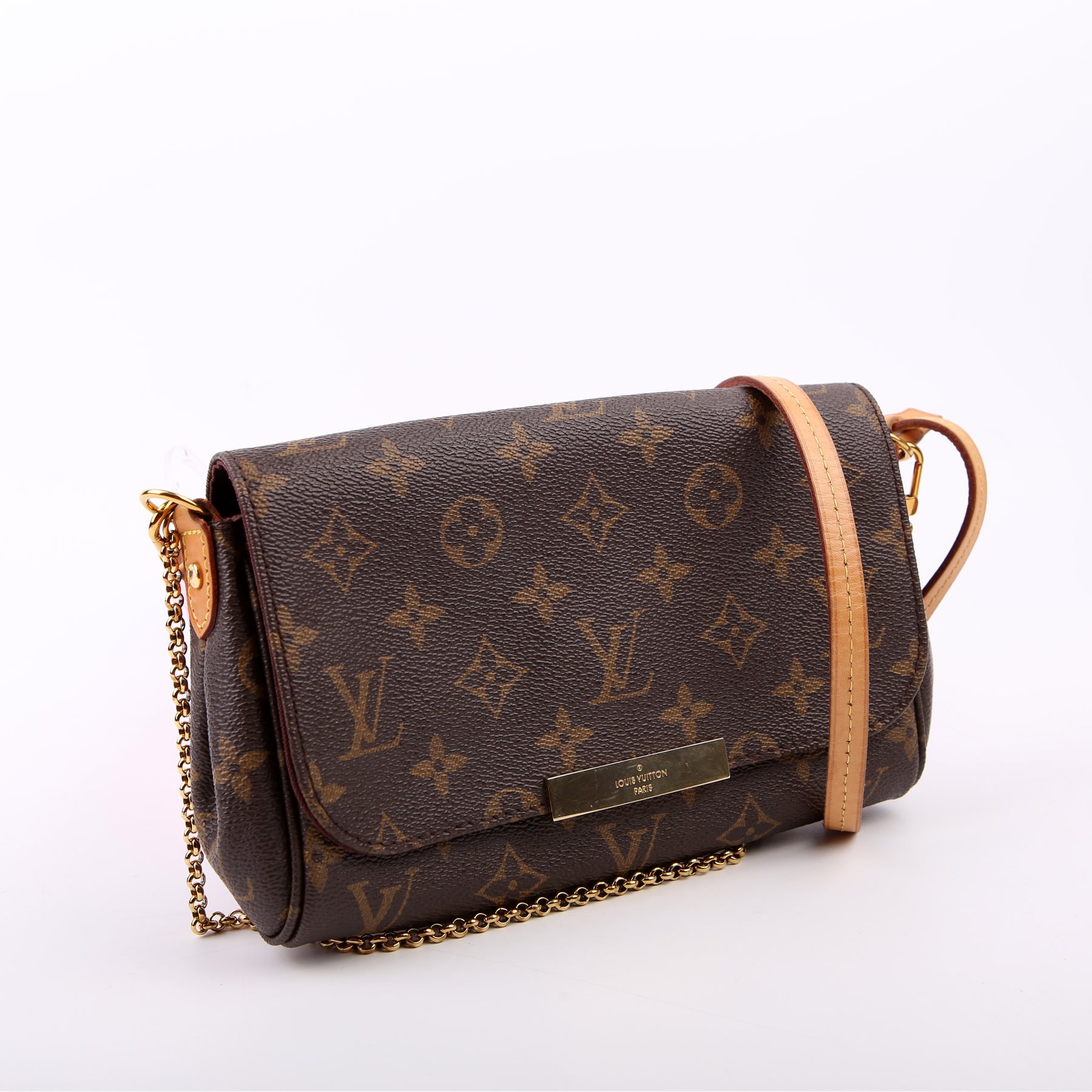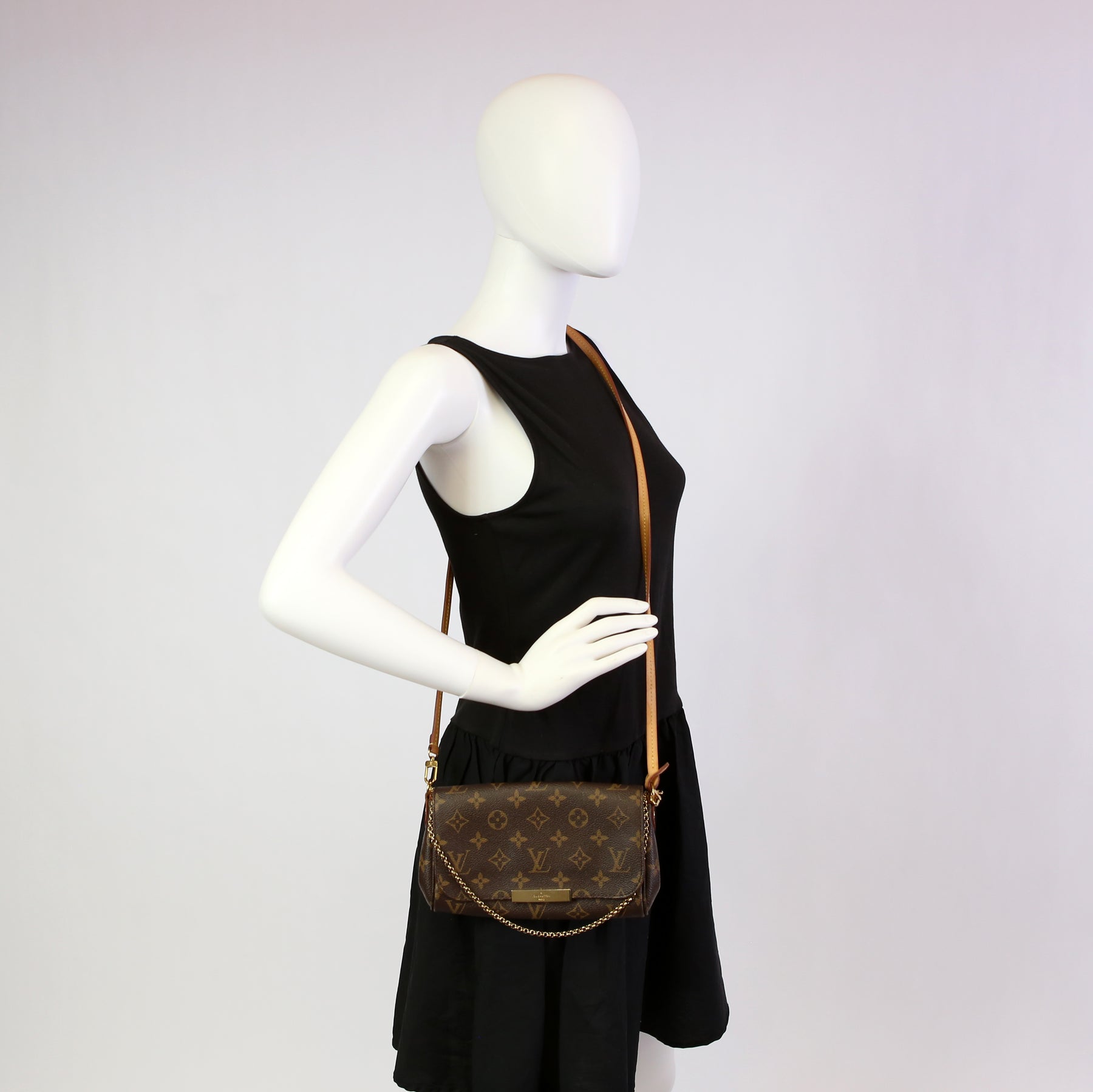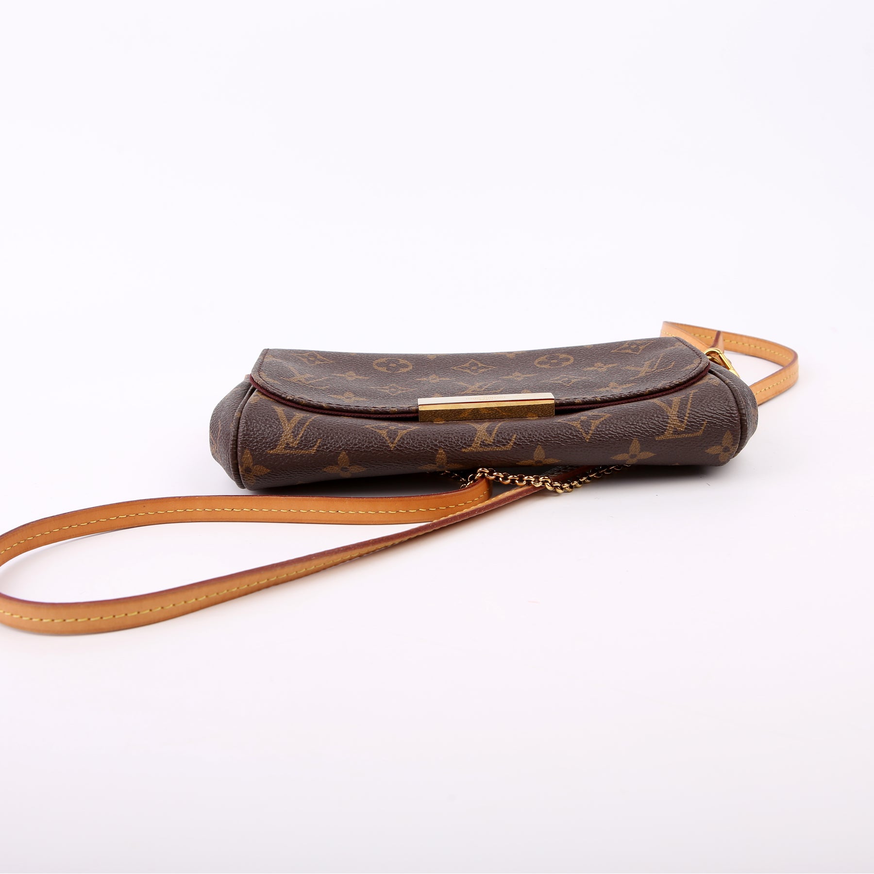 This pre-owned Louis Vuitton Favorite PM is guaranteed 100% authentic. The exterior is in the classic Louis Vuitton Monogram coated canvas.