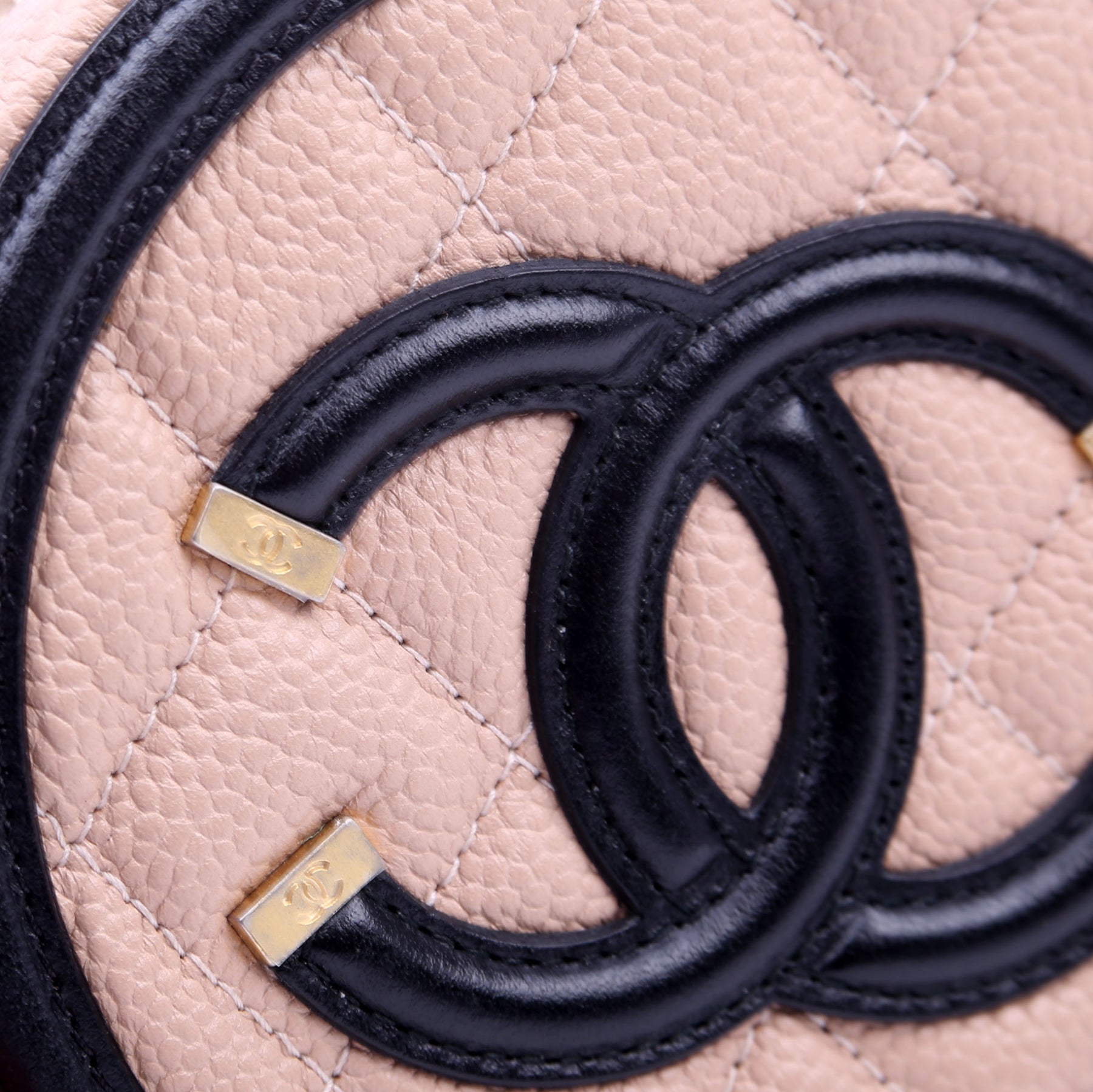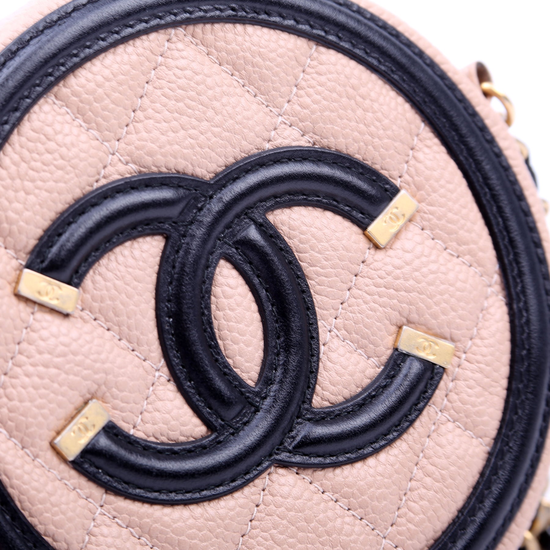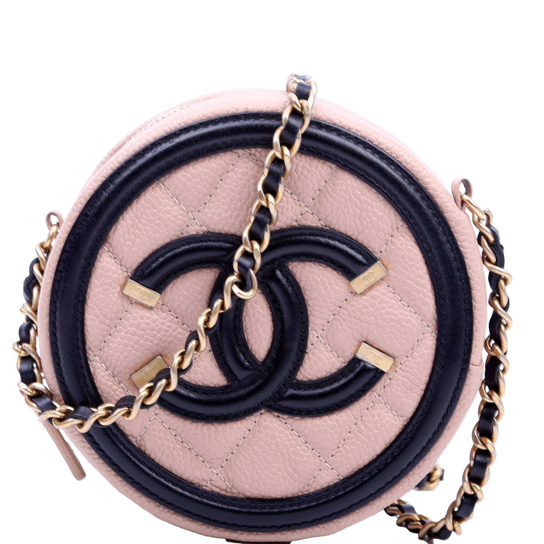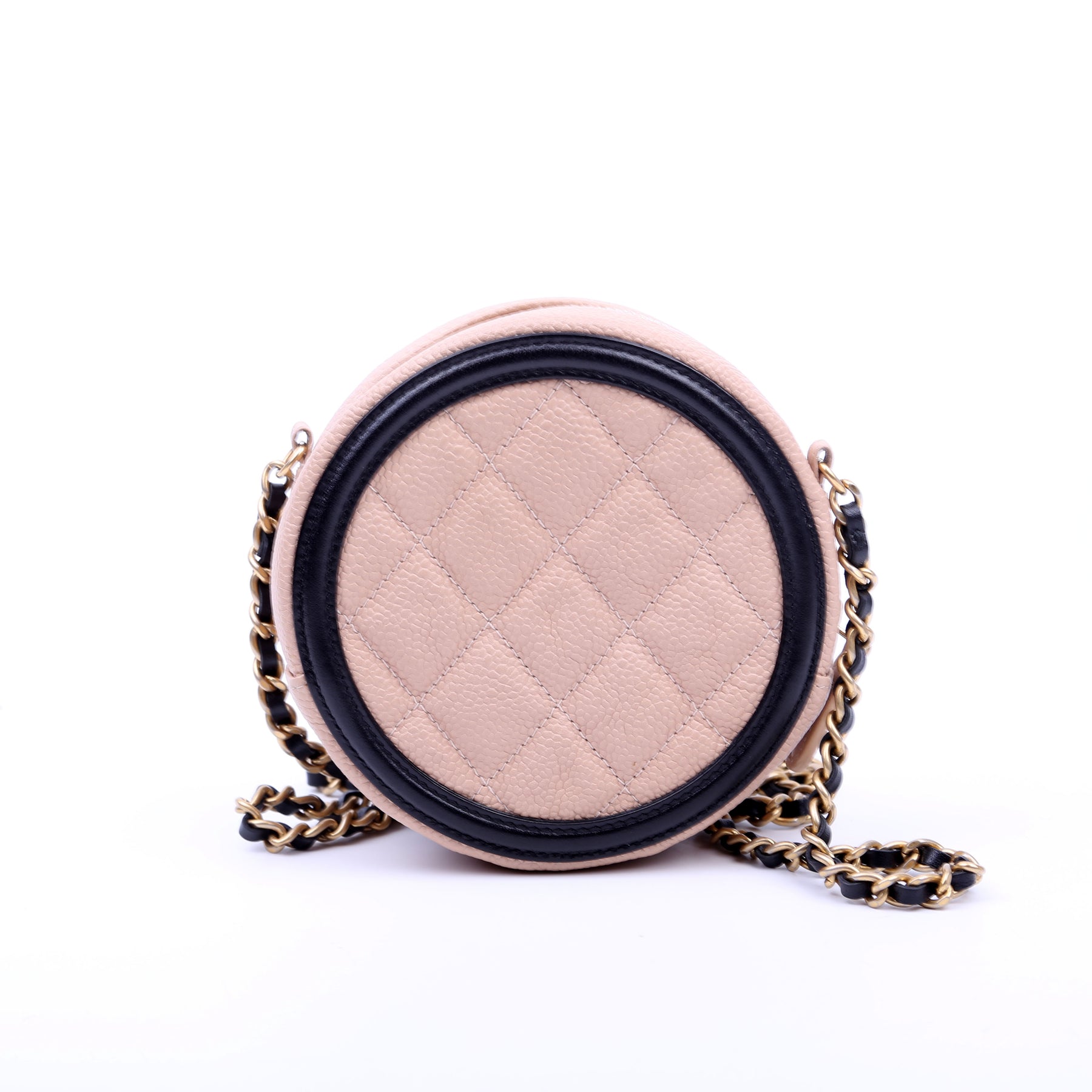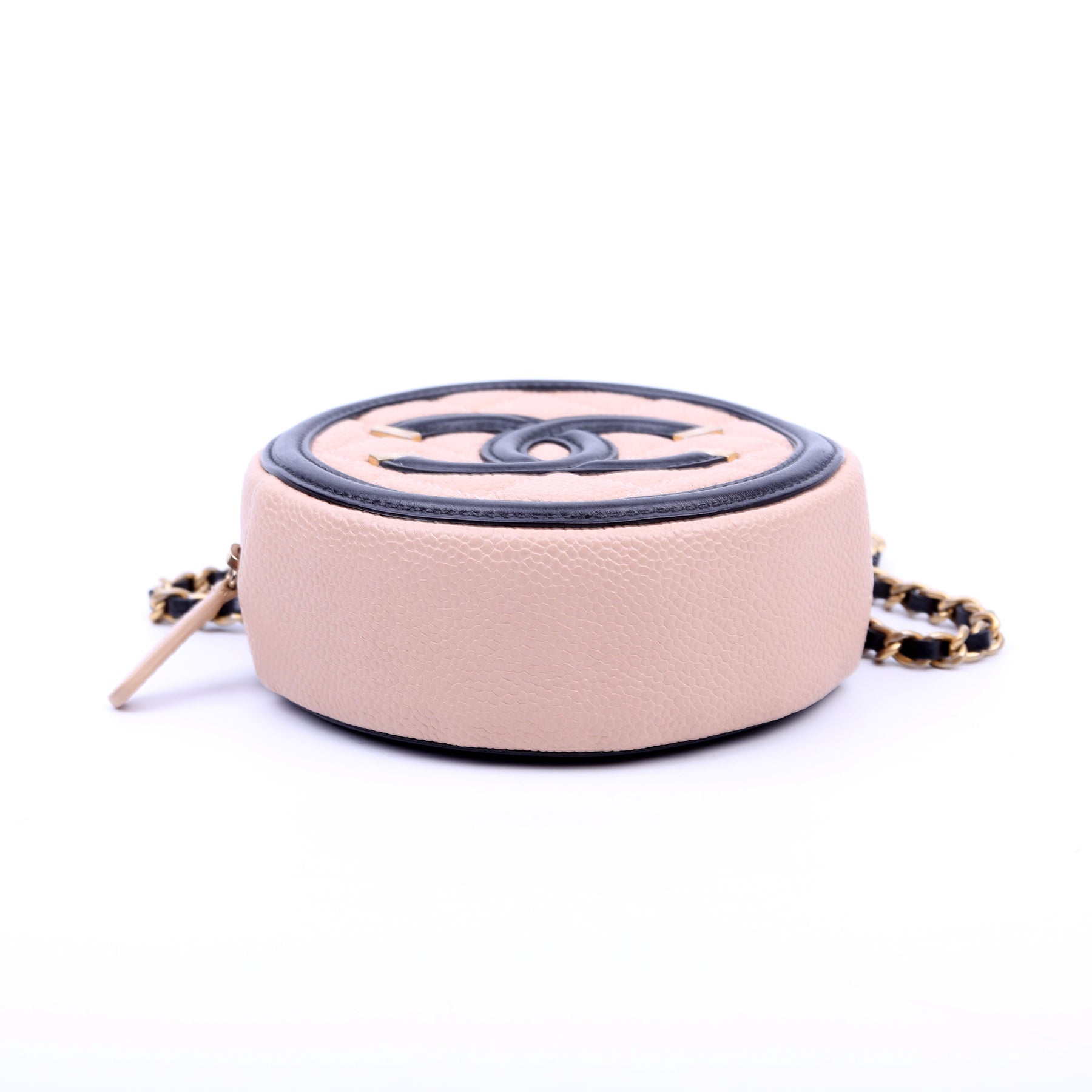 Filigree Round Crossbody Caviar 26M Nude/Black