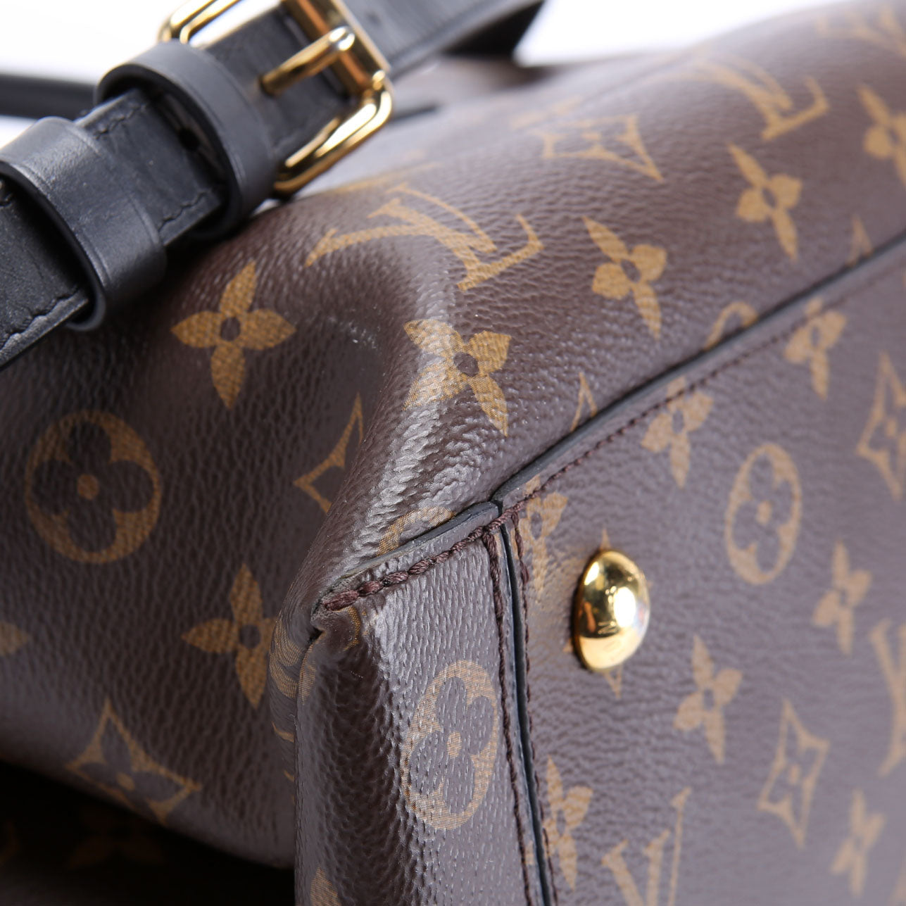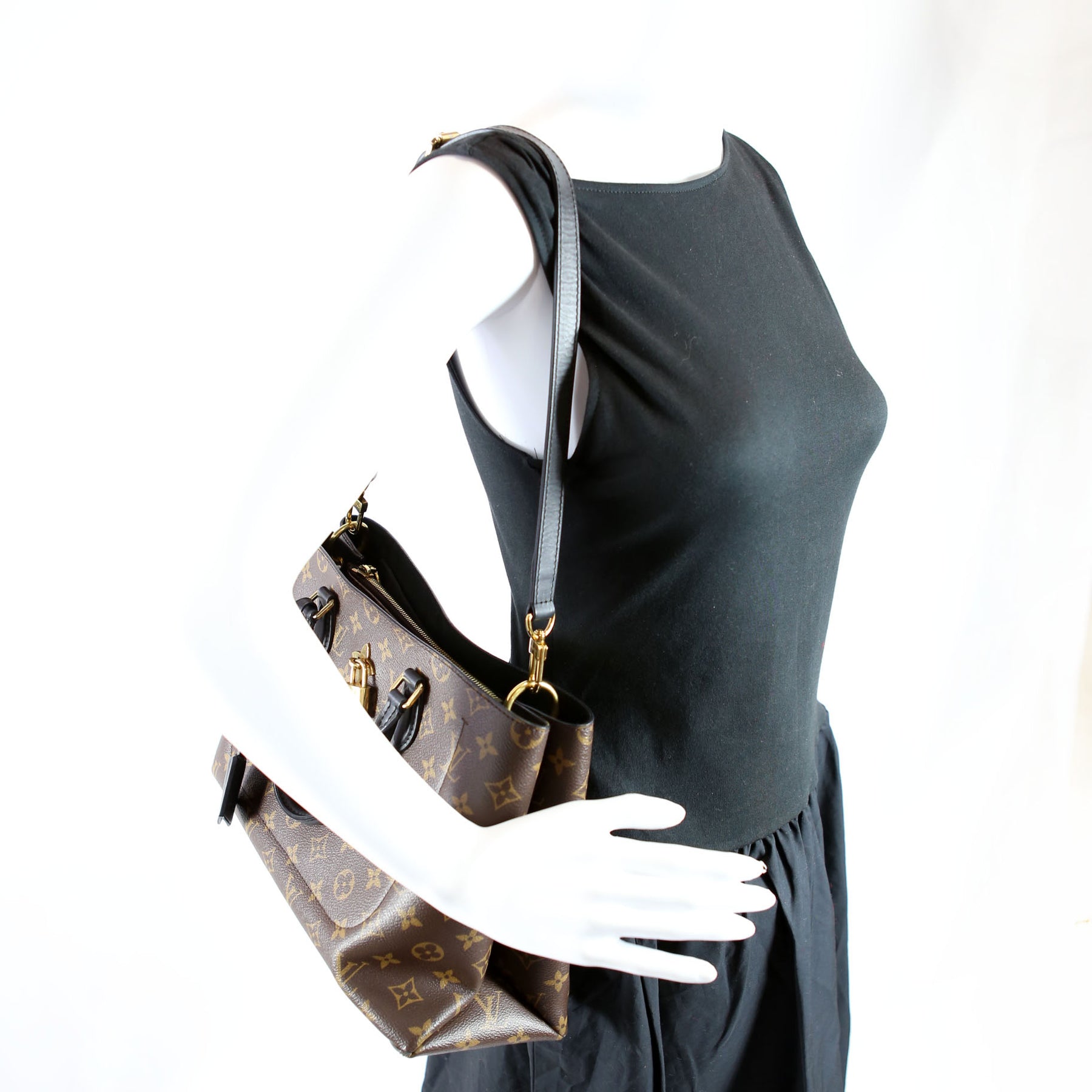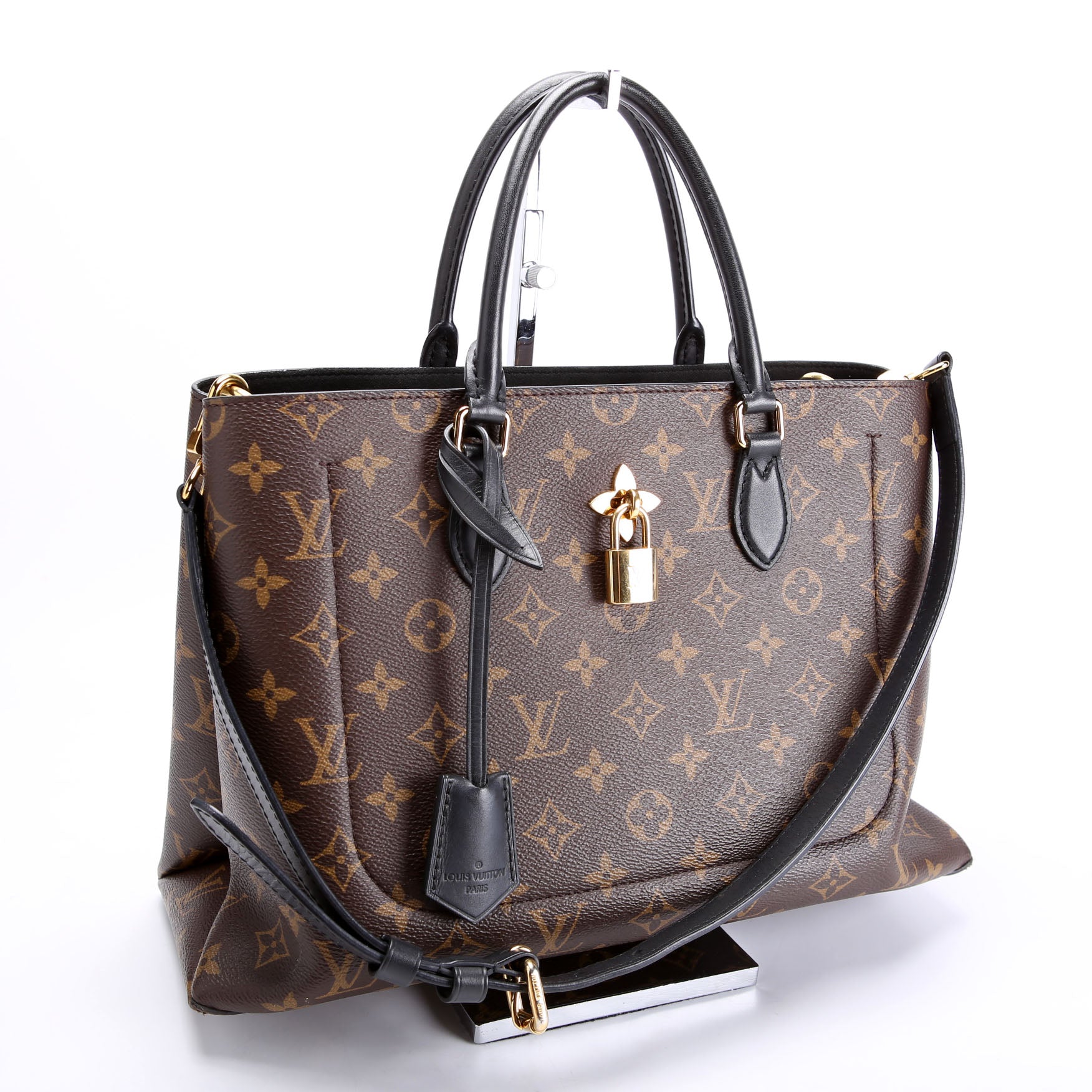 This pre-owned Louis Vuitton Flower Tote is guaranteed 100% authentic. The exterior is in the classic Louis Vuitton Monogram coated canvas.
