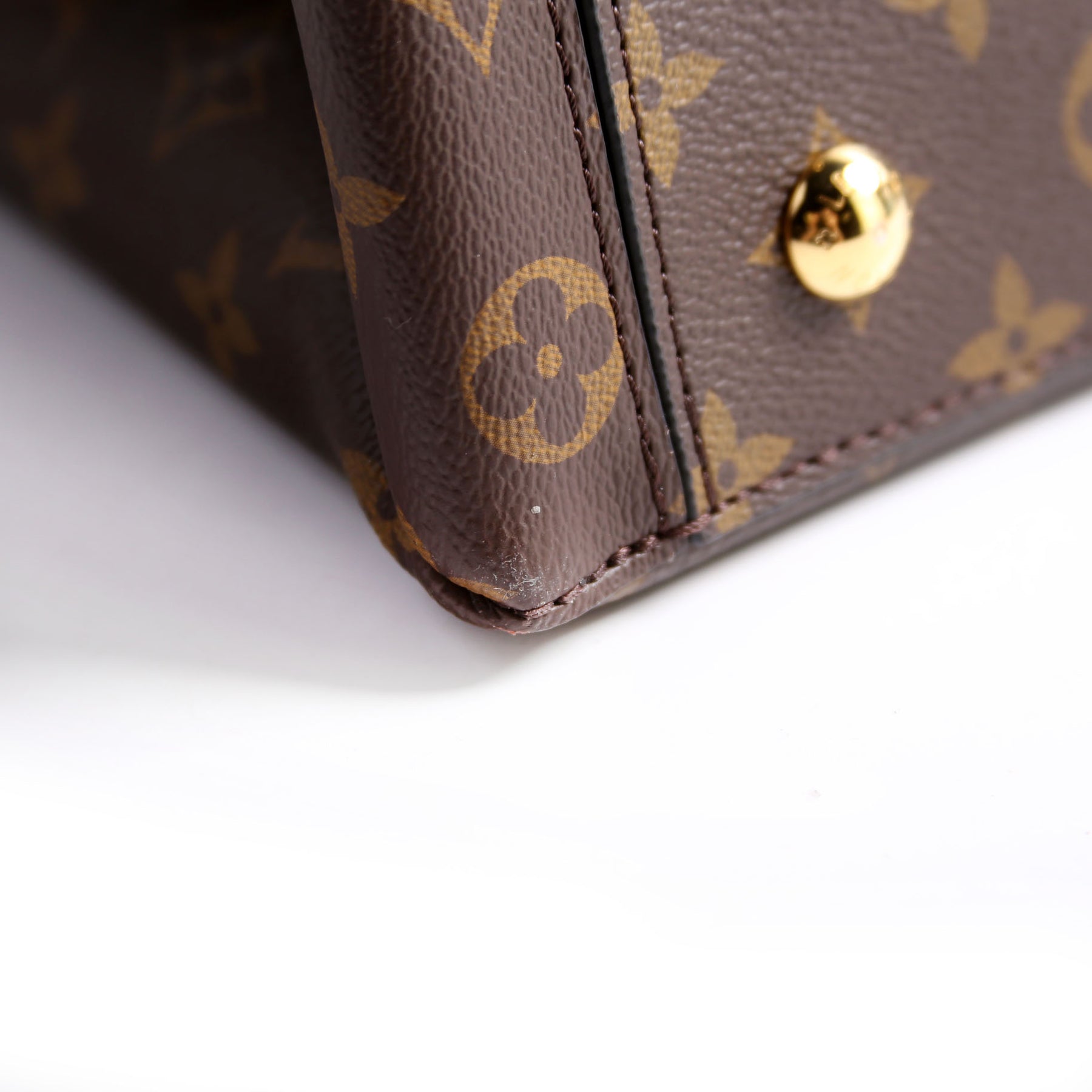This pre-owned Louis Vuitton Flower Tote is guaranteed 100% authentic. The exterior is in the classic Louis Vuitton Monogram coated canvas.