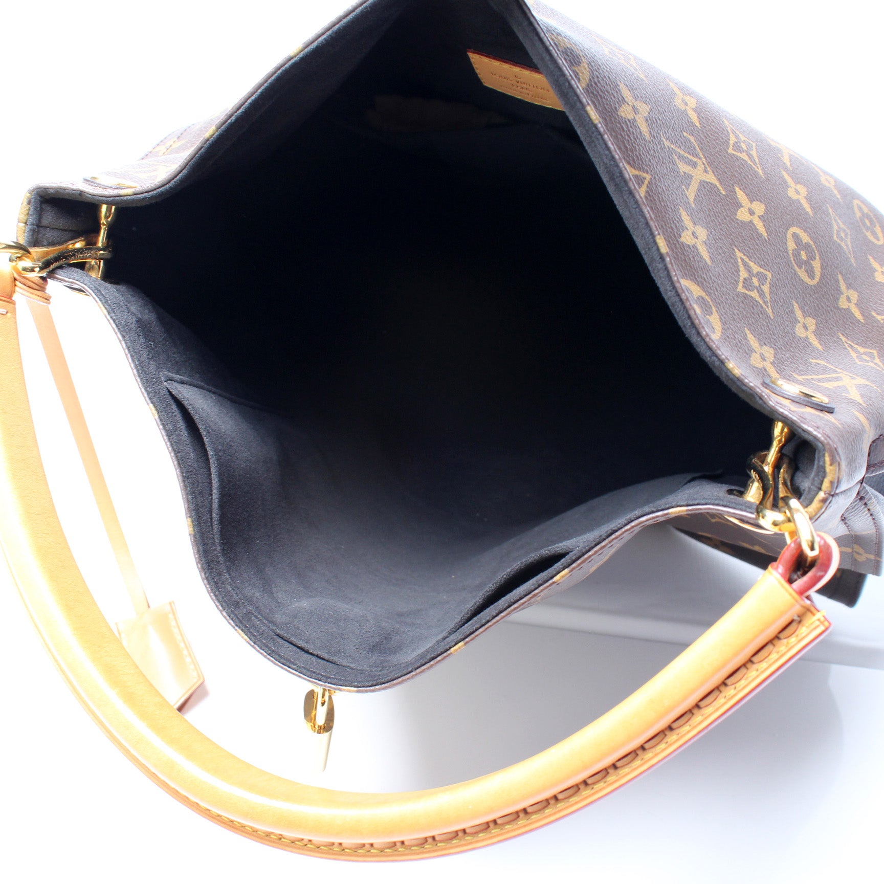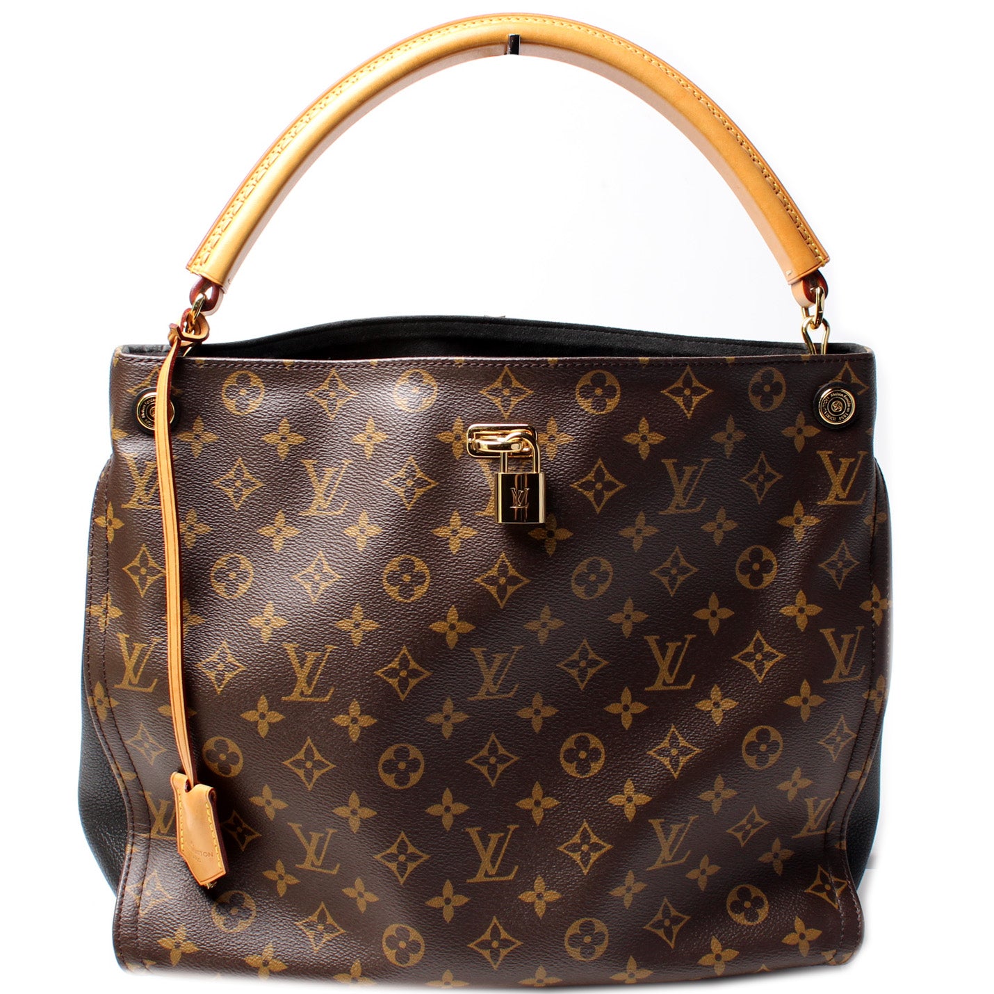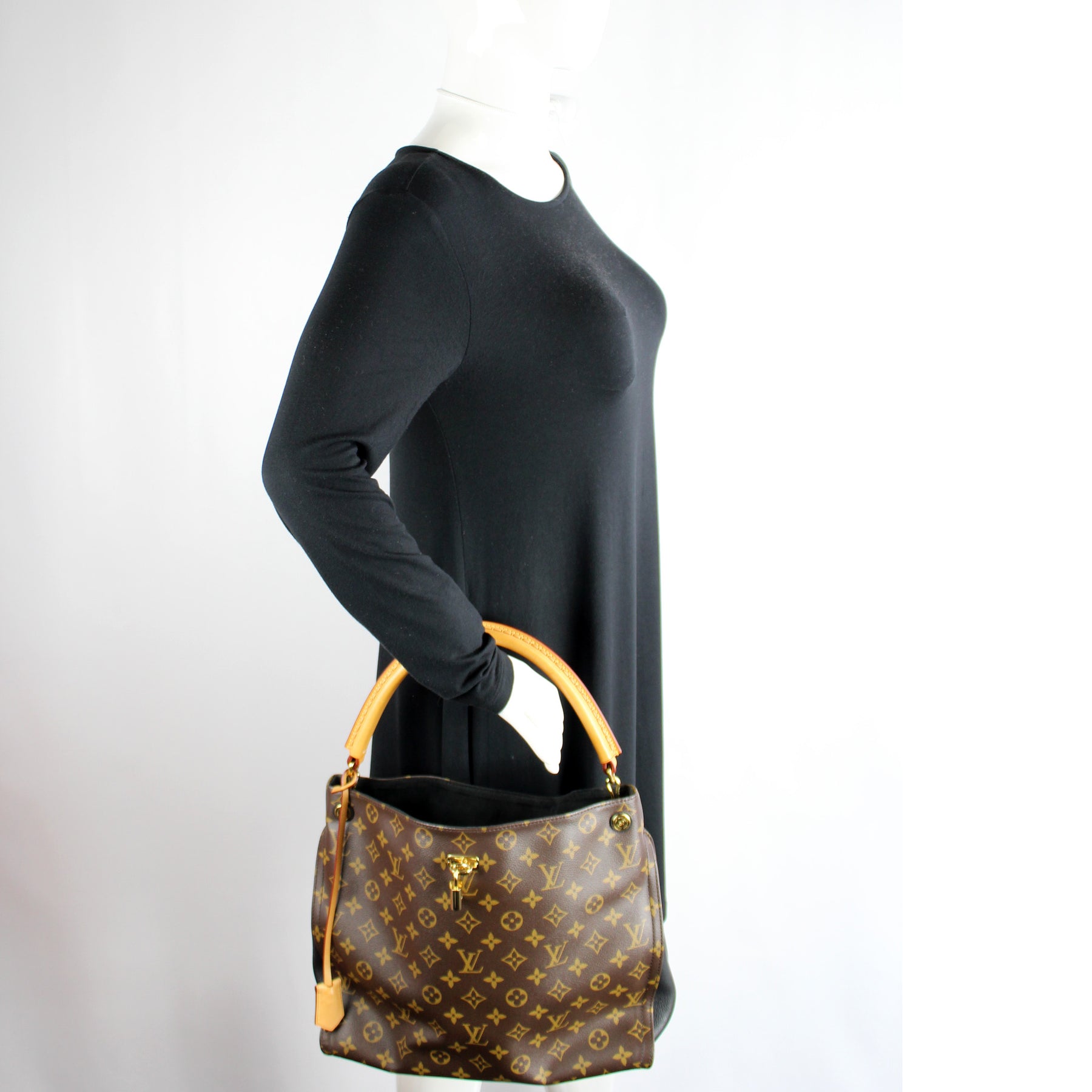 This pre-owned Louis Vuitton Gaia is guaranteed 100% authentic. The exterior is in the classic Louis Vuitton Monogram coated canvas.