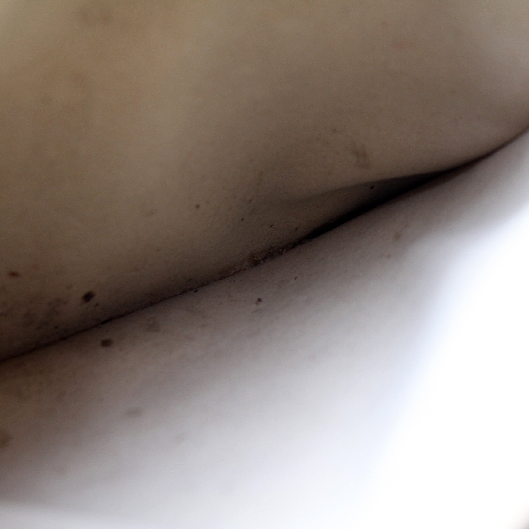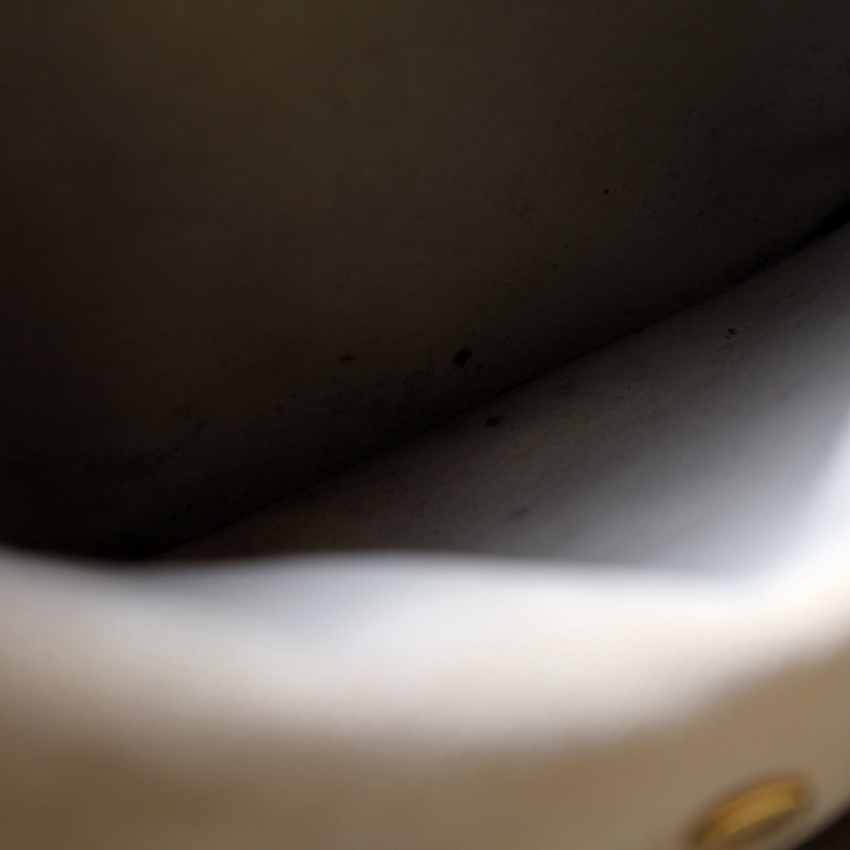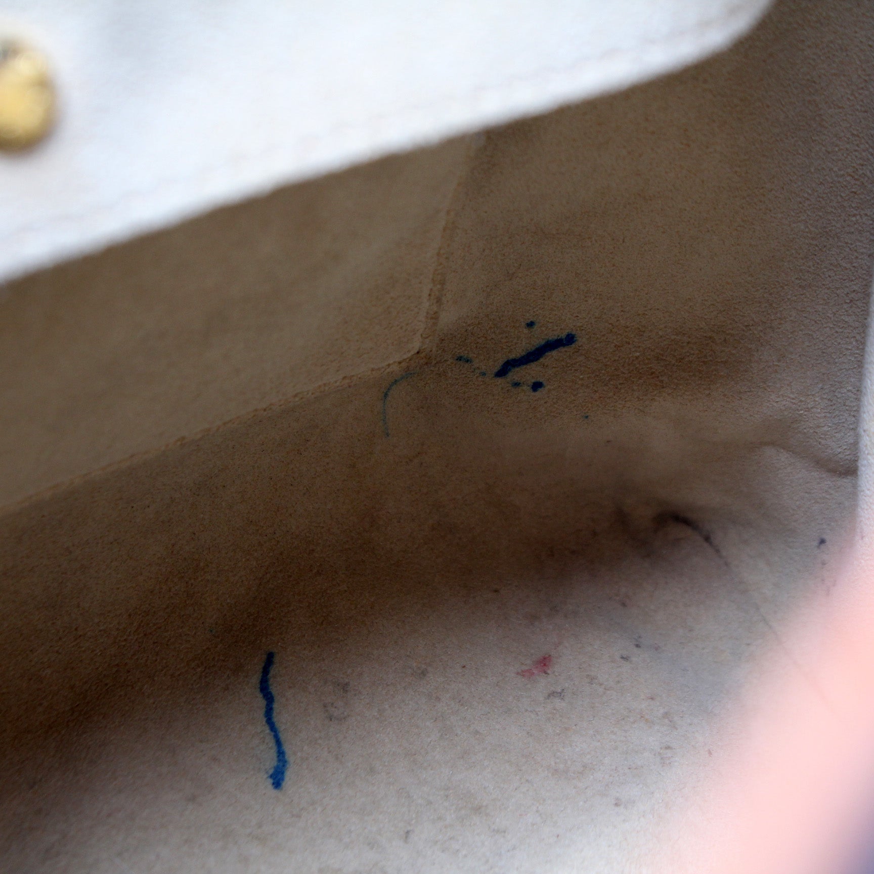 Interior: The interior is free of rips or tears. The interior features two open pockets and one snap closure pocket. There is discoloration throughout the interior.
