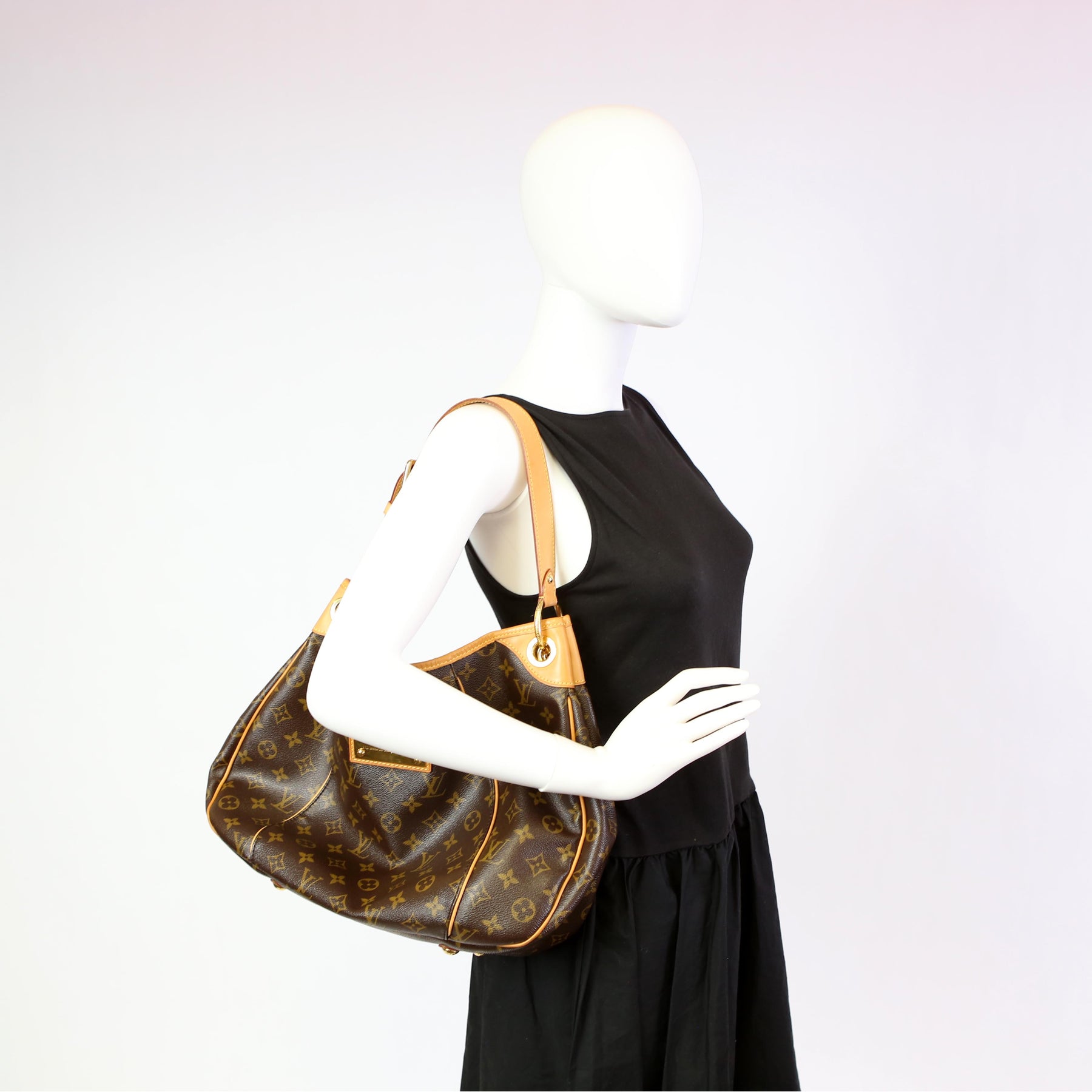 This pre-owned Louis Vuitton Galliera PM is guaranteed 100% authentic. The exterior is in the classic Louis Vuitton Monogram coated canvas.