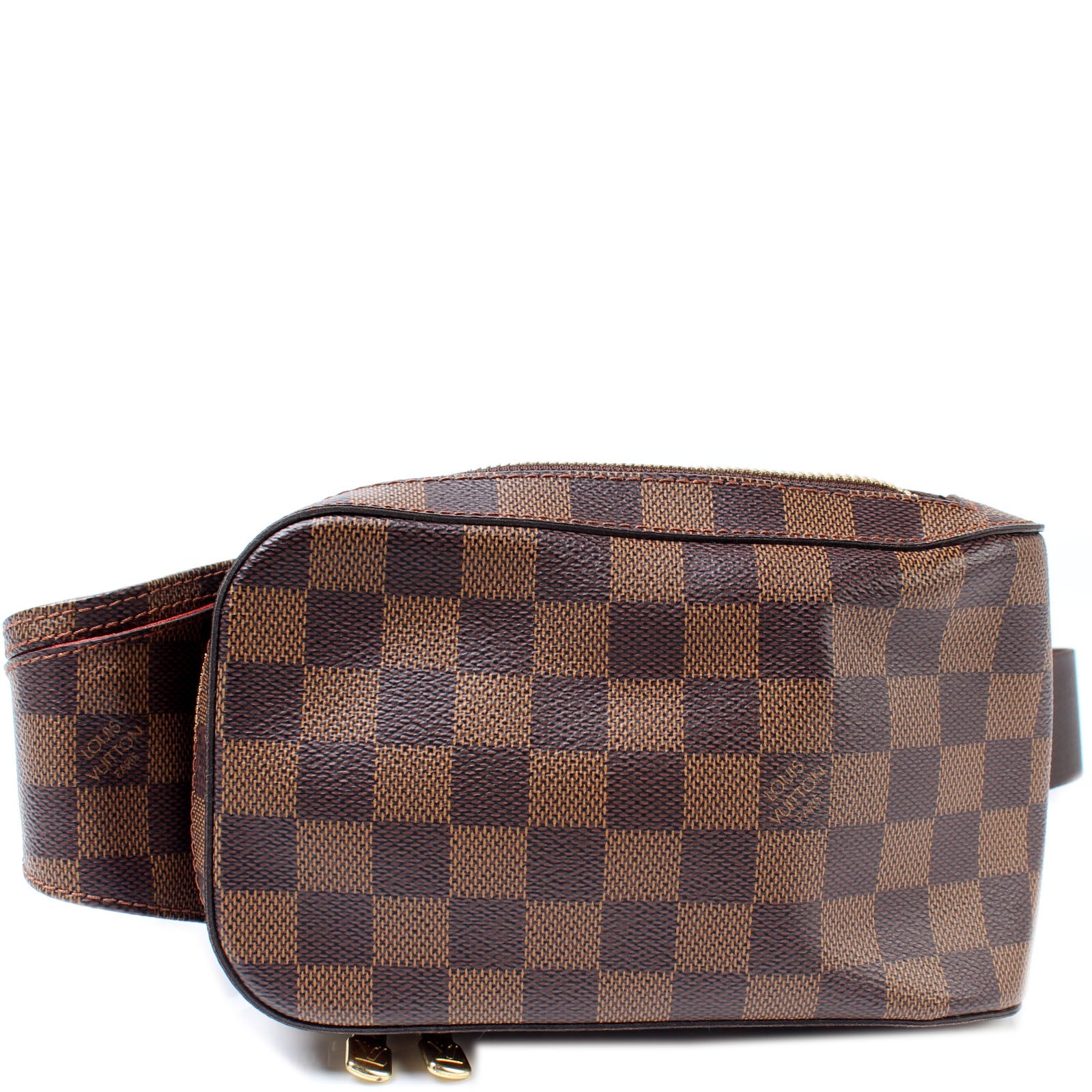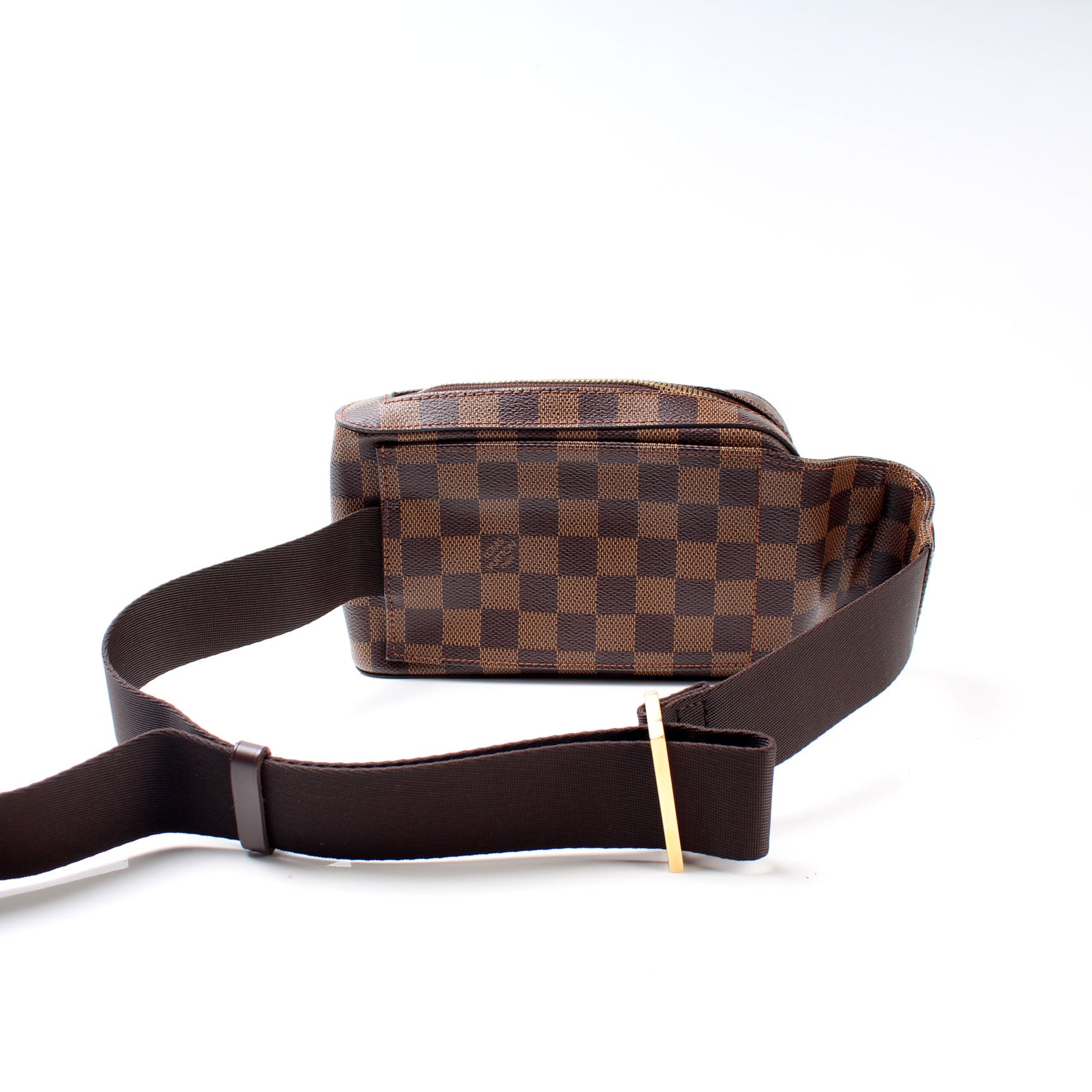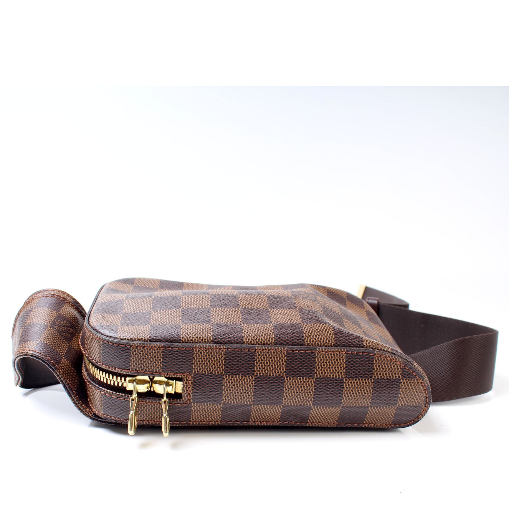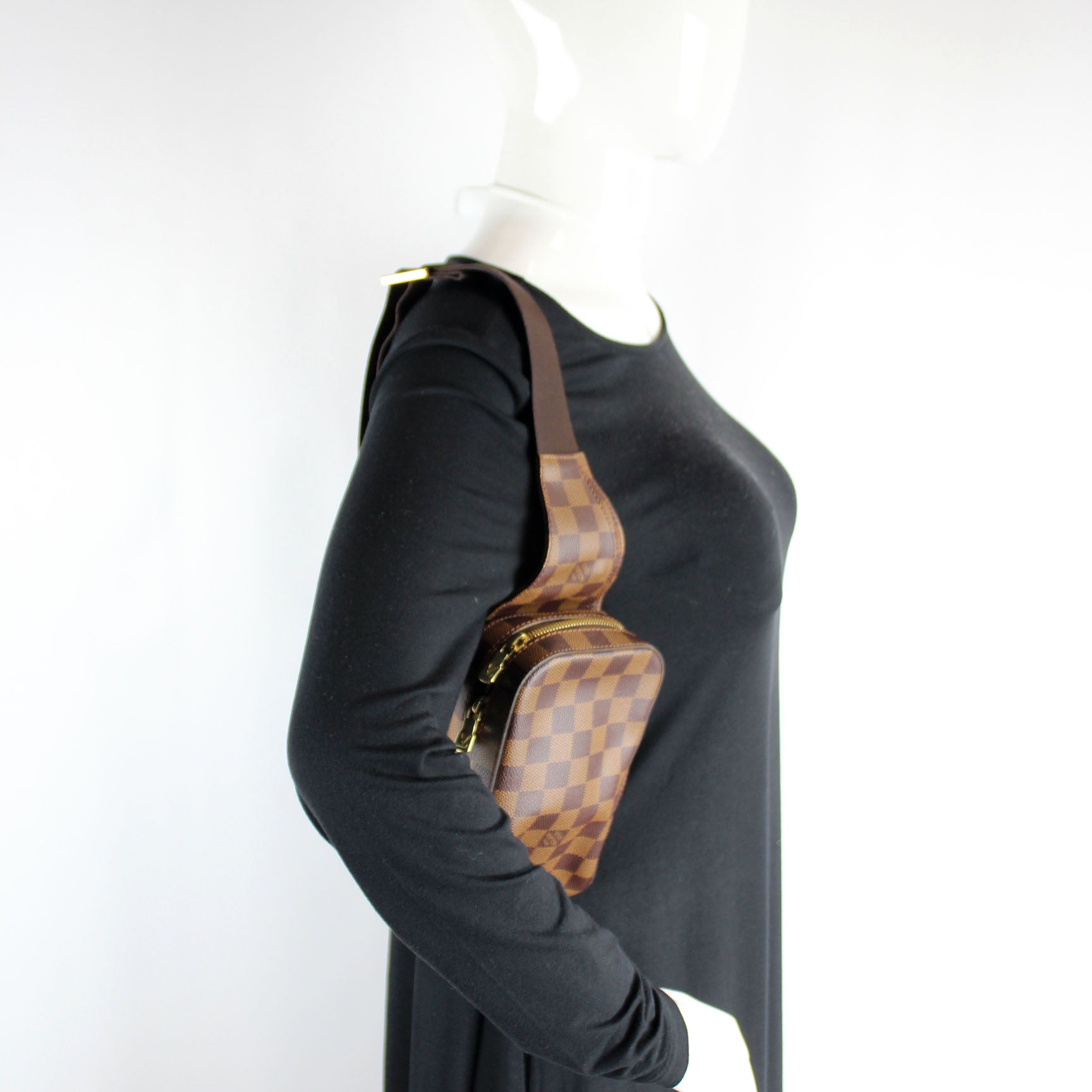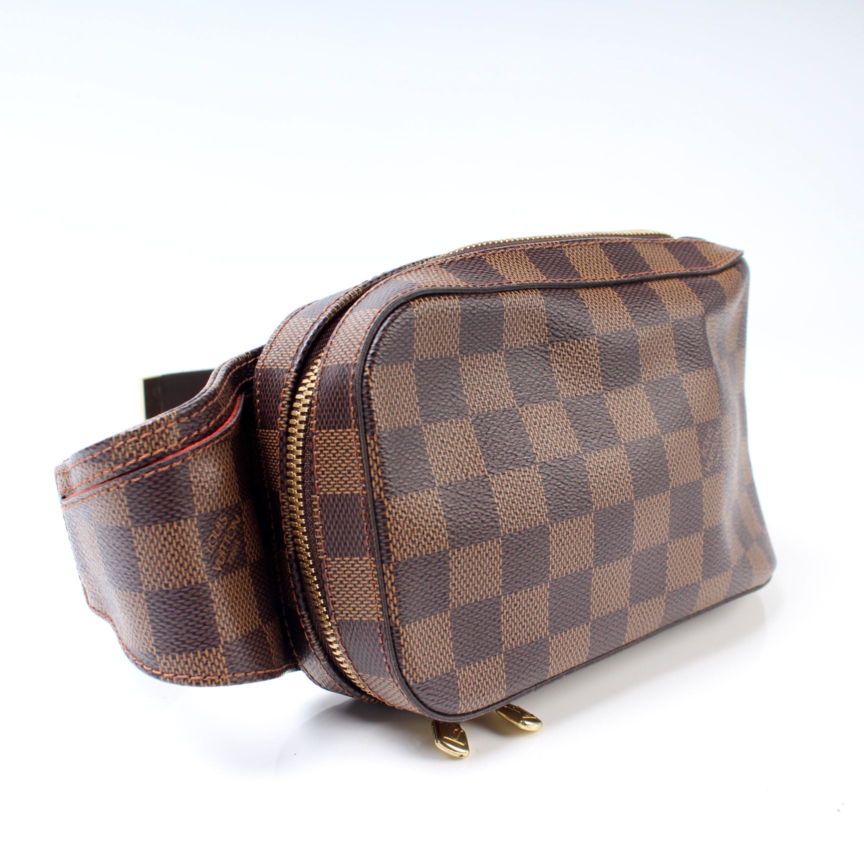 This pre-owned Louis Vuitton Geronimos is guaranteed 100% authentic. The exterior is in the classic Louis Vuitton Damier Ebene coated canvas.
