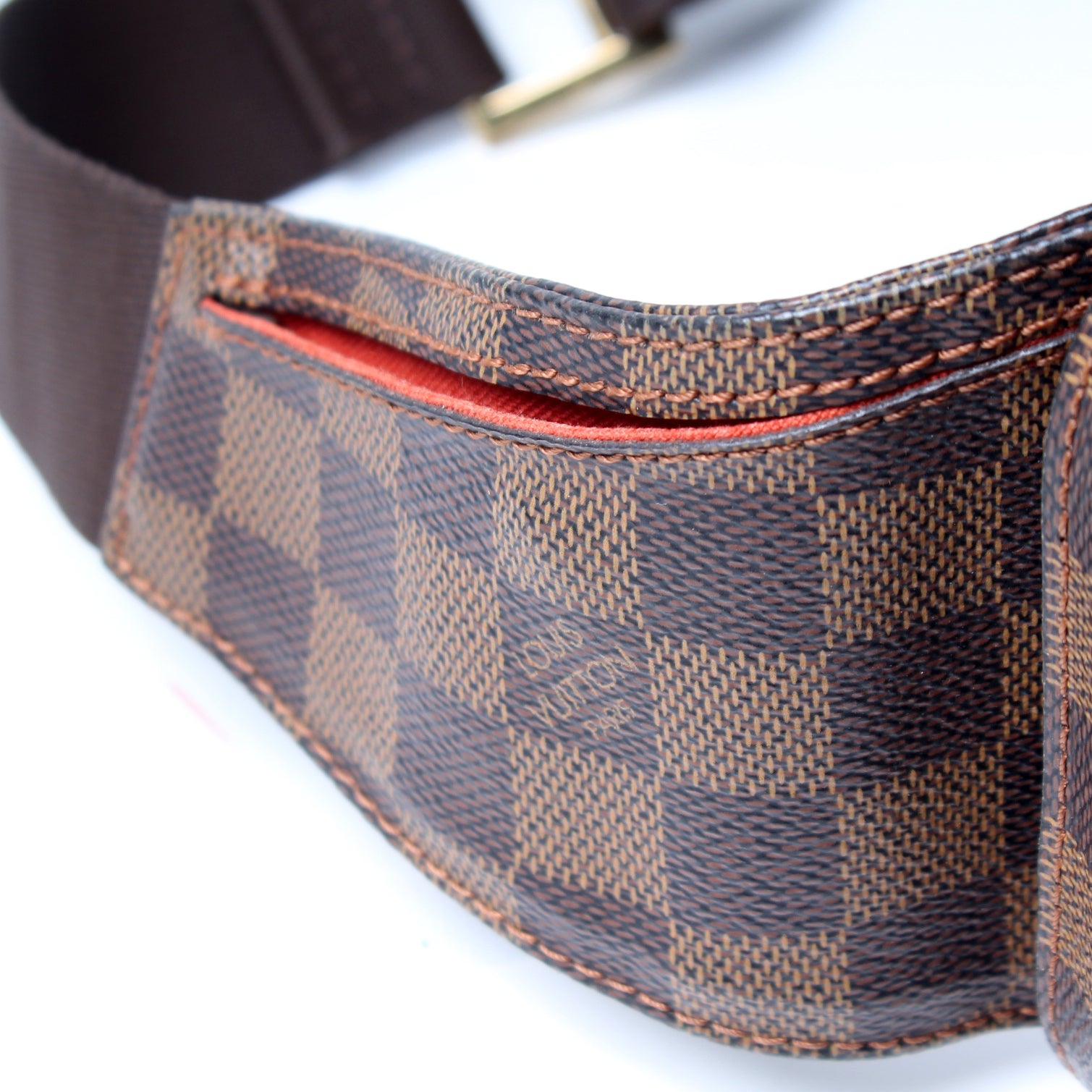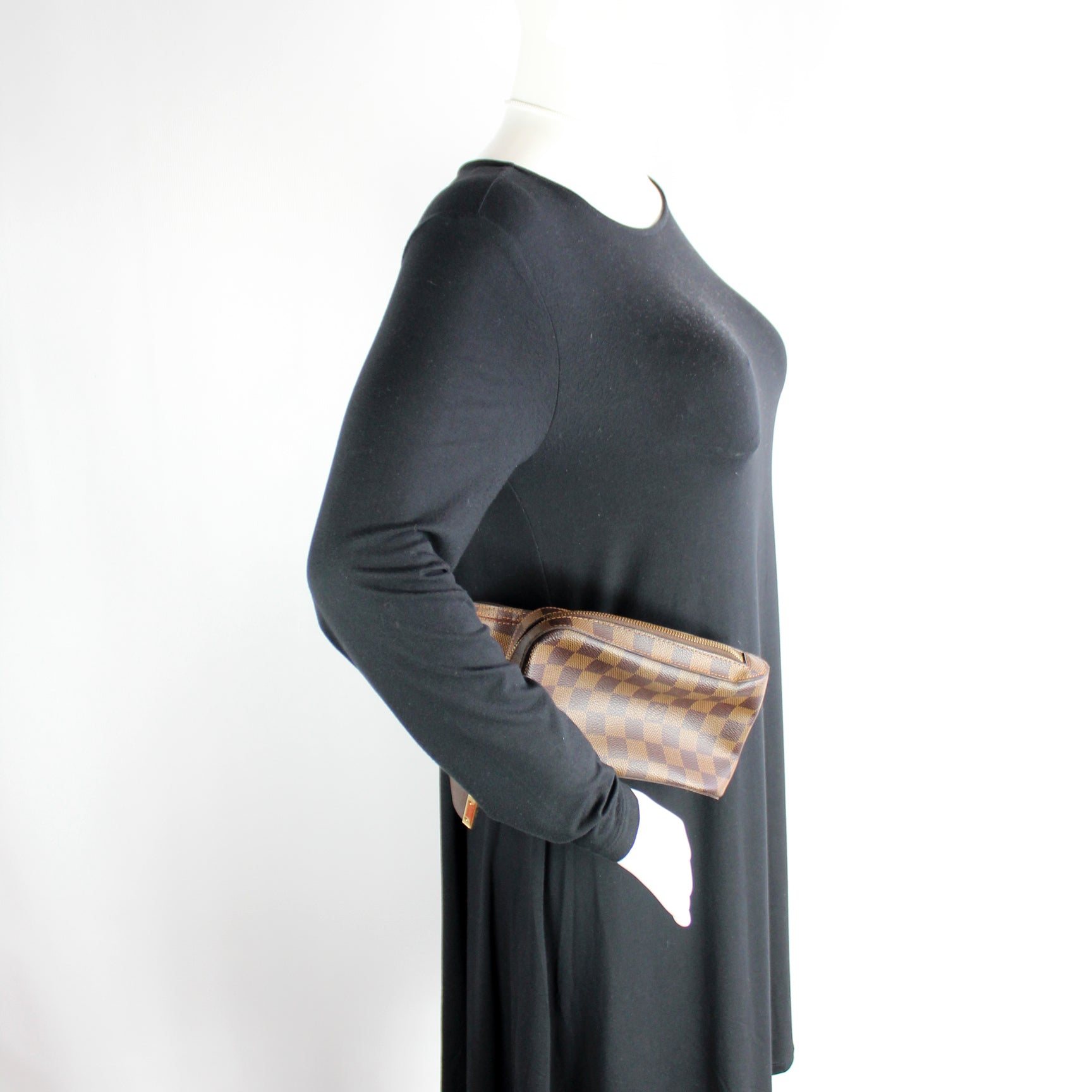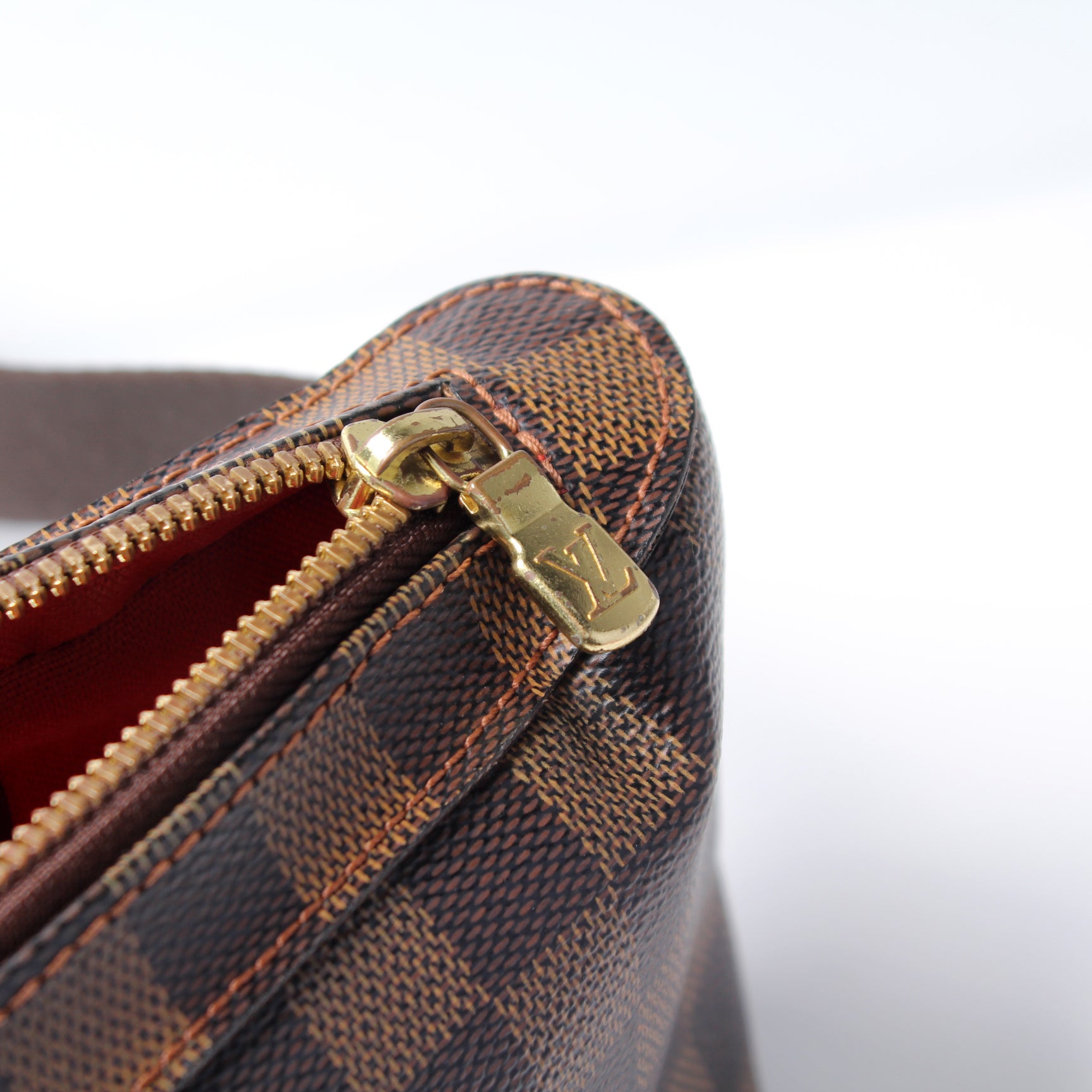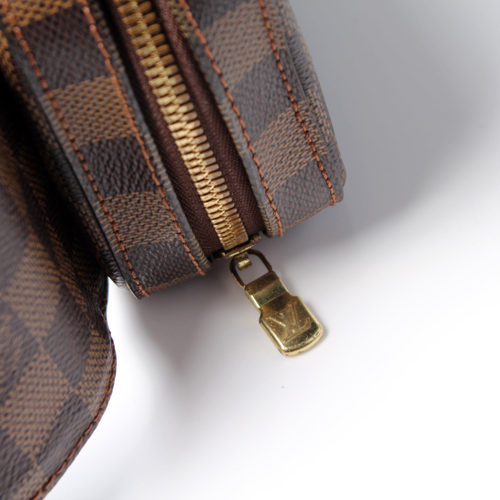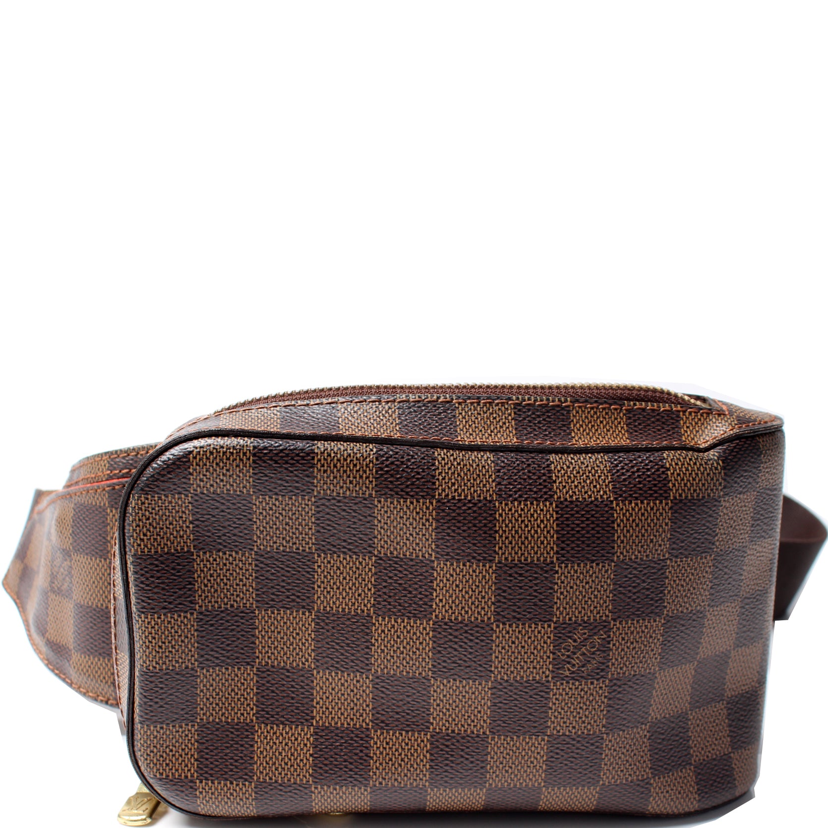 This pre-owned Louis Vuitton Geronimos is guaranteed 100% authentic. The exterior is in the classic Louis Vuitton Damier Ebene coated canvas.