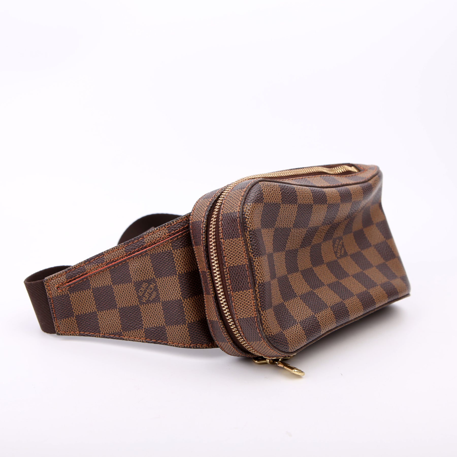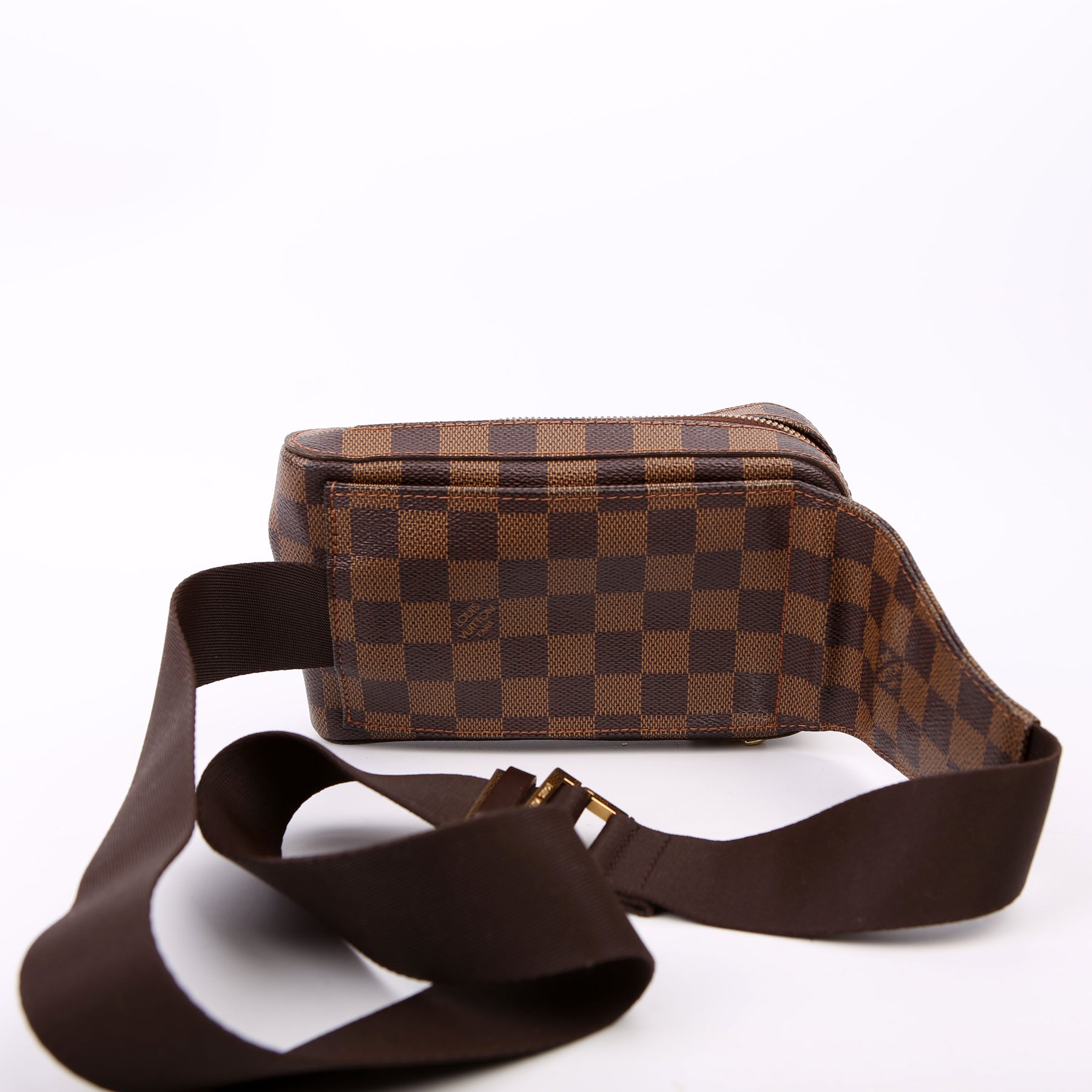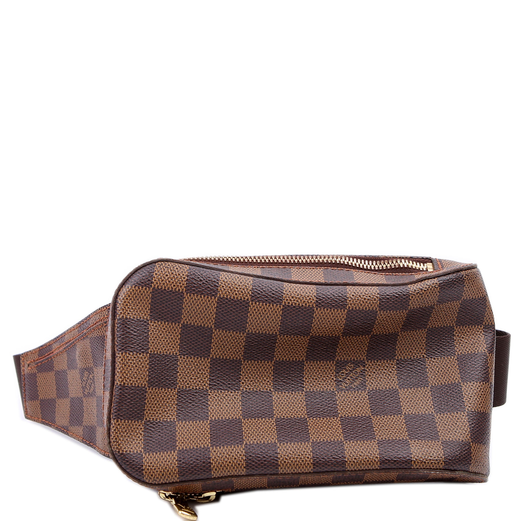 This pre-owned Louis Vuitton Geronimos is guaranteed 100% authentic. The exterior is in the classic Louis Vuitton Damier Ebene coated canvas.