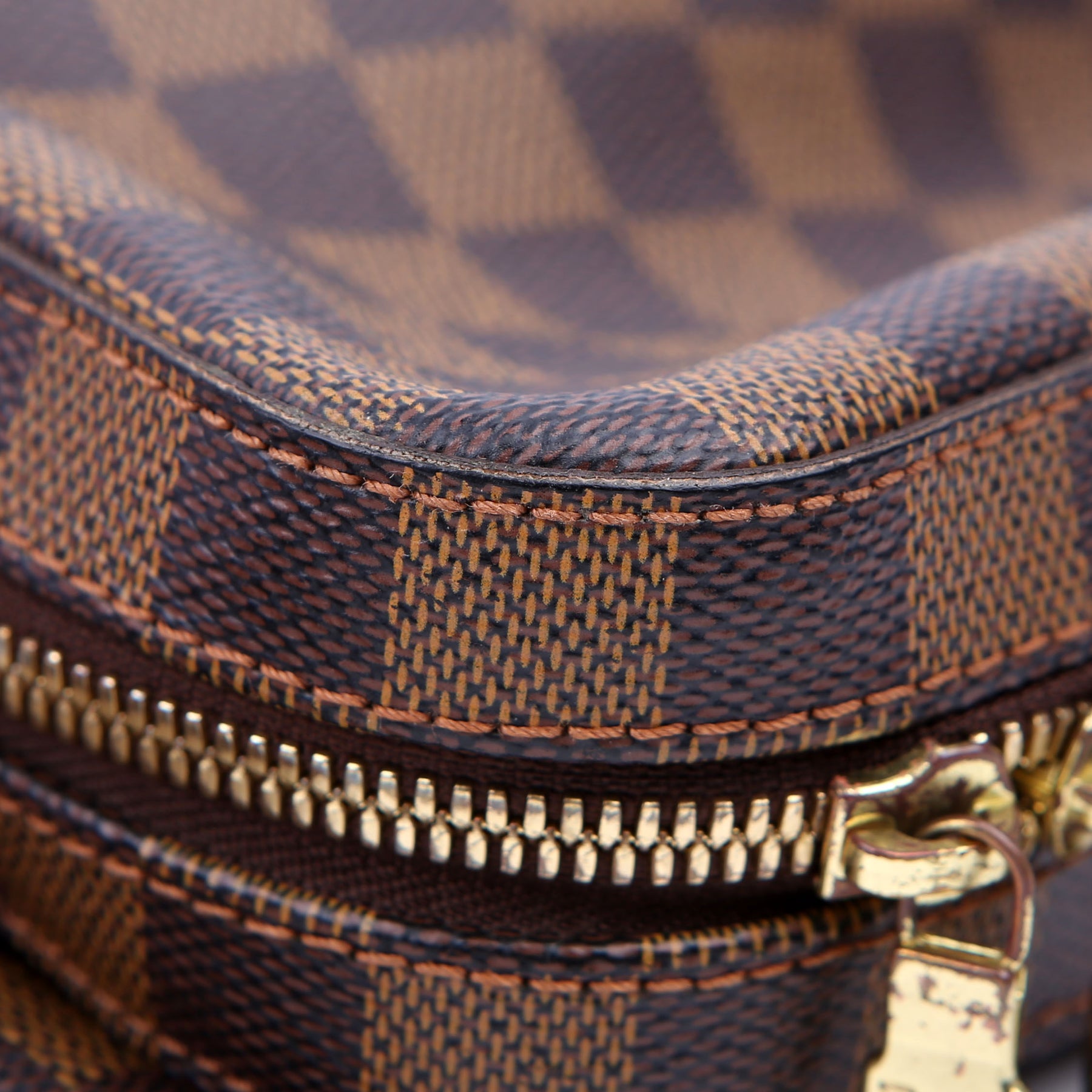 Hardware: The zipper operates properly and runs smoothly. The hardware shows minor wear and discoloration.