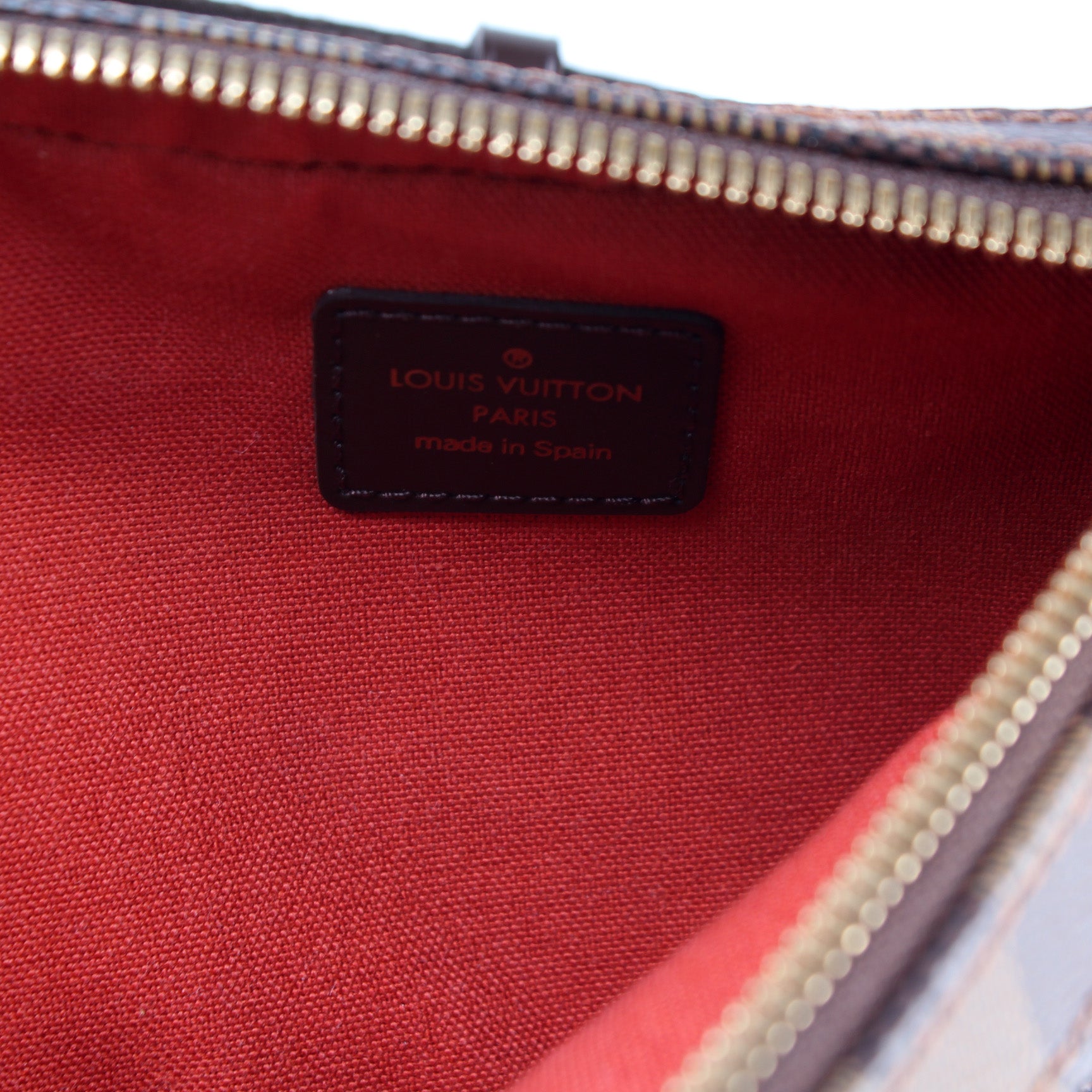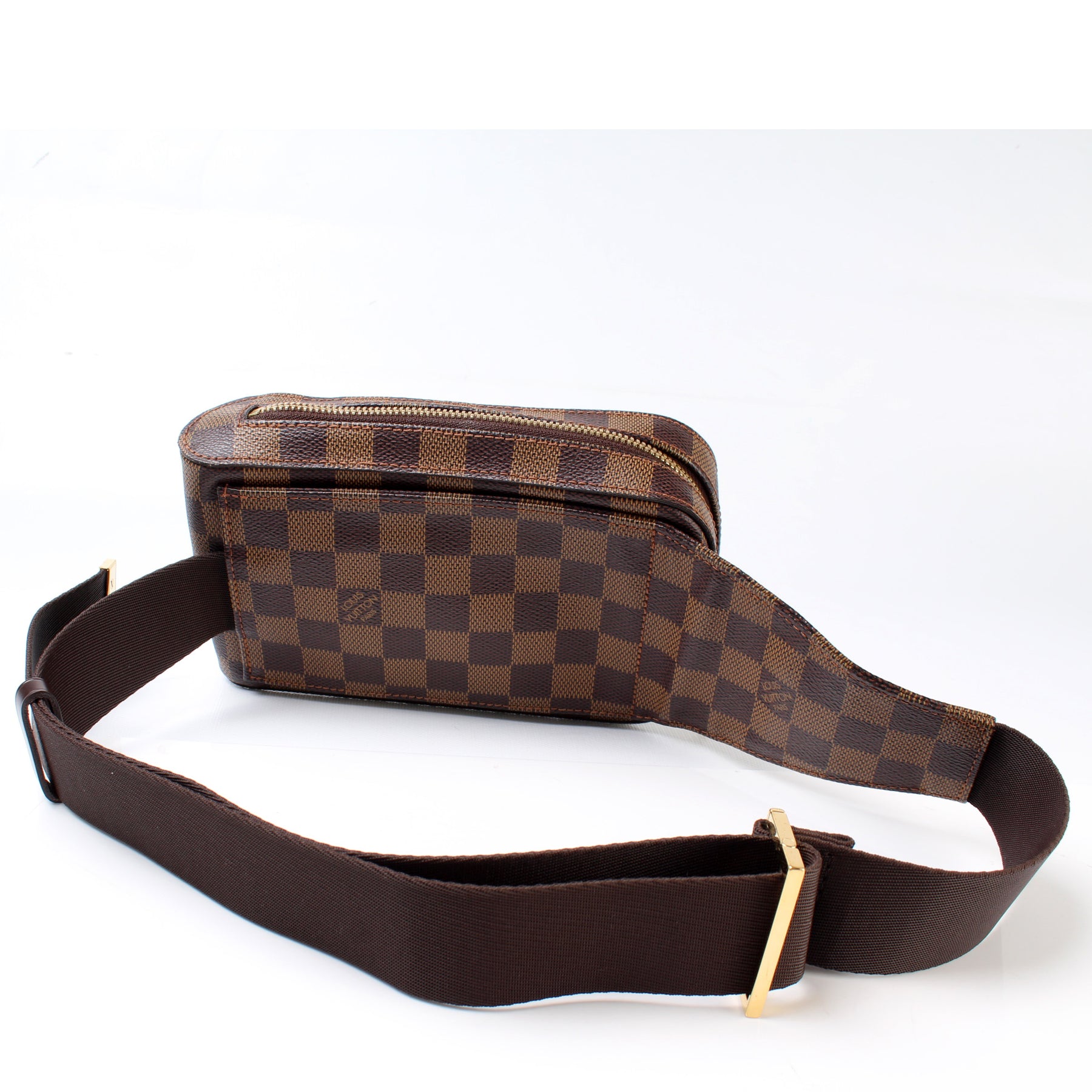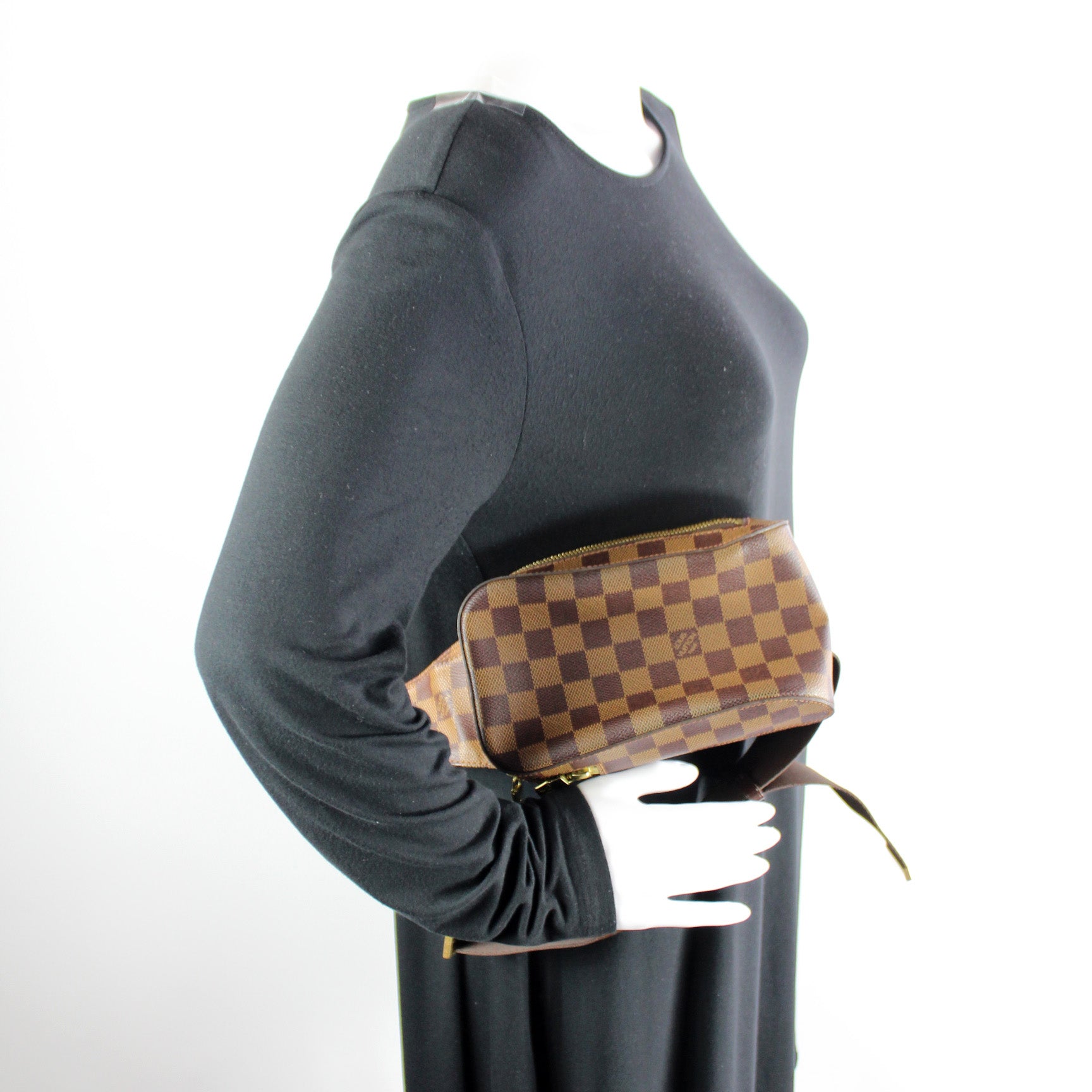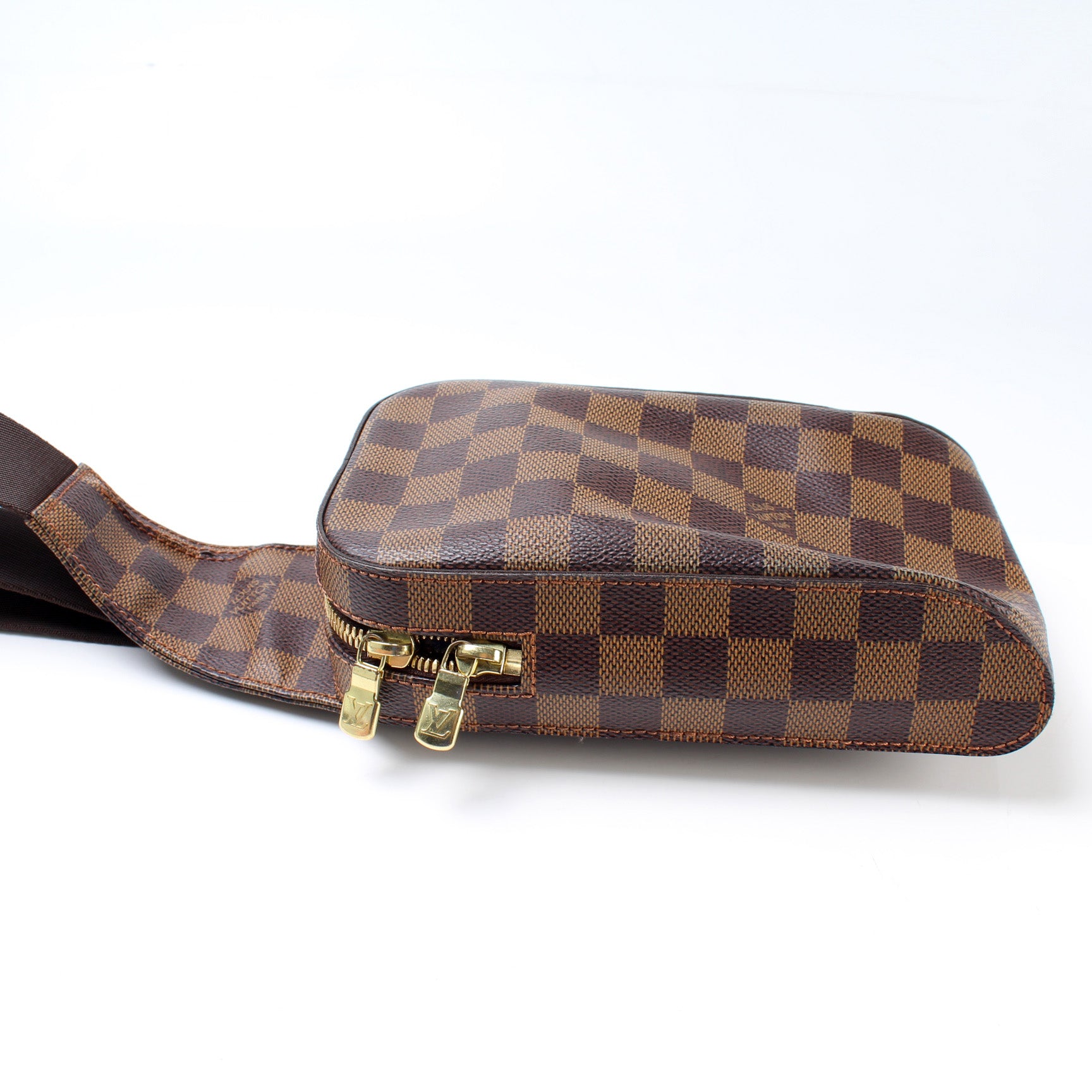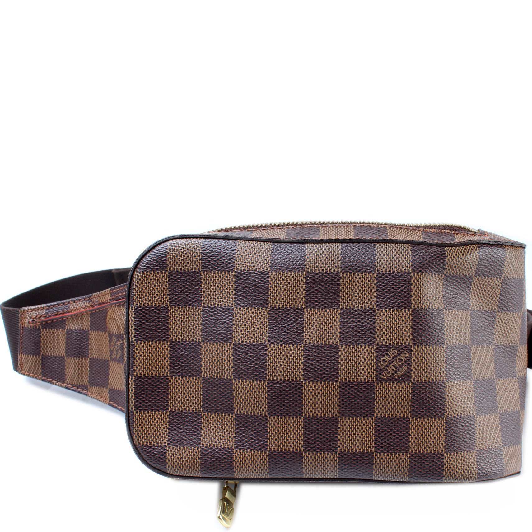 This pre-owned Louis Vuitton Geronimos is guaranteed 100% authentic. The exterior is in the classic Louis Vuitton Damier Ebene coated canvas.