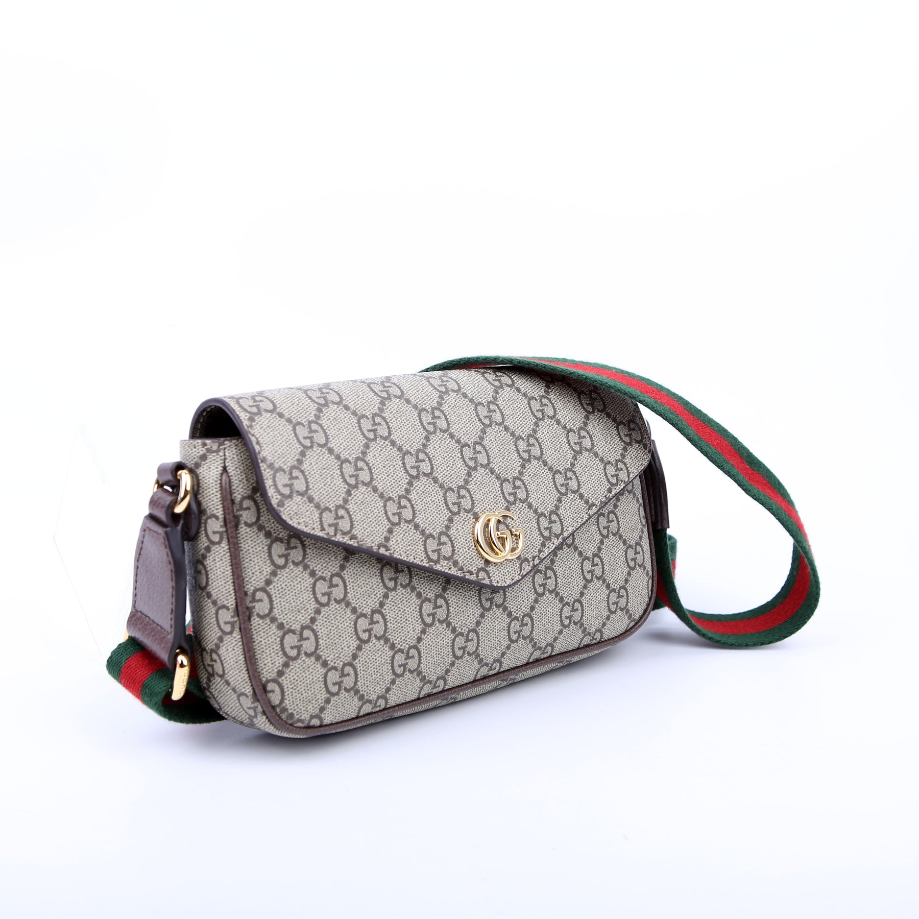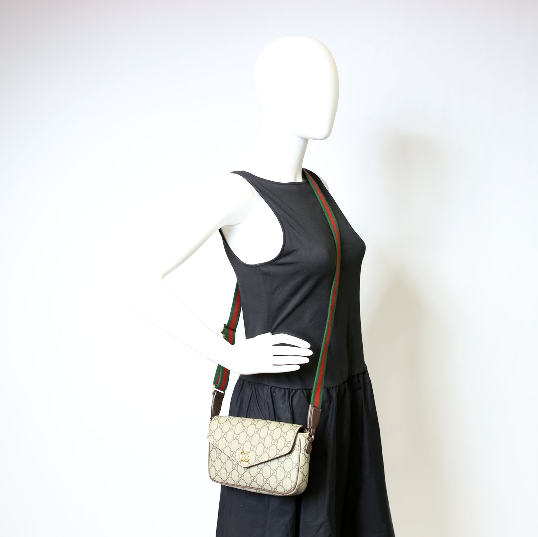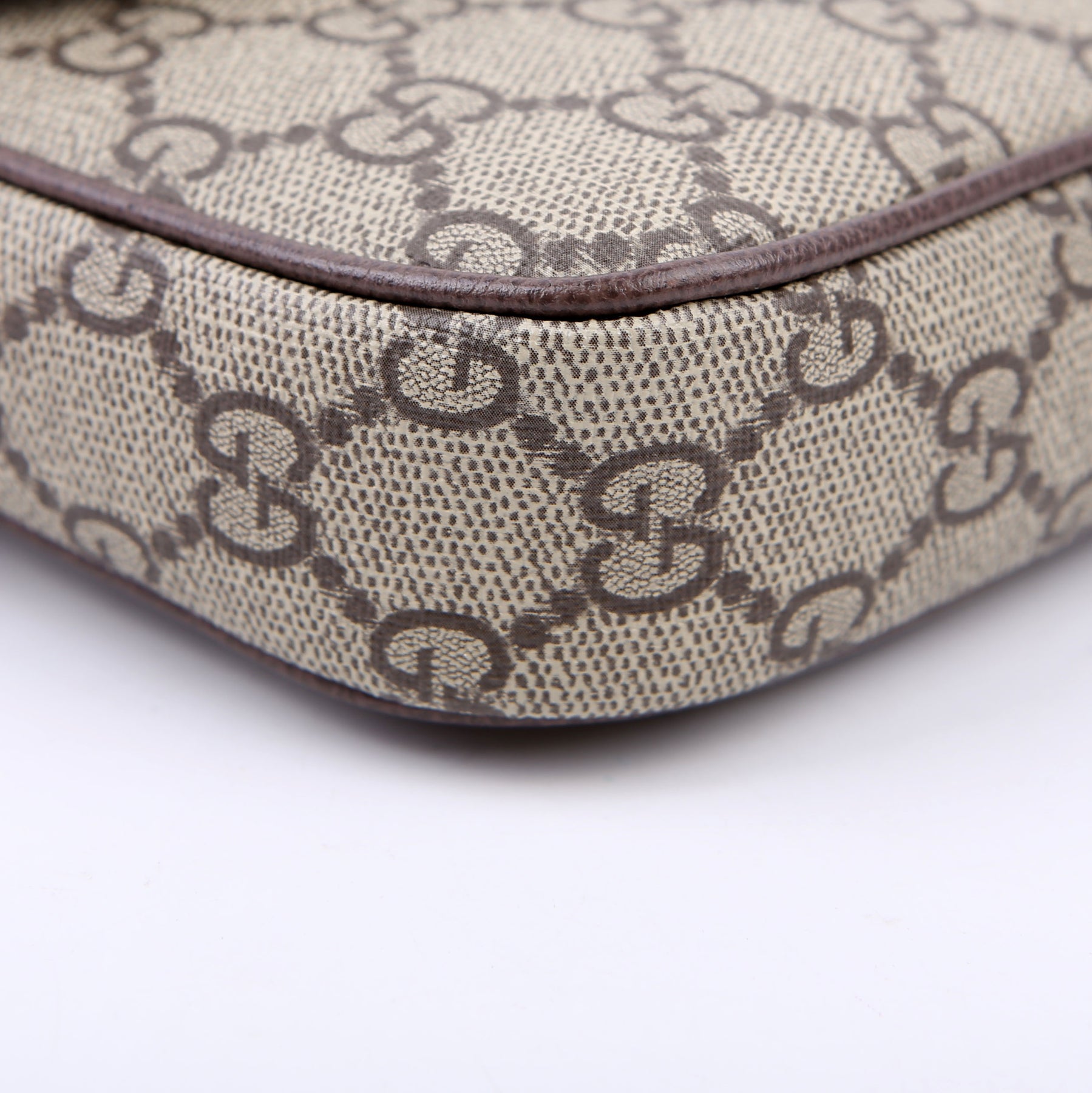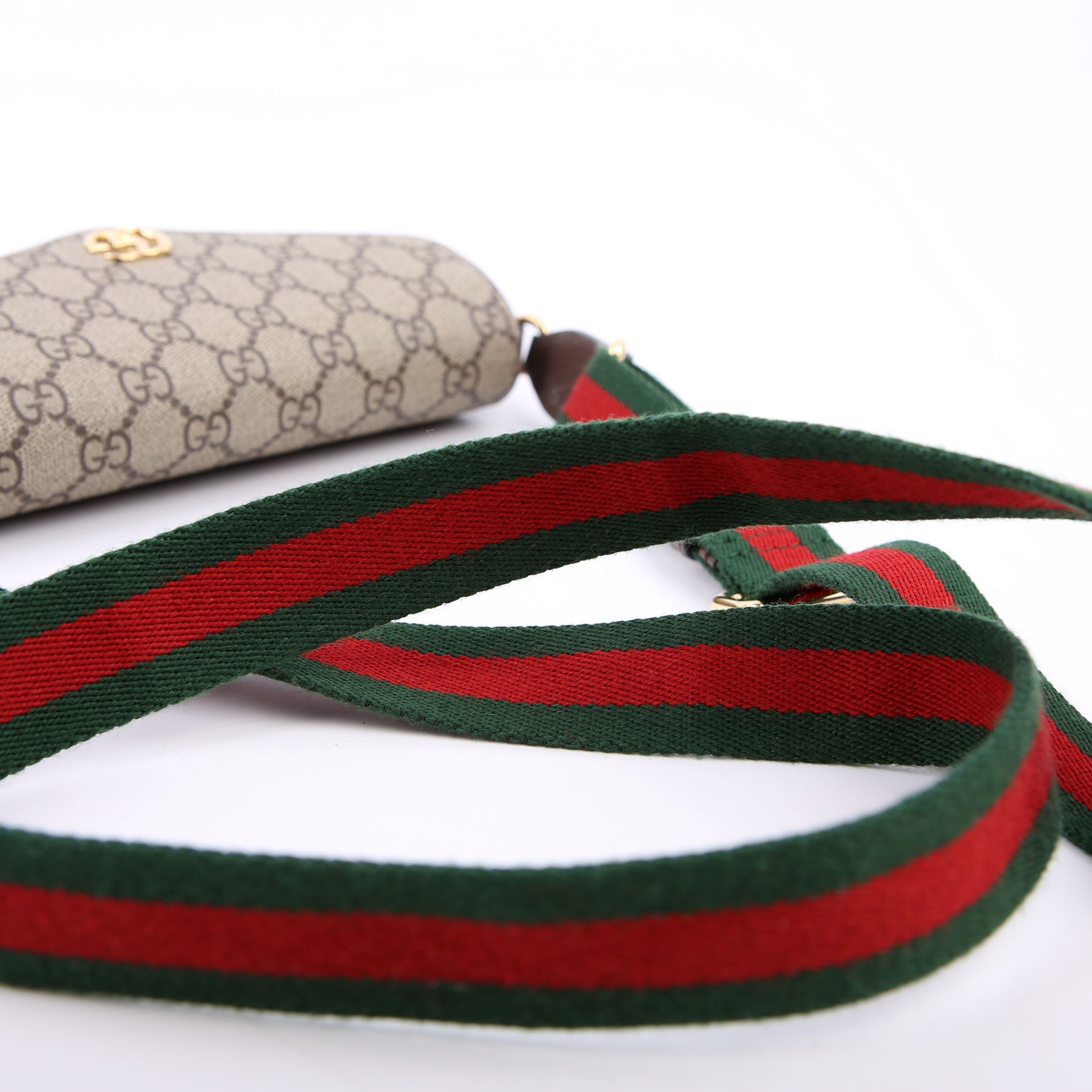 This pre-owned Gucci Ophidia GG Supreme Mini Bag is guaranteed 100% authentic. The exterior is in the classic Gucci GG Supreme coated canvas.