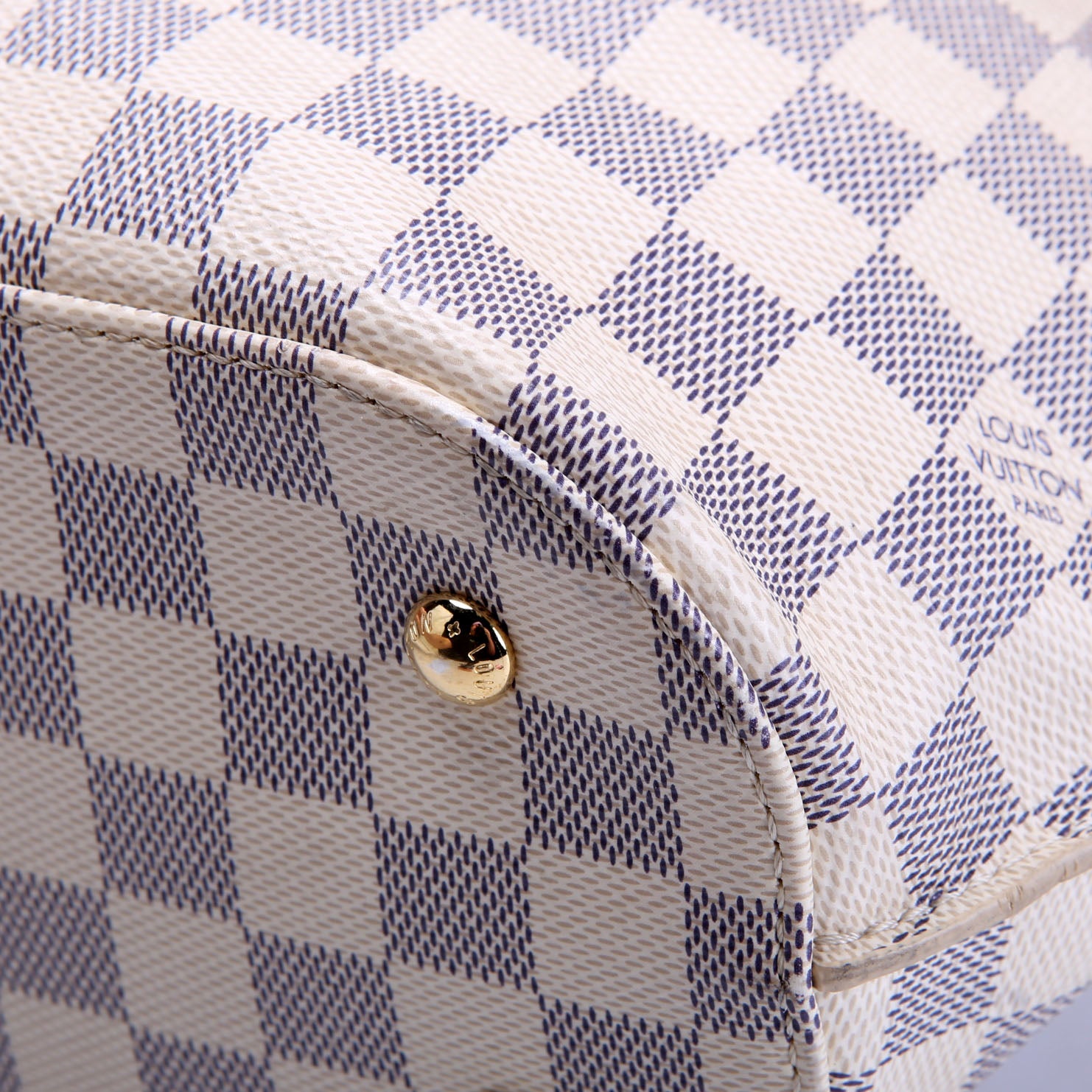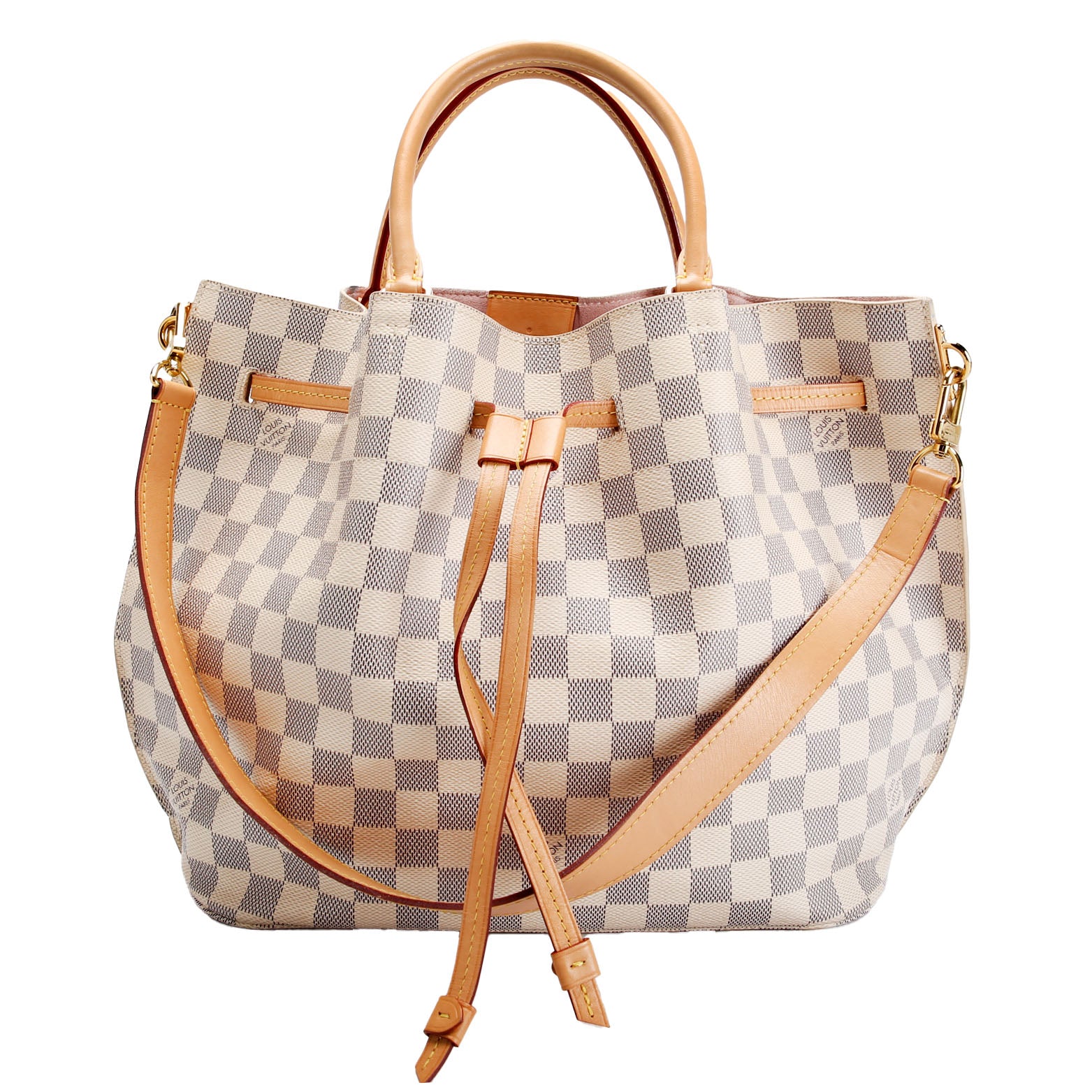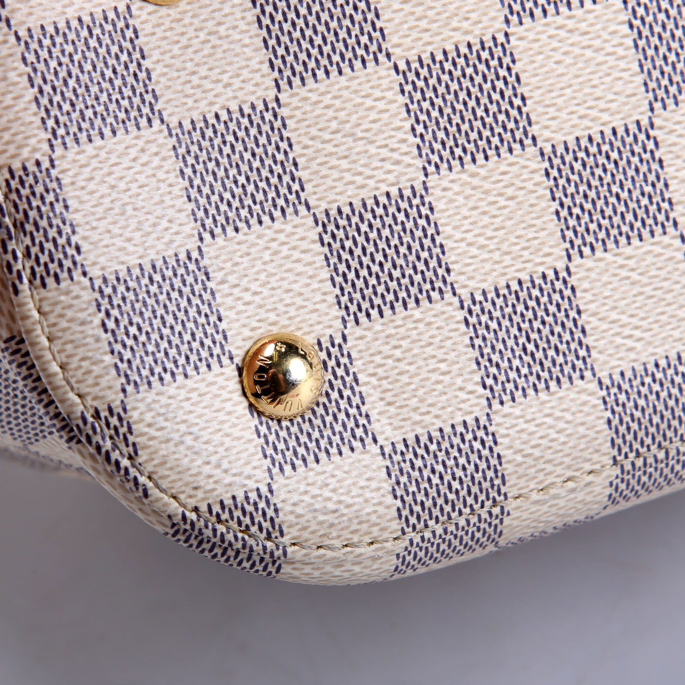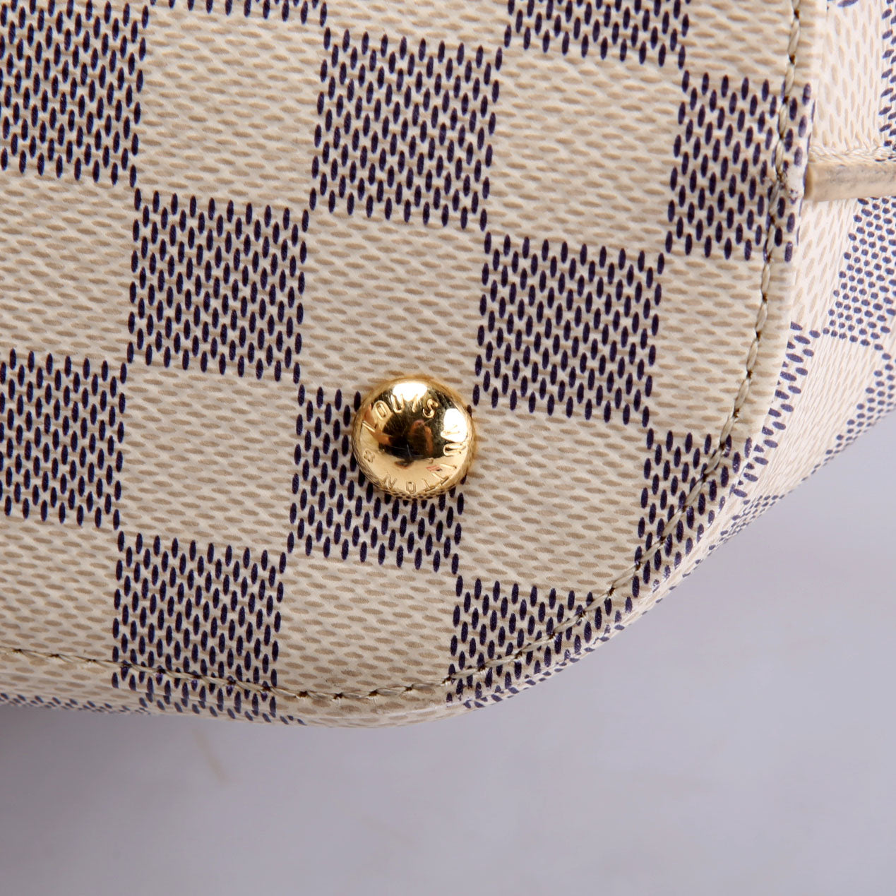 This pre-owned Louis Vuitton Girolata Azur is guaranteed 100% authentic. The exterior is in the classic Louis Vuitton Damier Azur Coated Canvas.