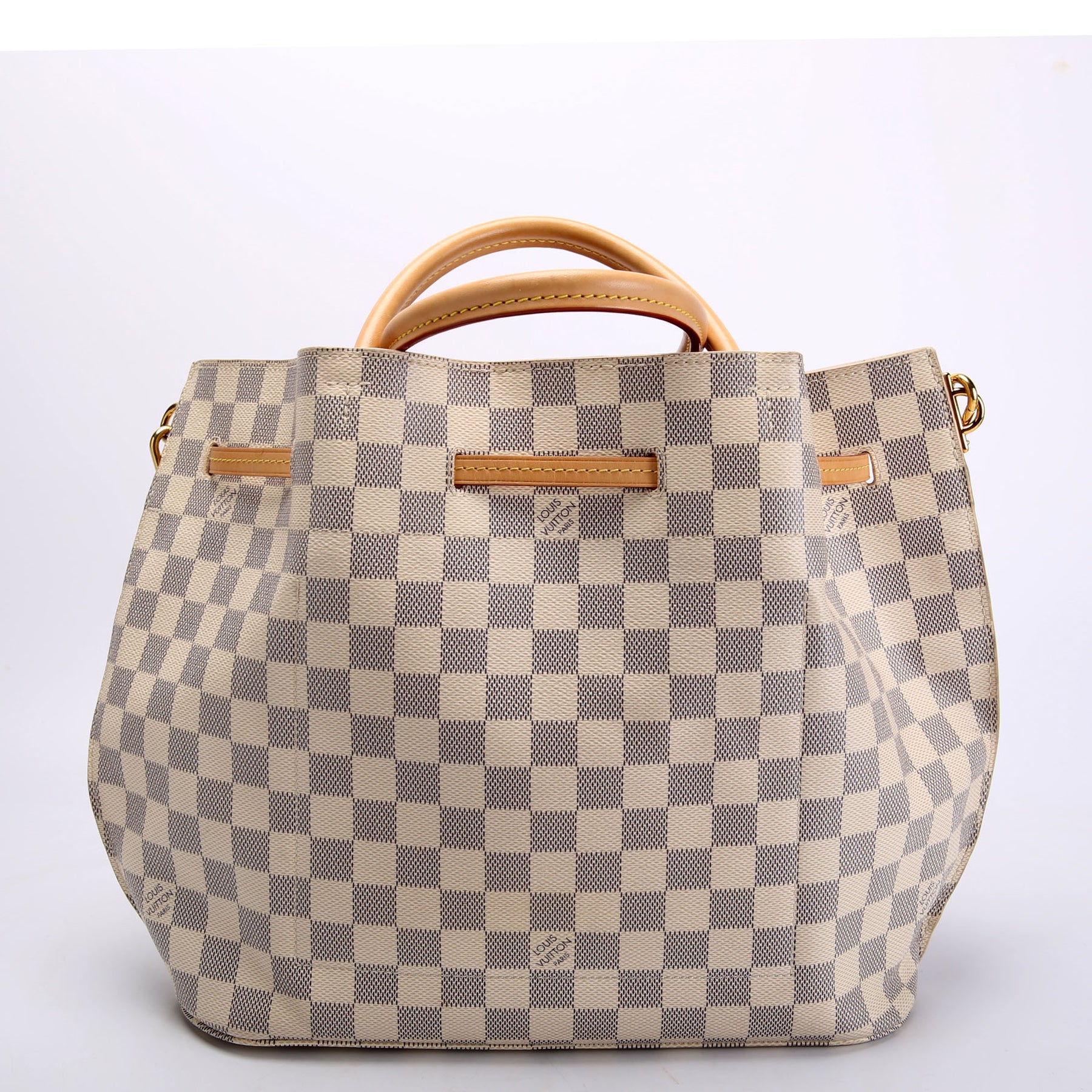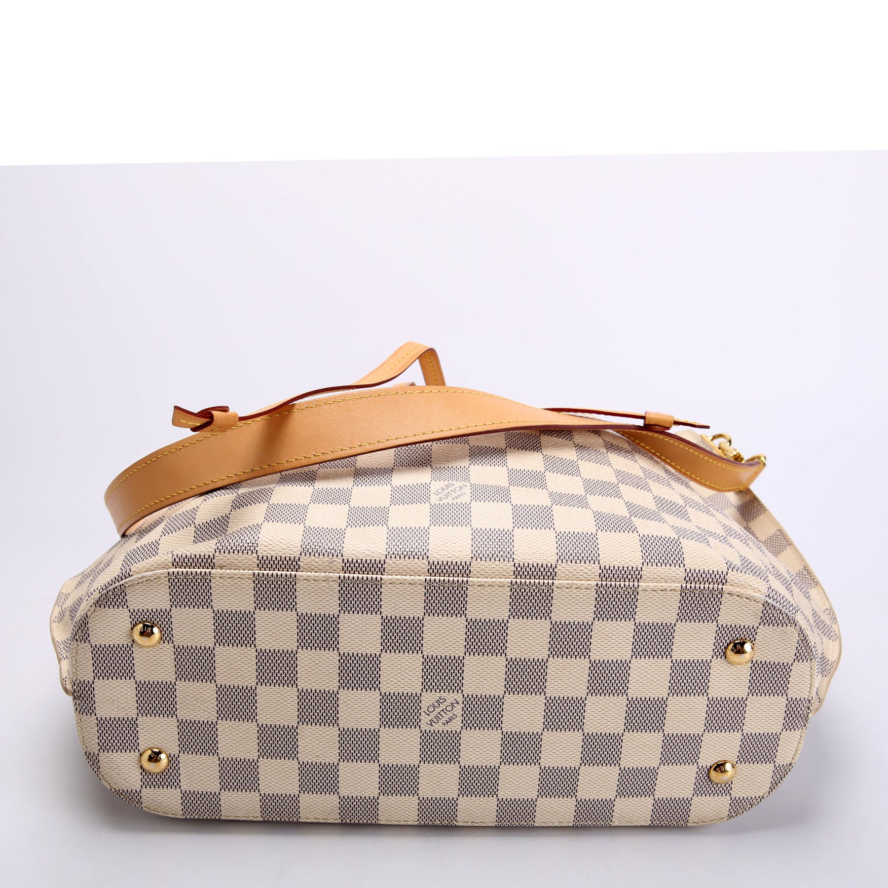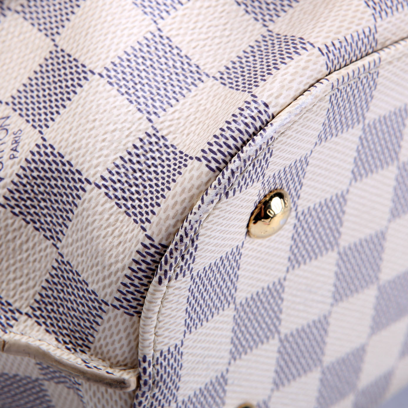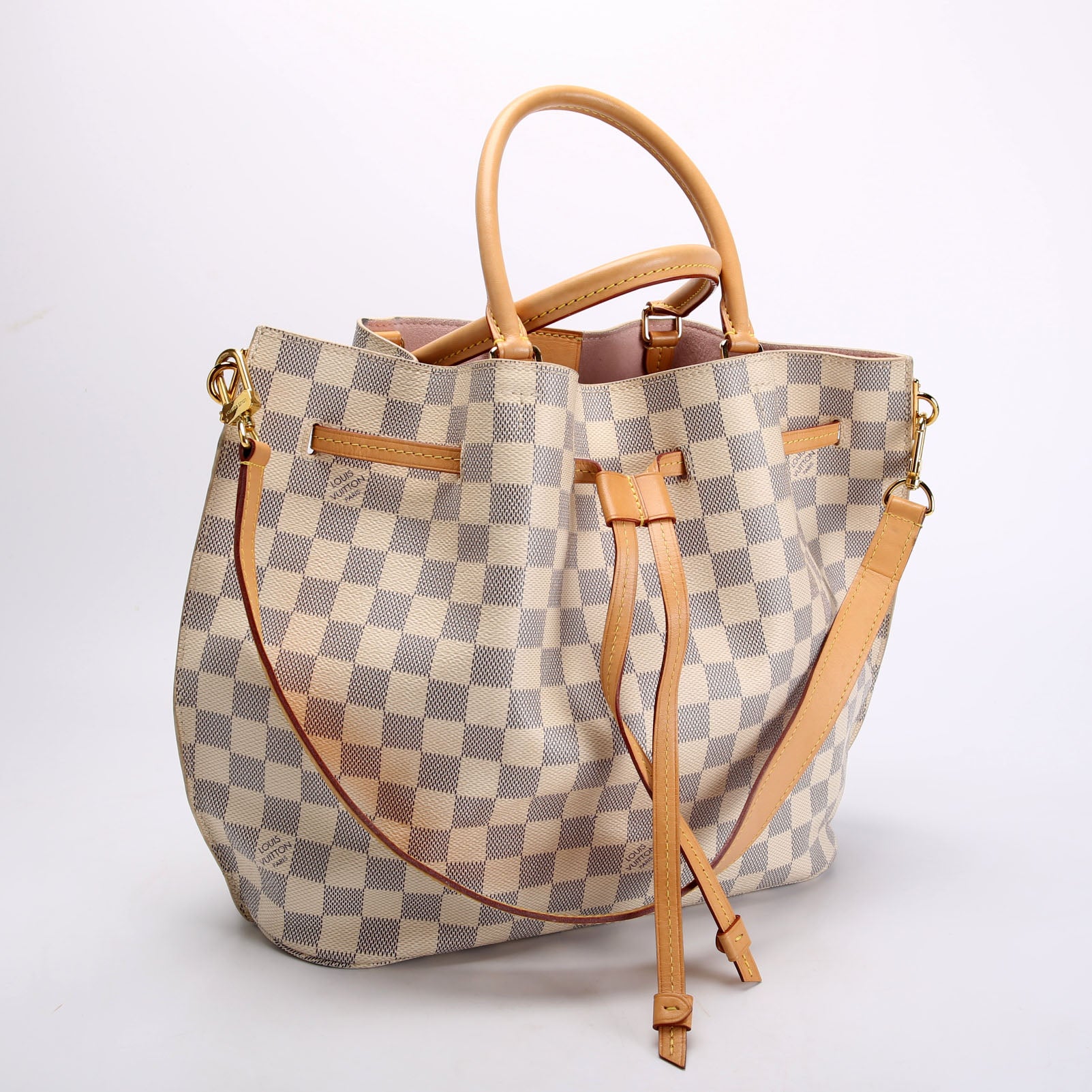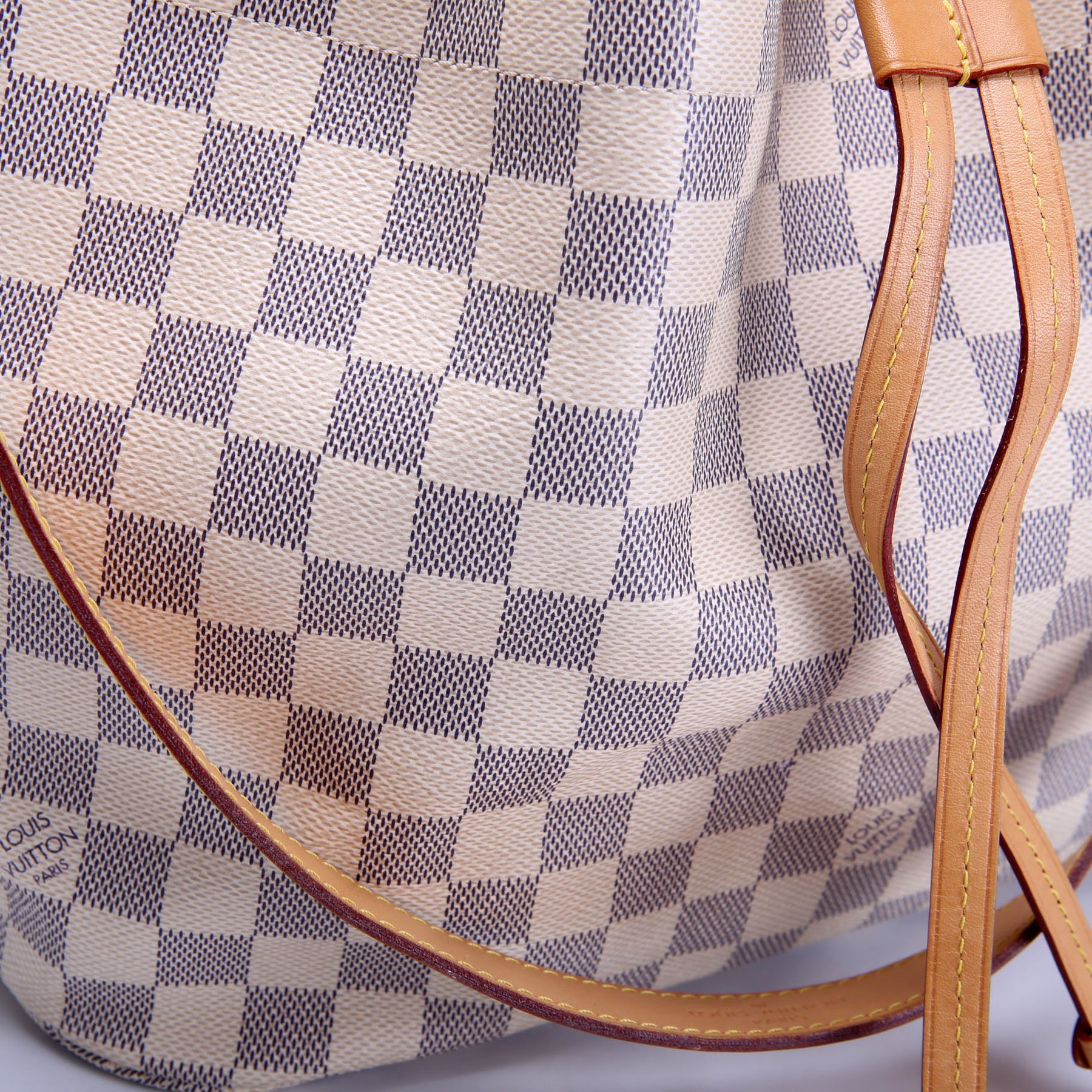 This pre-owned Louis Vuitton Girolata Azur is guaranteed 100% authentic. The exterior is in the classic Louis Vuitton Damier Azur Coated Canvas.