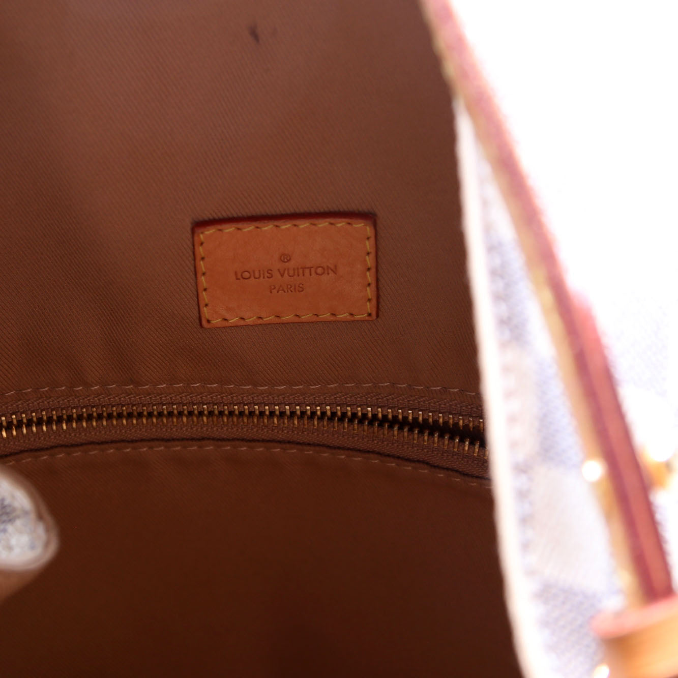 Interior: The interior is free of rips or tears. The interior includes one zip closure pocket.