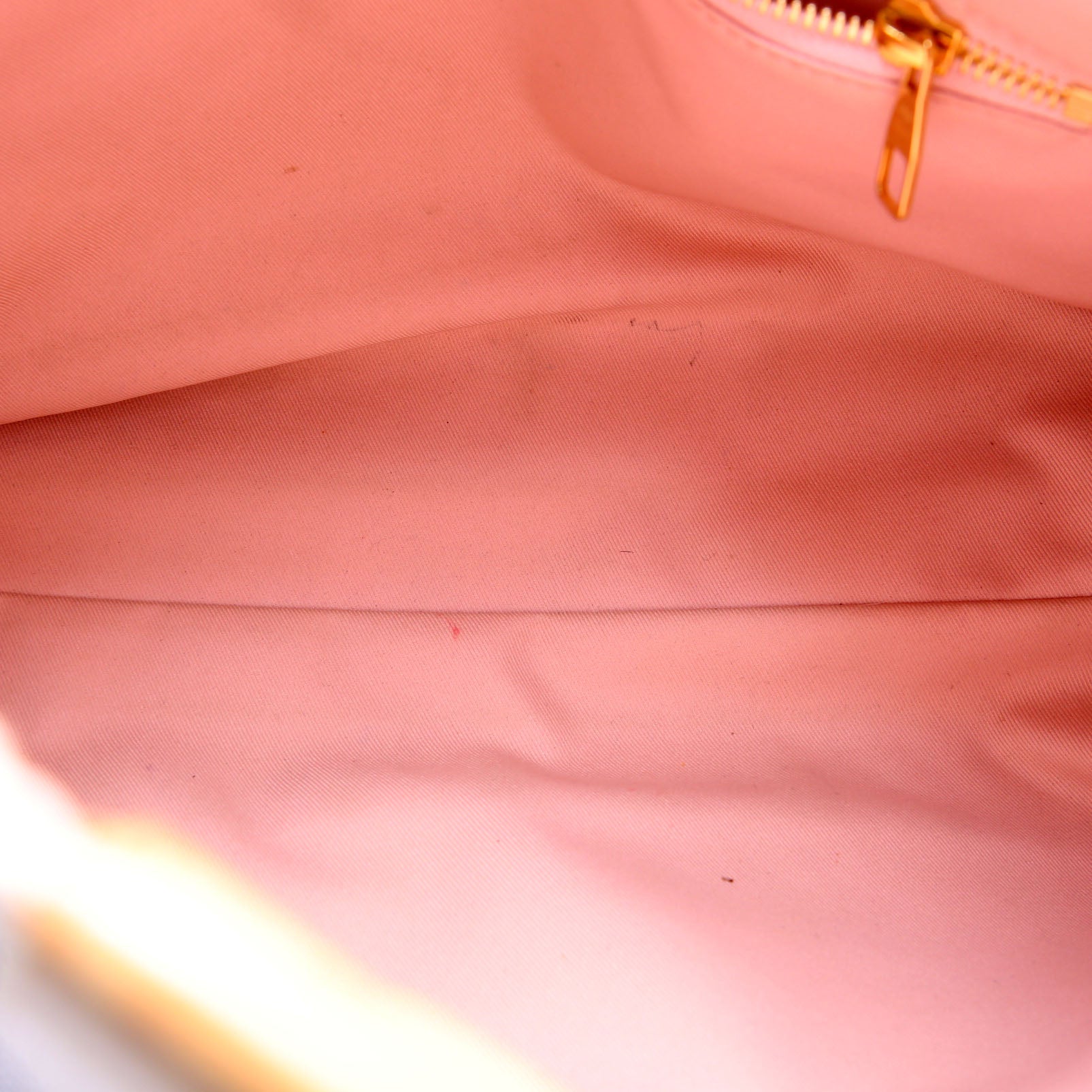 Exterior: The exterior coated canvas is free from wear. The corners show wear and rubbing. The leather detail shows discoloration and patina.