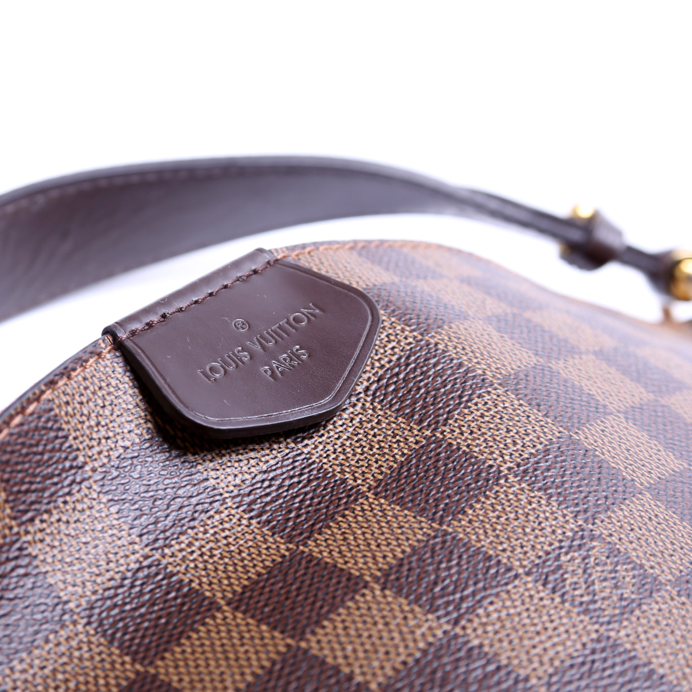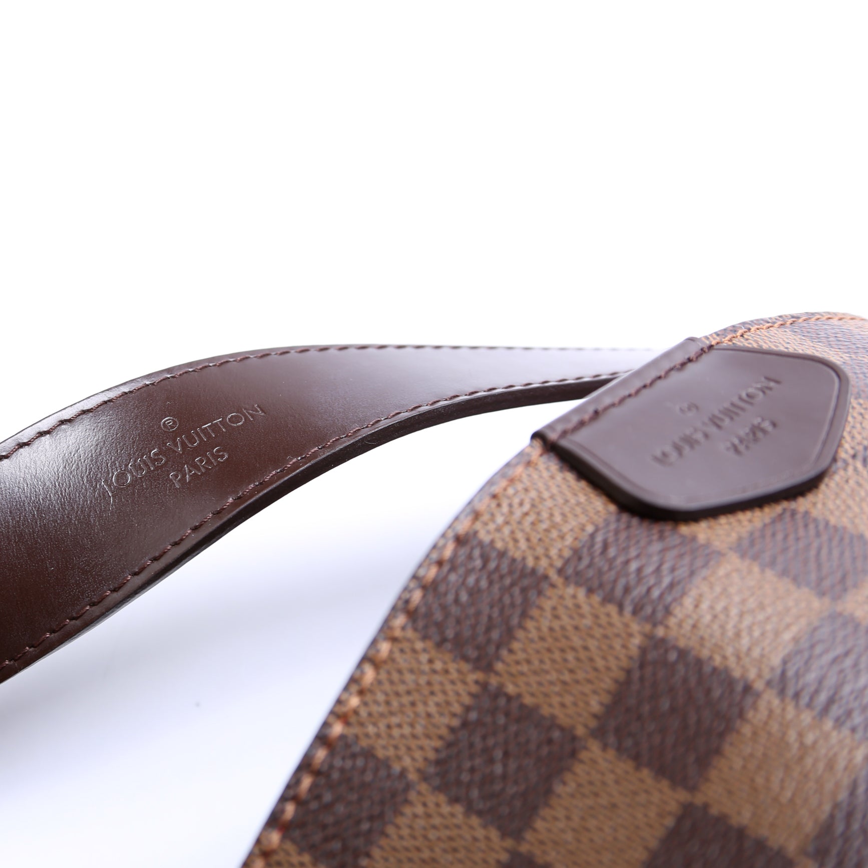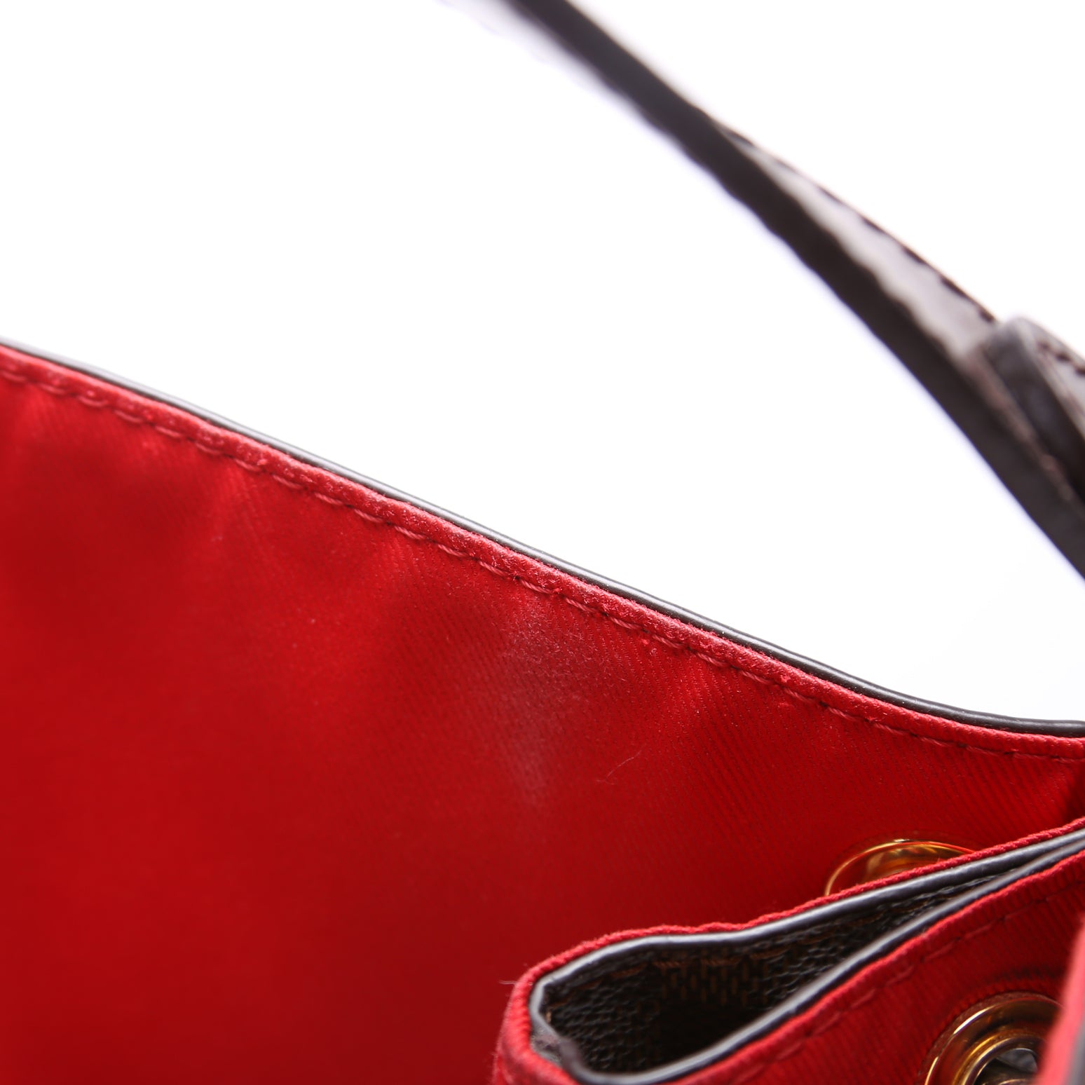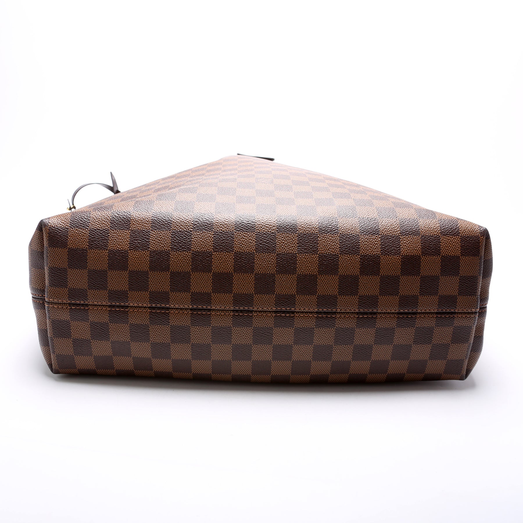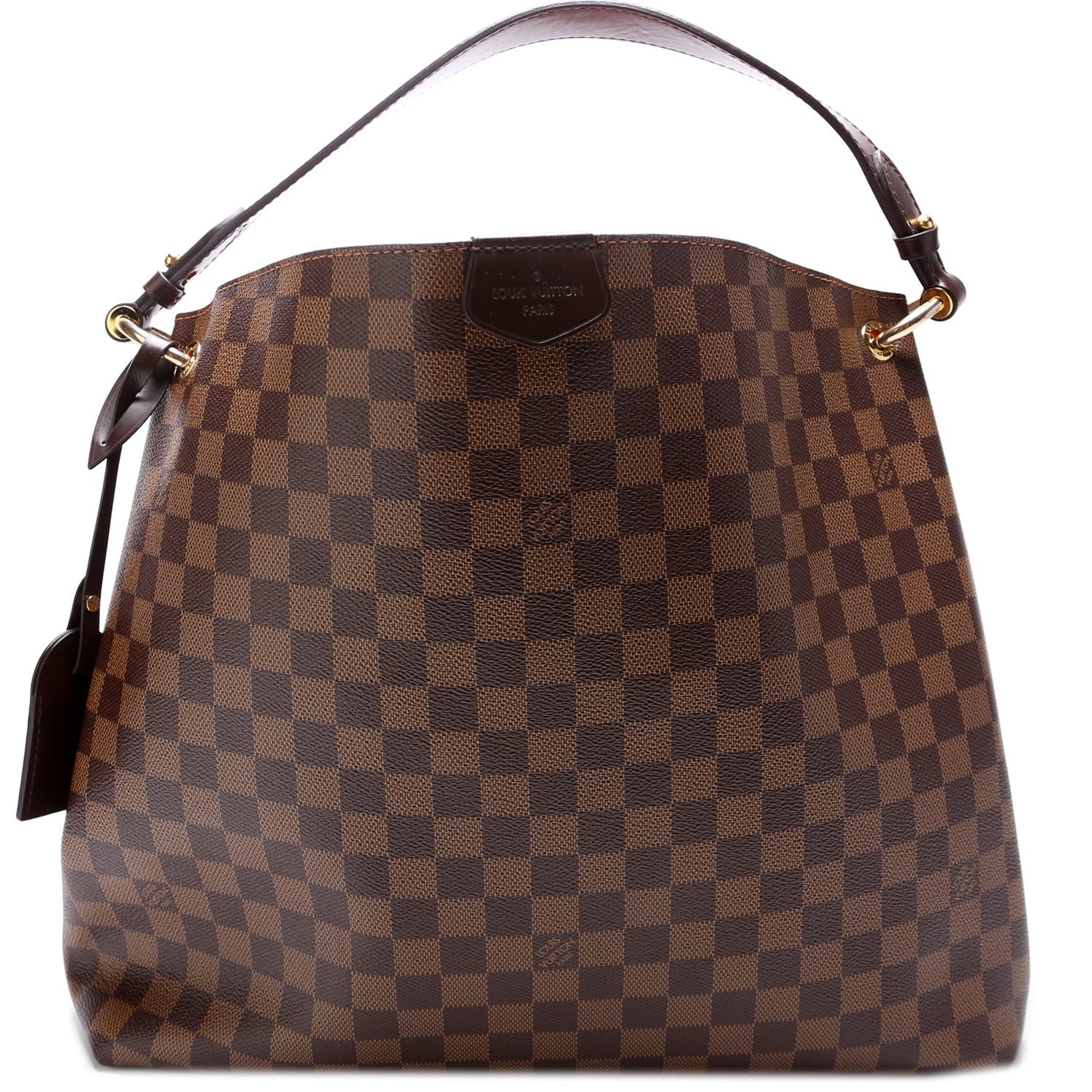 This pre-owned Louis Vuitton Graceful MM is guaranteed 100% authentic. The exterior is in the classic Louis Vuitton Damier Ebene coated canvas.