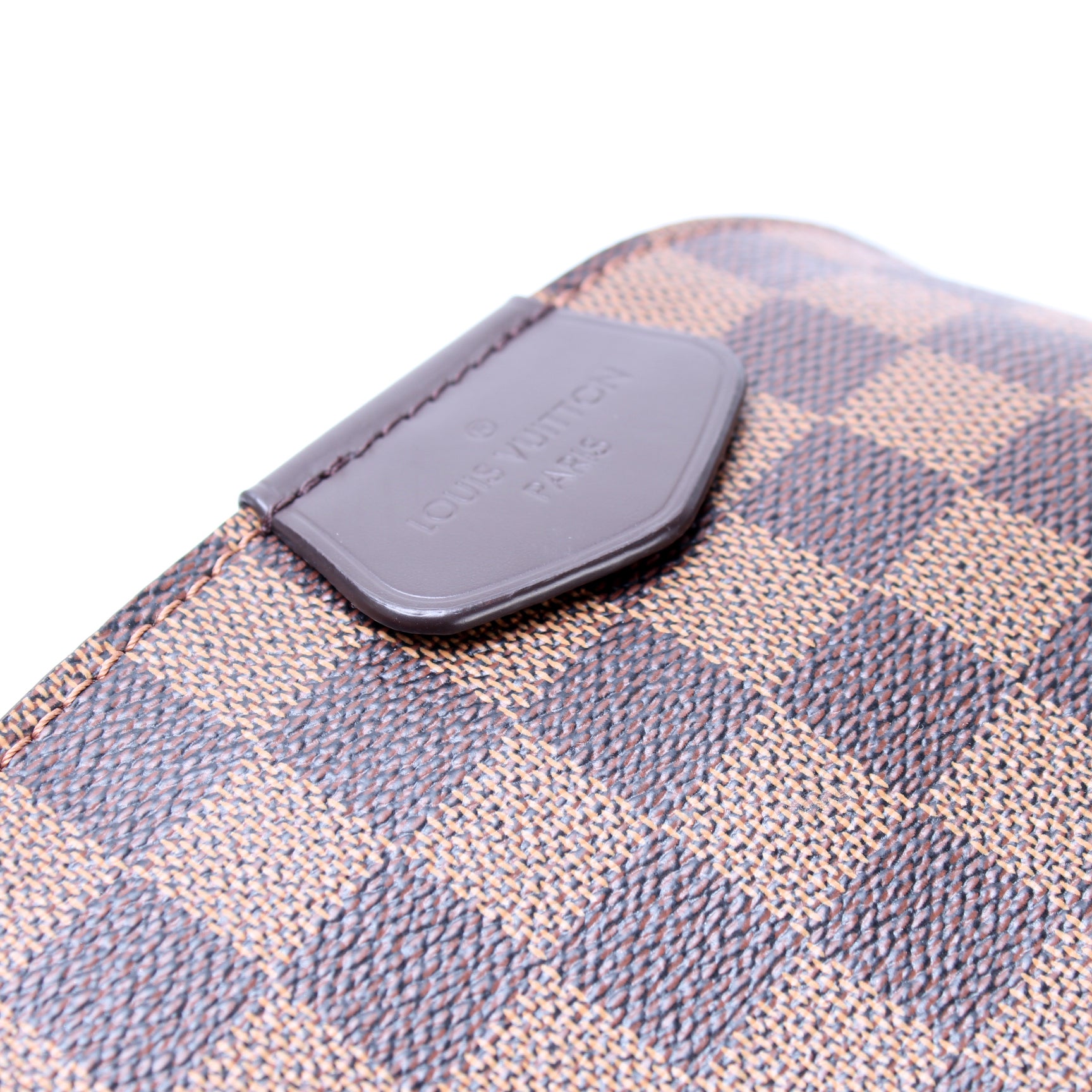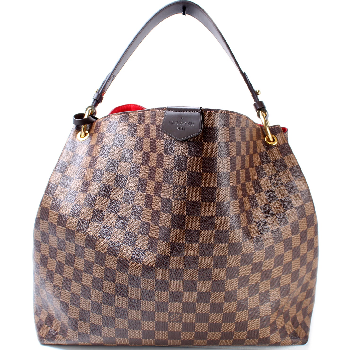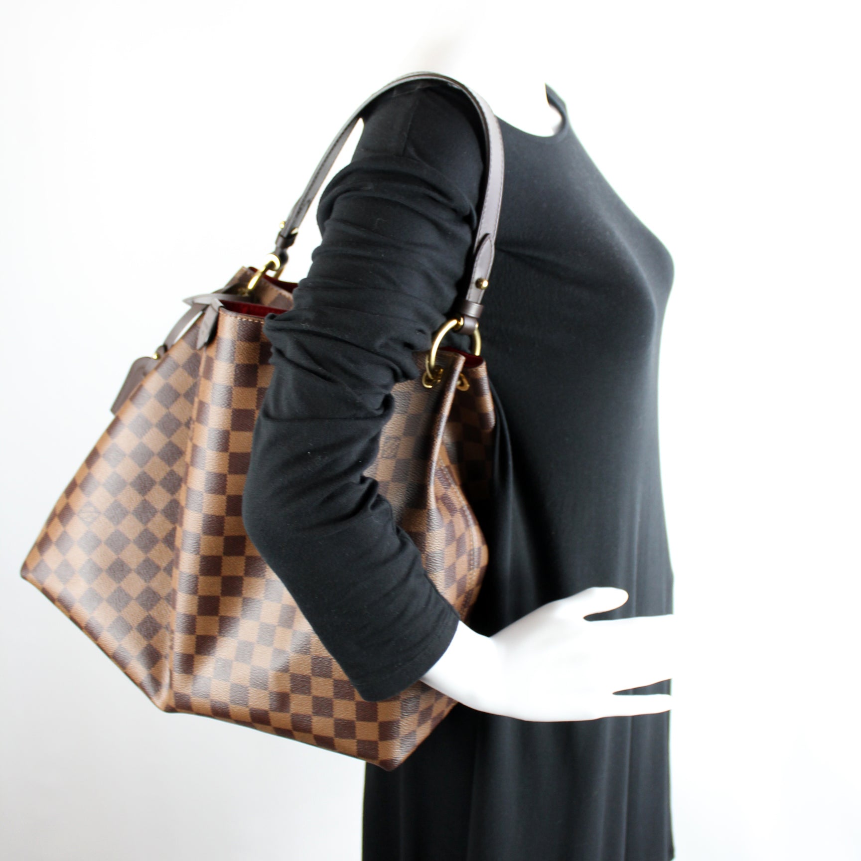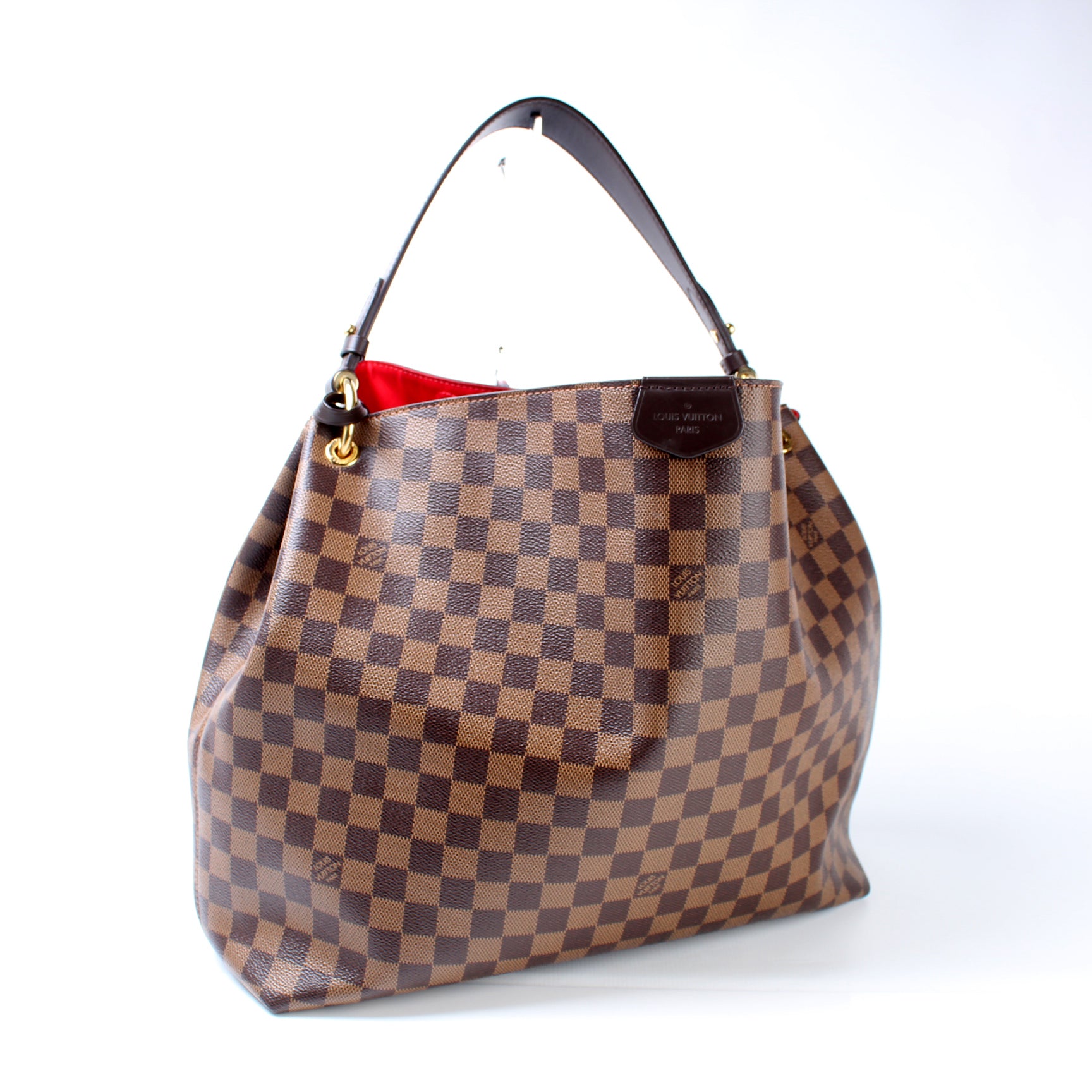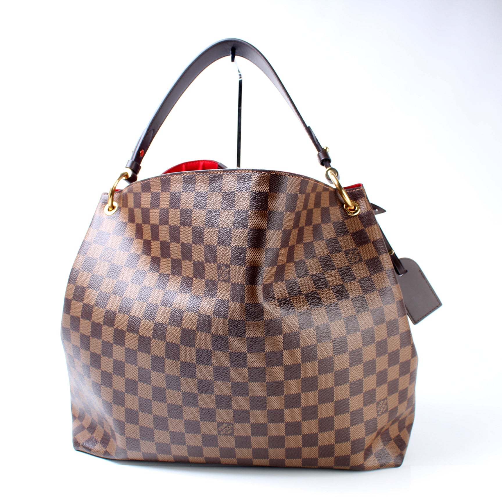This pre-owned Louis Vuitton Graceful MM is guaranteed 100% authentic. The exterior is in the classic Damier Ebene coated canvas.
