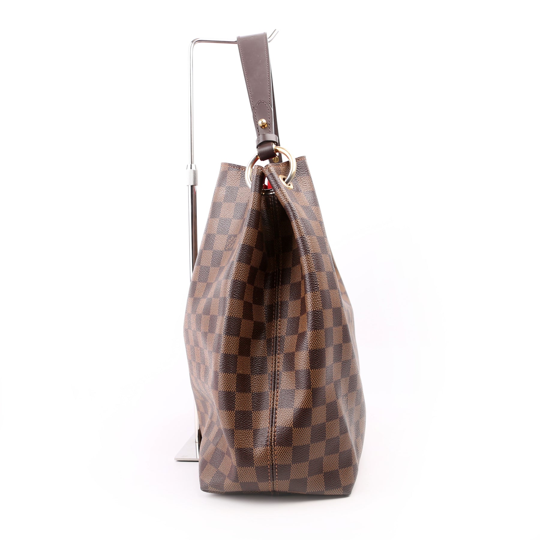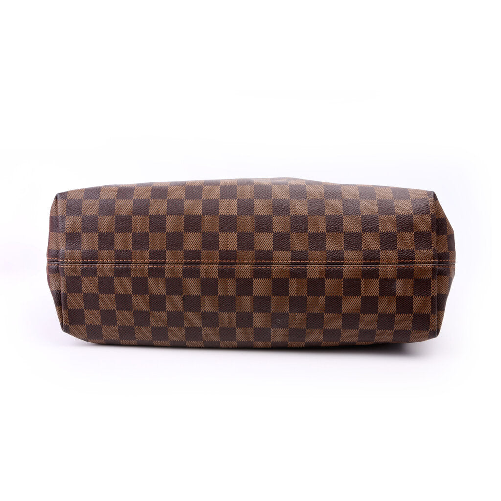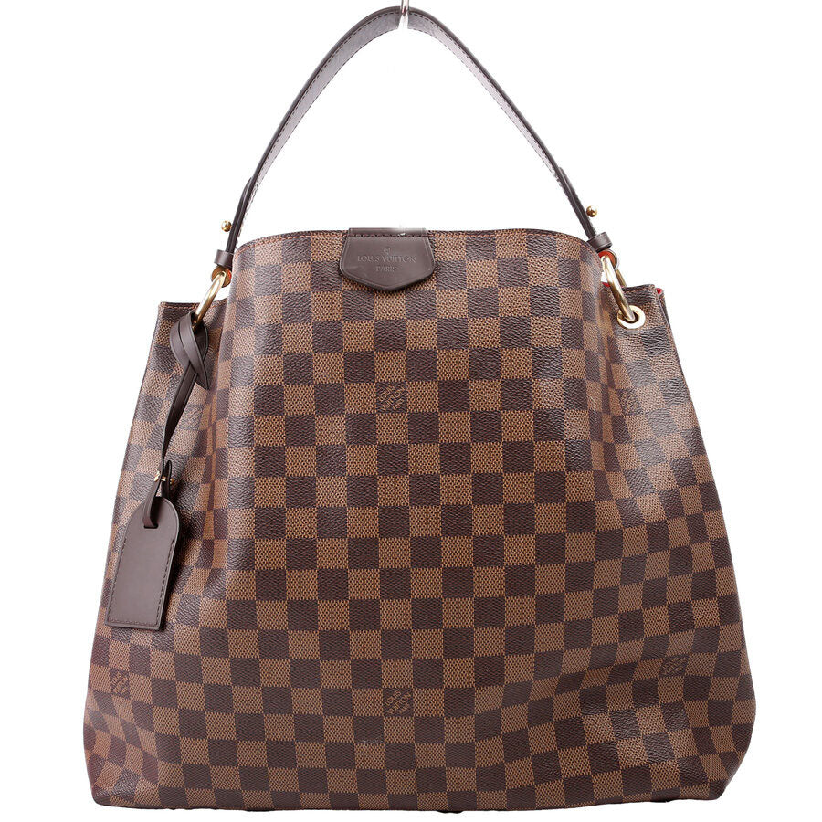 This pre-owned Louis Vuitton Graceful MM is guaranteed 100% authentic. The exterior is in the classic Louis Vuitton Damier Ebene coated canvas.