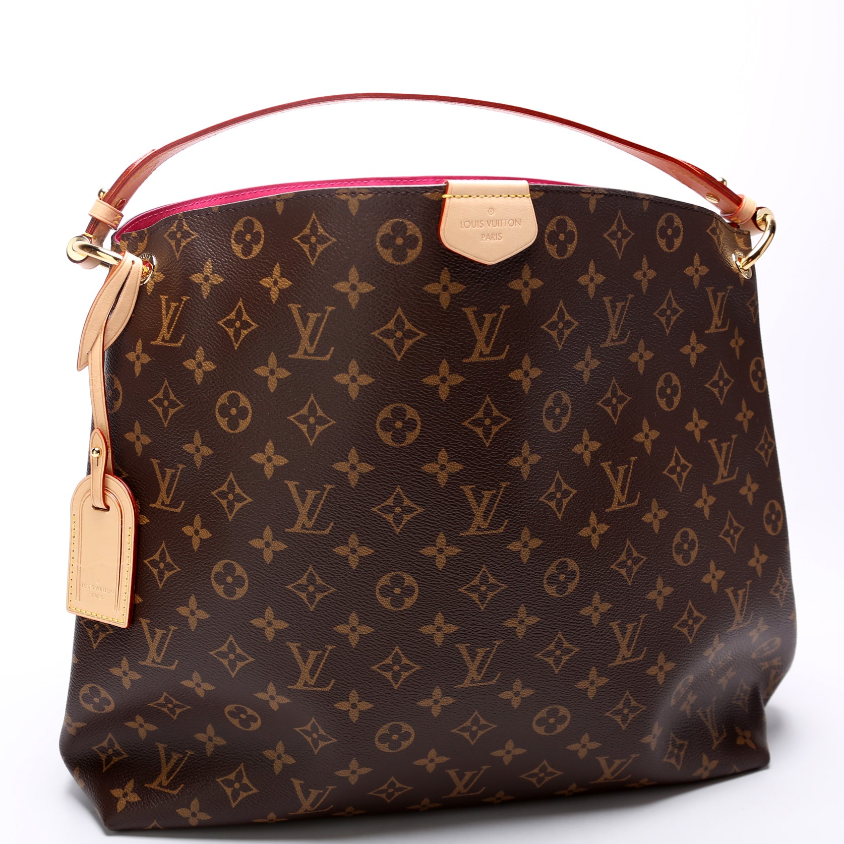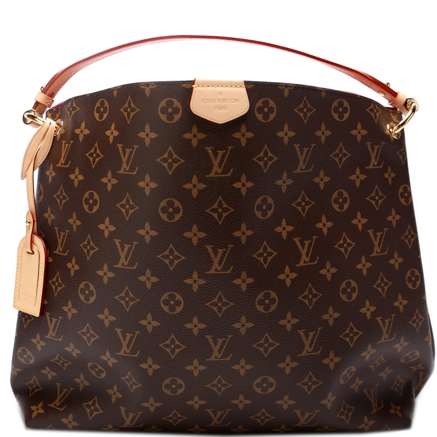 This pre-owned Louis Vuitton Graceful MM is guaranteed 100% authentic. The exterior is in the classic Louis Vuitton Monogram coated canvas.