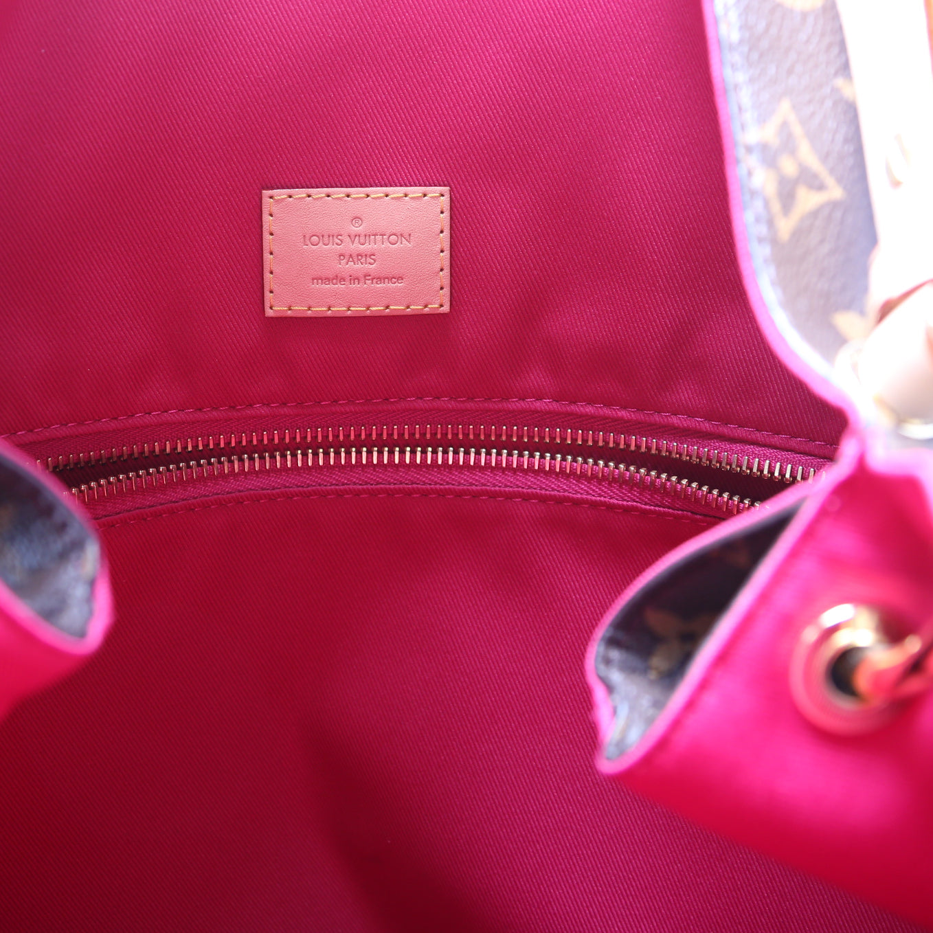 Interior: The interior is clean and free from rips or tears. The interior features one zip closure pocket.
