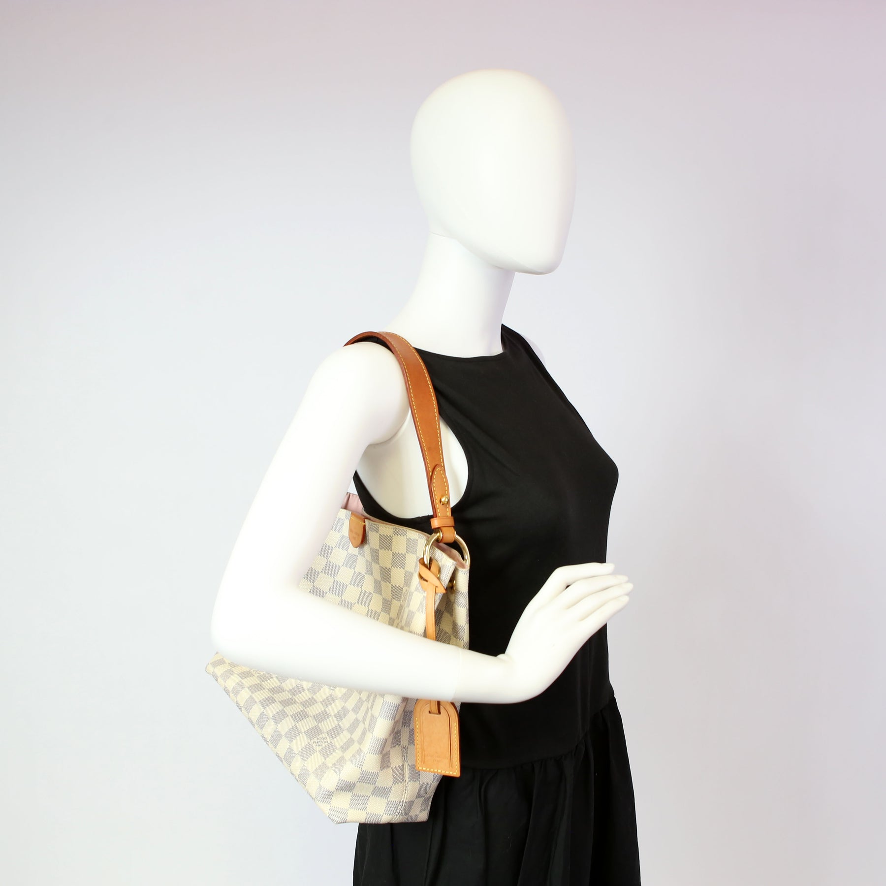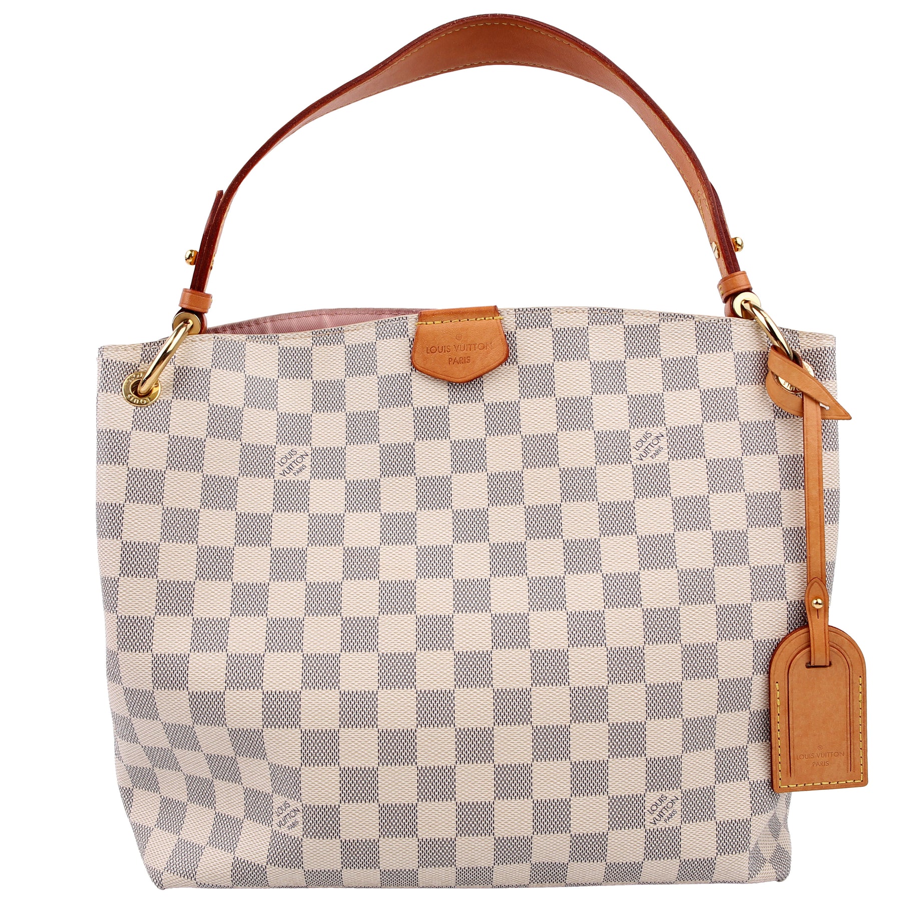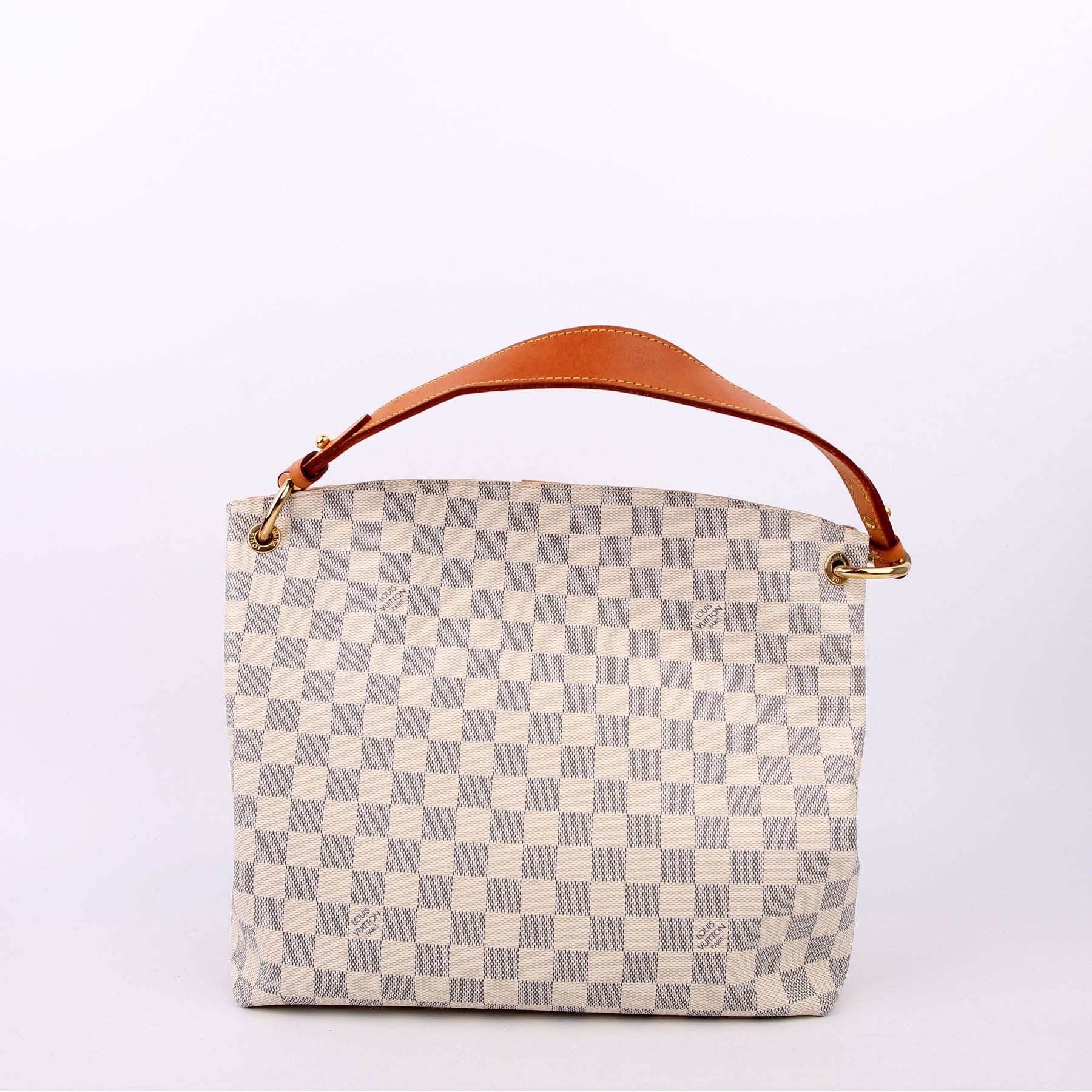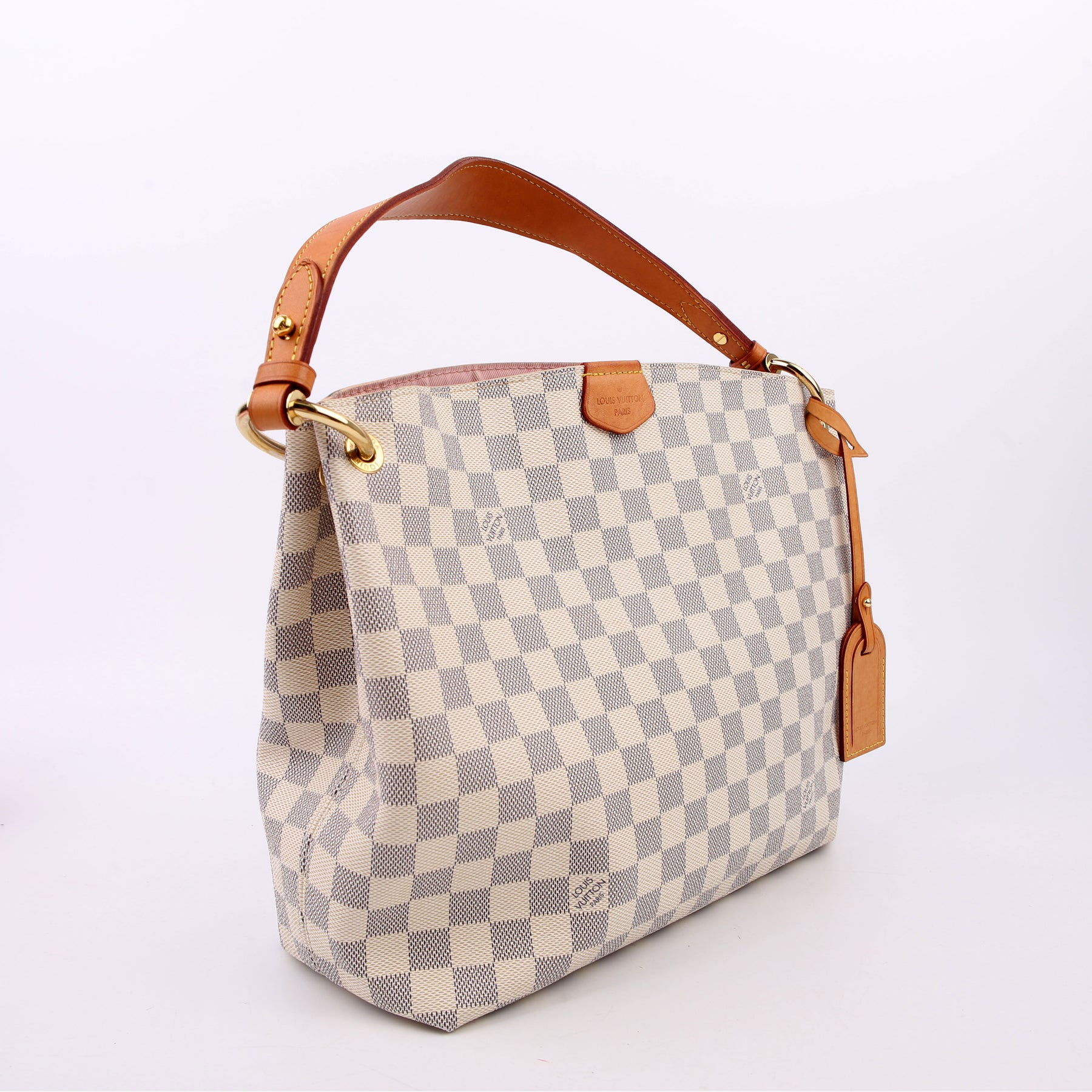 This pre-owned Louis Vuitton Graceful PM is guaranteed 100% authentic. The exterior is in the classic Louis Vuitton Damier Azur coated canvas.